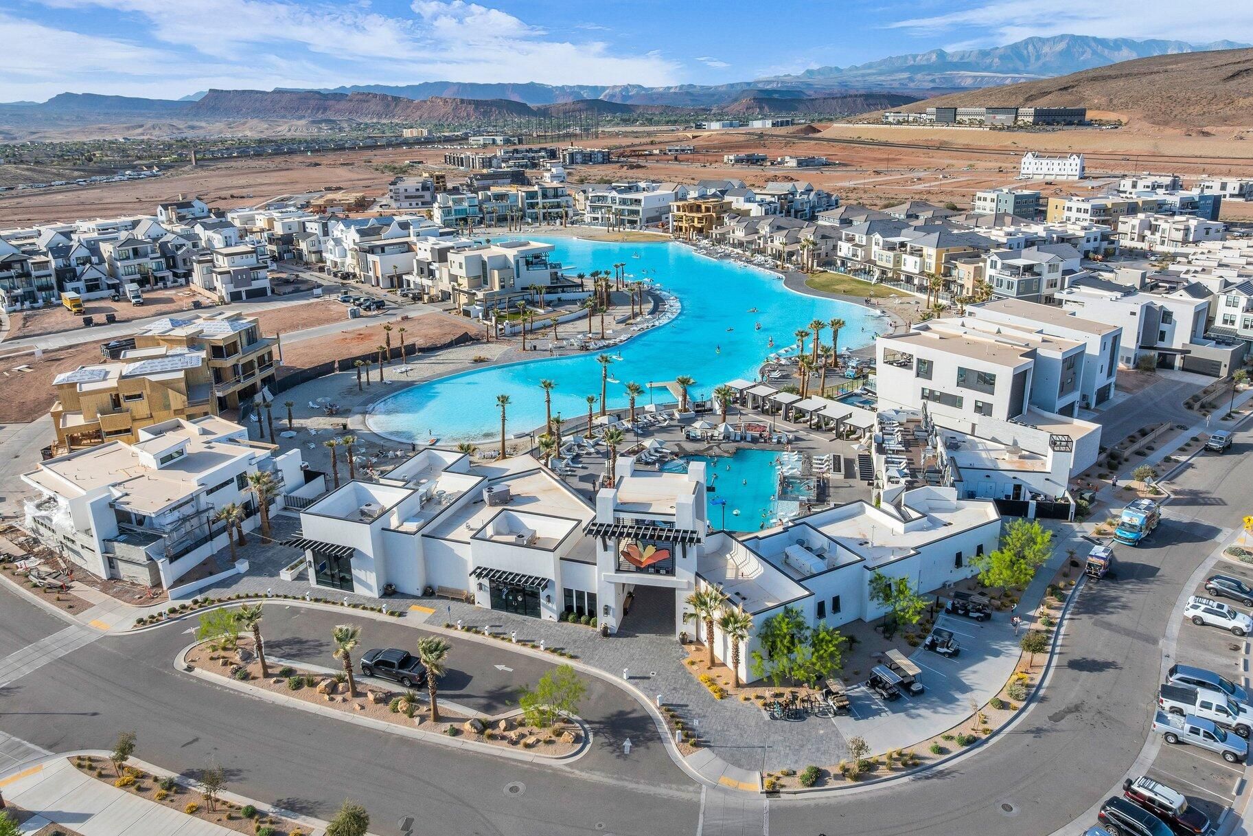 This Desert Color gem perfectly balances high-end upgrades with a functional, quiet location. Rare dual living spaces include a sophisticated front sitting room and an open-concept great room with an upgraded gas fireplace. The kitchen impresses with leathered granite and a waterfall island, while every bedroom provides the privacy of an ensuite bath—plus a guest suite with a private kitchenette. Living here means exclusive access to a crystal-clear lagoon, pickleball, and miles of trails. With the vibrancy of the upcoming Town Center and proximity to Southern Utah's iconic red rocks and national parks, this home is more than a residence—it's a lifestyle. Enjoy the best of St. George in a home where no detail was overlooked. Modern, spacious, and ready for you to call it home!