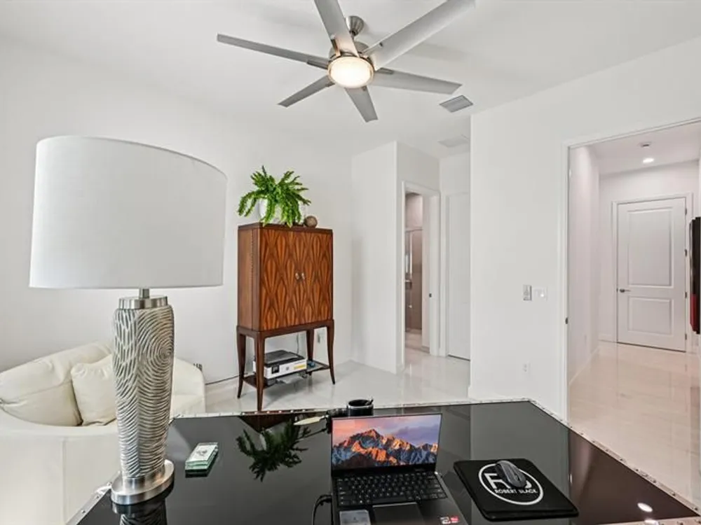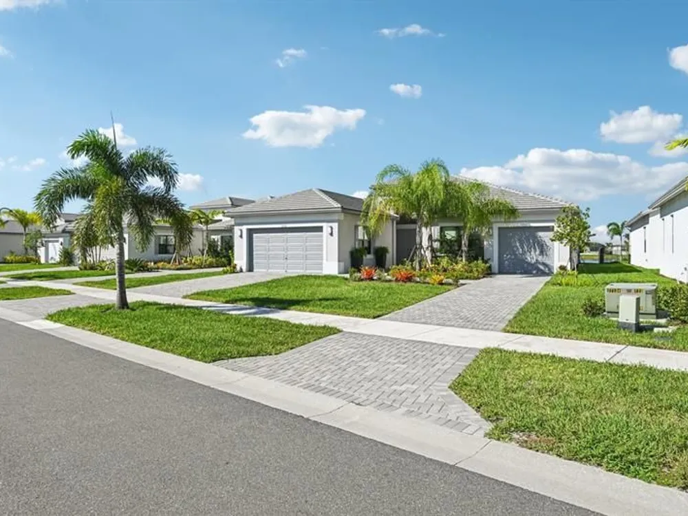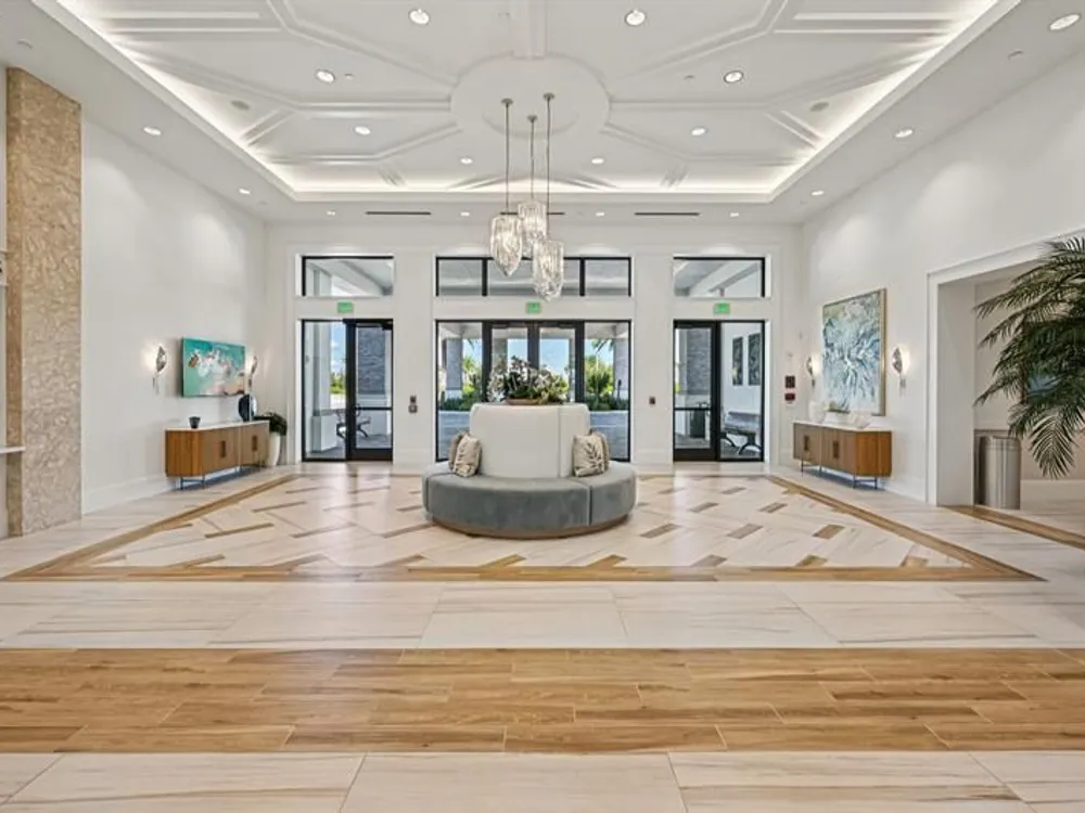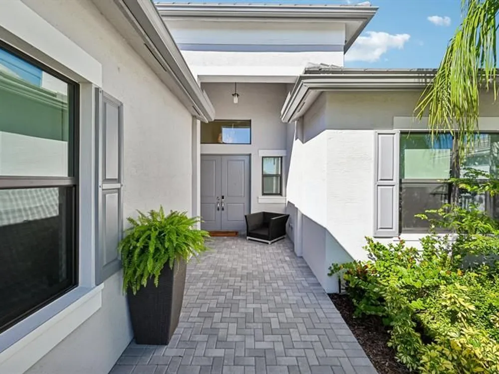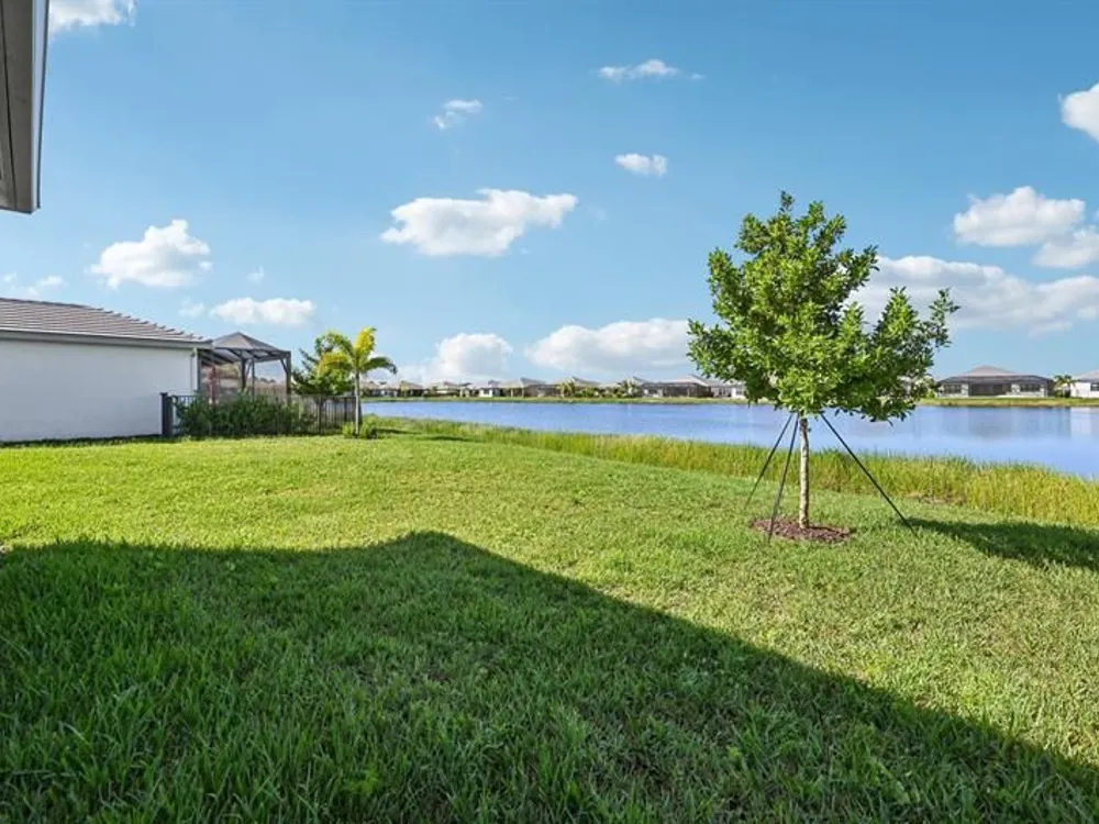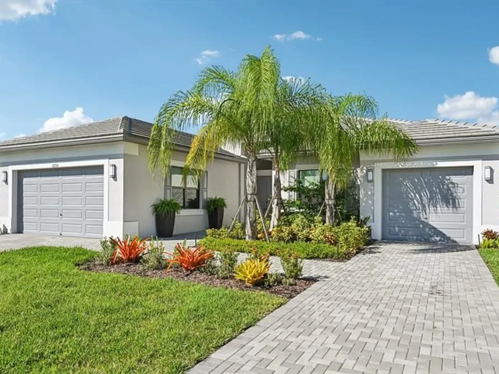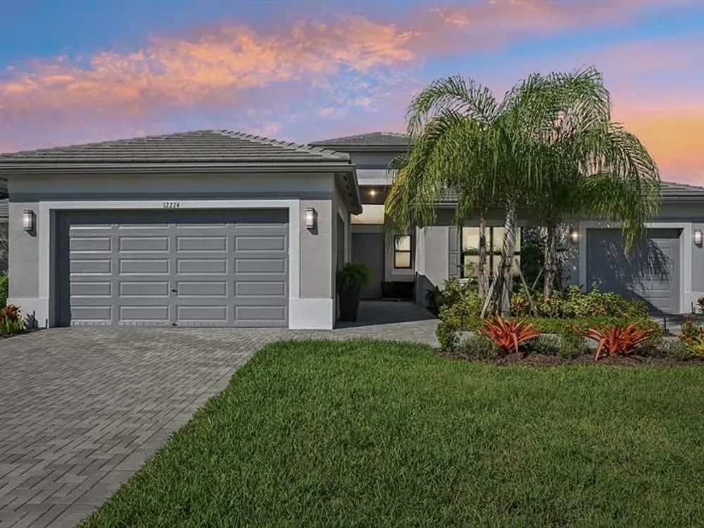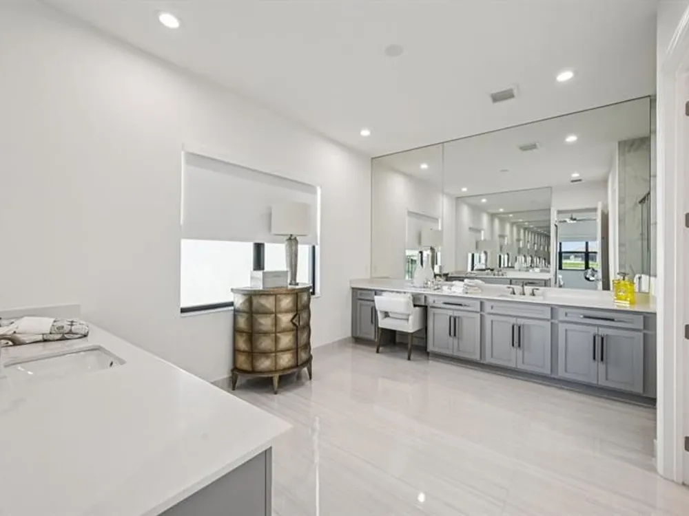 As you enter this pristine contemporary Michele model you sense the WOW factor with wide western exposure lake views and an open floor plan with luxurious polished white with gray undertones porcelain 48''x24'' tile flooring throughout. This home features luxury lighting and high end finishes including impact glass windows, GE Profile gas appliances, recessed LED lighting, state of the art window coverings and the kitchen displays the highest level glossy gray cabinetry with quartz countertops and matching backsplash, with under-and over-cabinet lighting. The primary suite offers professional custom shelving in all 3 closets. In addition there is a fully custom laundry room. The lanai floors are leathered marble. The Walk's clubhouse with restaurant & bar is within a five-minute walk.
