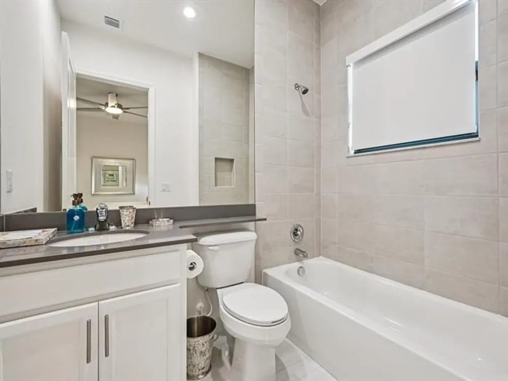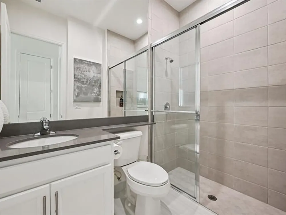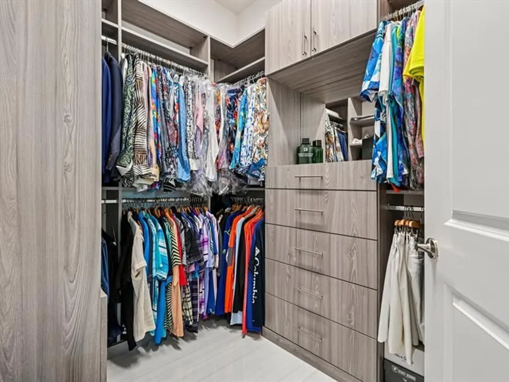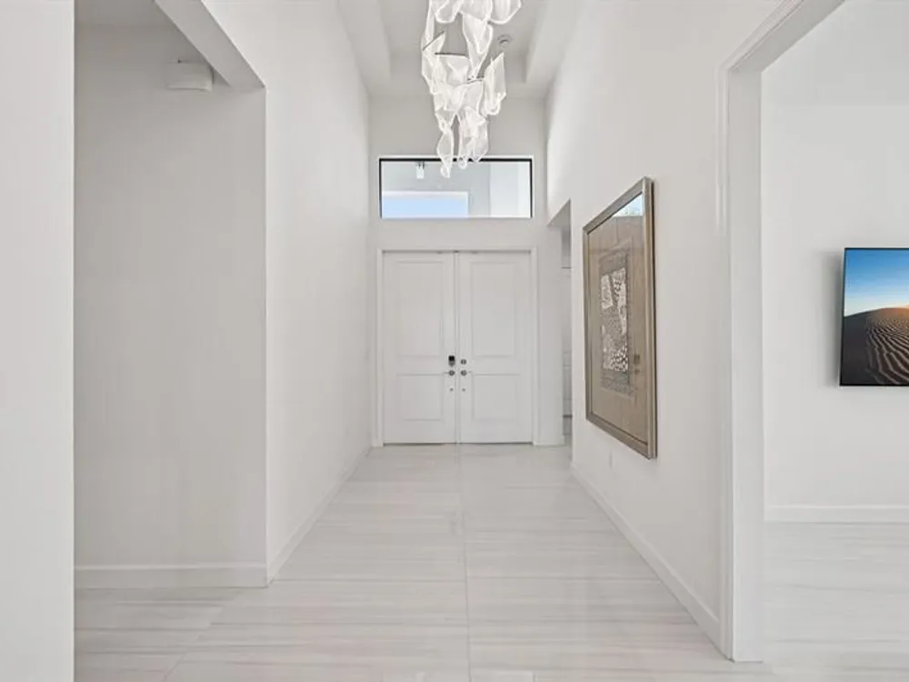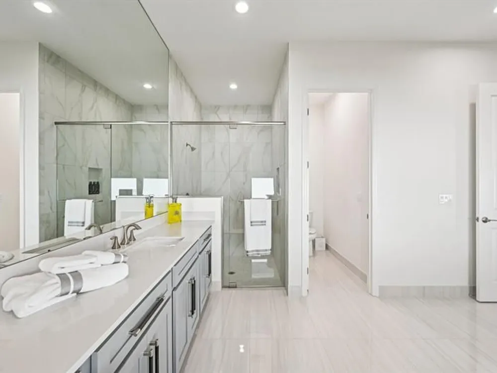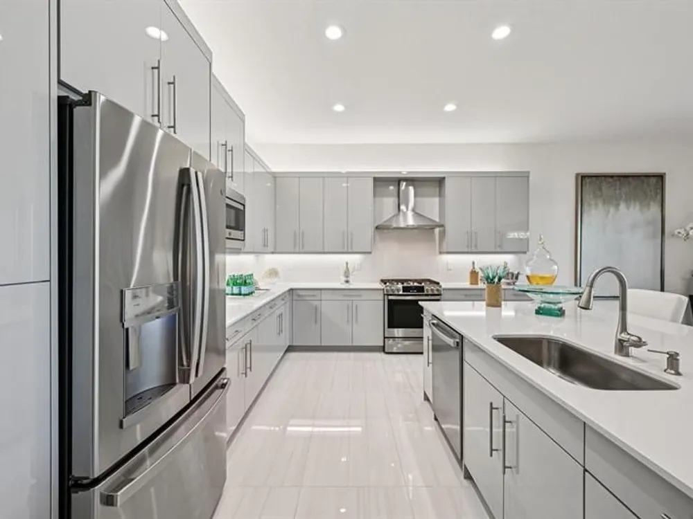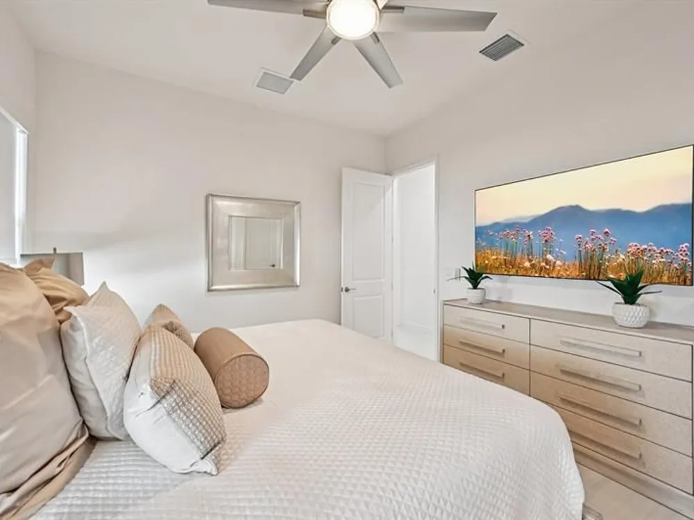 As you enter this pristine contemporary Michele model you sense the WOW factor with wide western exposure lake views and an open floor plan with luxurious polished white with gray undertones porcelain 48''x24'' tile flooring throughout. This home features luxury lighting and high end finishes including impact glass windows, GE Profile gas appliances, recessed LED lighting, state of the art window coverings and the kitchen displays the highest level glossy gray cabinetry with quartz countertops and matching backsplash, with under-and over-cabinet lighting. The primary suite offers professional custom shelving in all 3 closets. In addition there is a fully custom laundry room. The lanai floors are leathered marble. The Walk's clubhouse with restaurant & bar is within a five-minute walk.