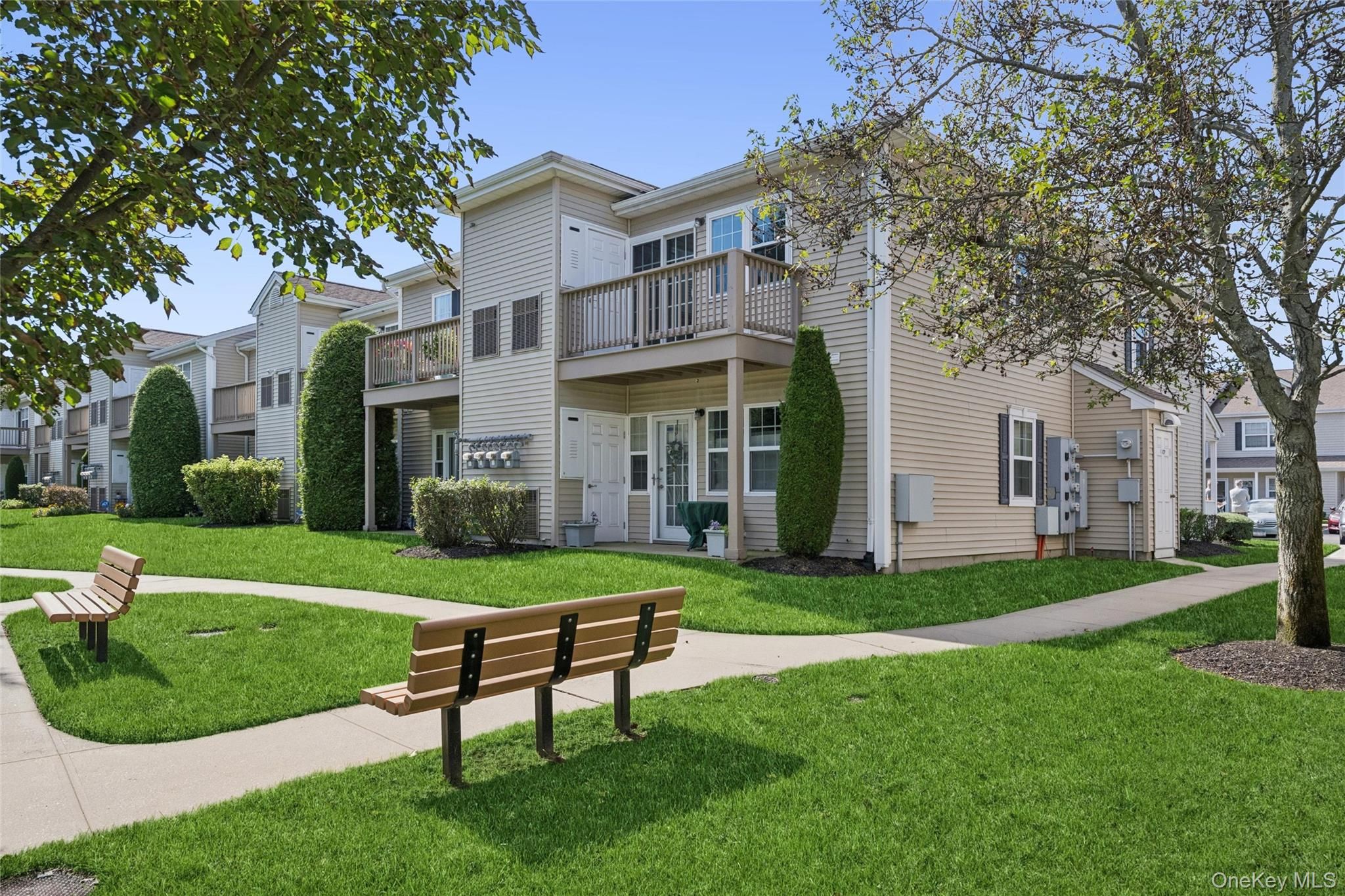 Exceptional Opportunity in Dutchgate at North Valley Stream. Welcome to this beautiful upper-level corner residence located in the desirable 55+ gated community of Dutchgate. This elegant second-floor condominium features high ceilings and a convenient stair lift chair, combining comfort and accessibility. The open-concept layout offers a spacious living and dining area, a modern kitchen with stainless steel appliances and tile backsplash, and two spacious bedrooms, each with double closets and two bathrooms including a private ensuite bathroom in the primary bedroom. Start your day with the morning sunrise from the bedrooms, or unwind on your private balcony while enjoying the peaceful natural surroundings. Additional highlights include an in-unit washer and dryer, gas heating, central air conditioning, and an assigned parking space conveniently located in front of your unit. Residents of Dutchgate enjoy access to a wide range of resort-style amenities, including a Clubhouse, Fitness Center, Outdoor Pool, Hobby and Game Room, Card Room, Library, Billiards Room, Ping Pong Table, Outdoor Patio, Multi-Purpose/Meeting Room, and a TV Room. This unit is ideally situated just a short distance from the Clubhouse for added convenience. Perfectly located near major highways, shopping centers, and public transportation, this home offers the best of comfort, convenience, and community living.