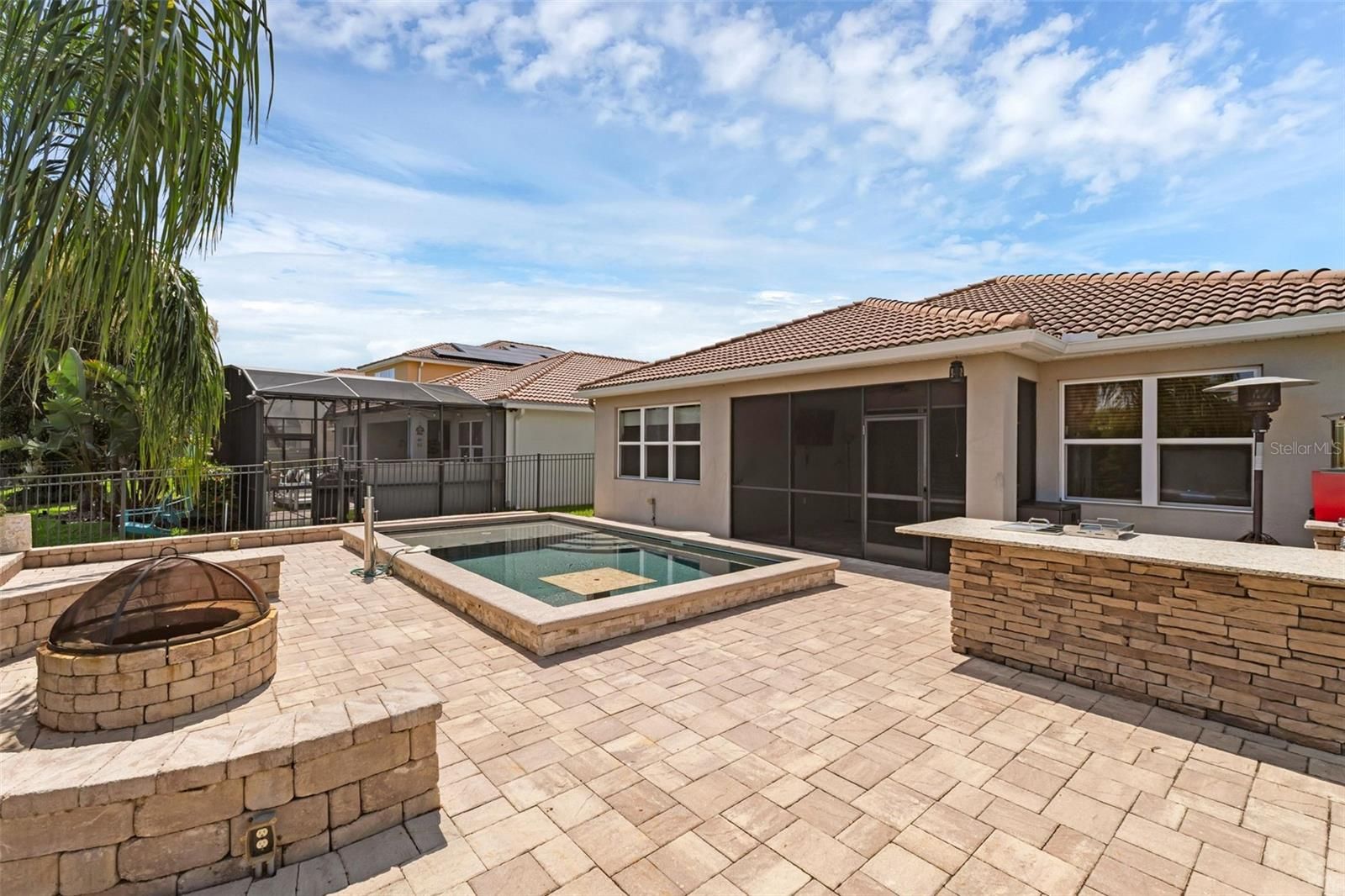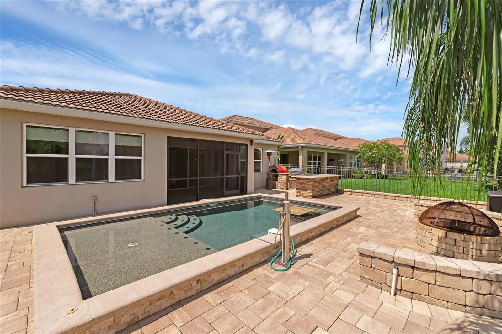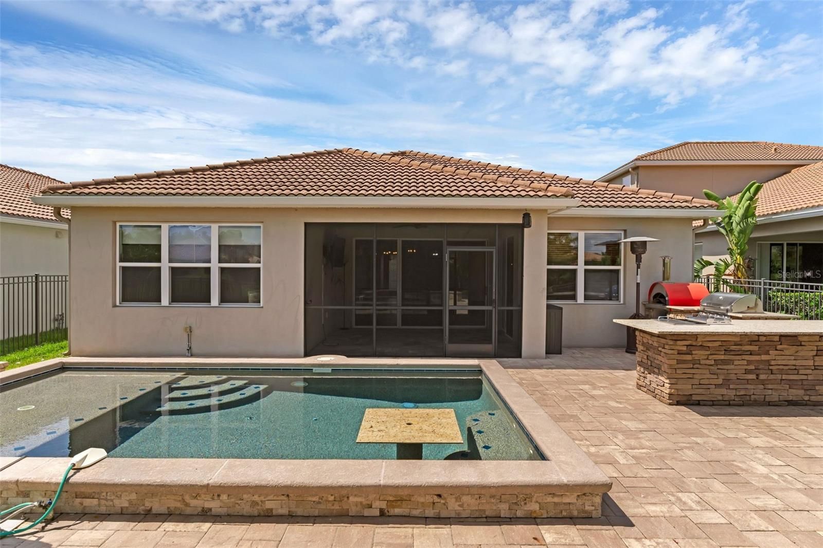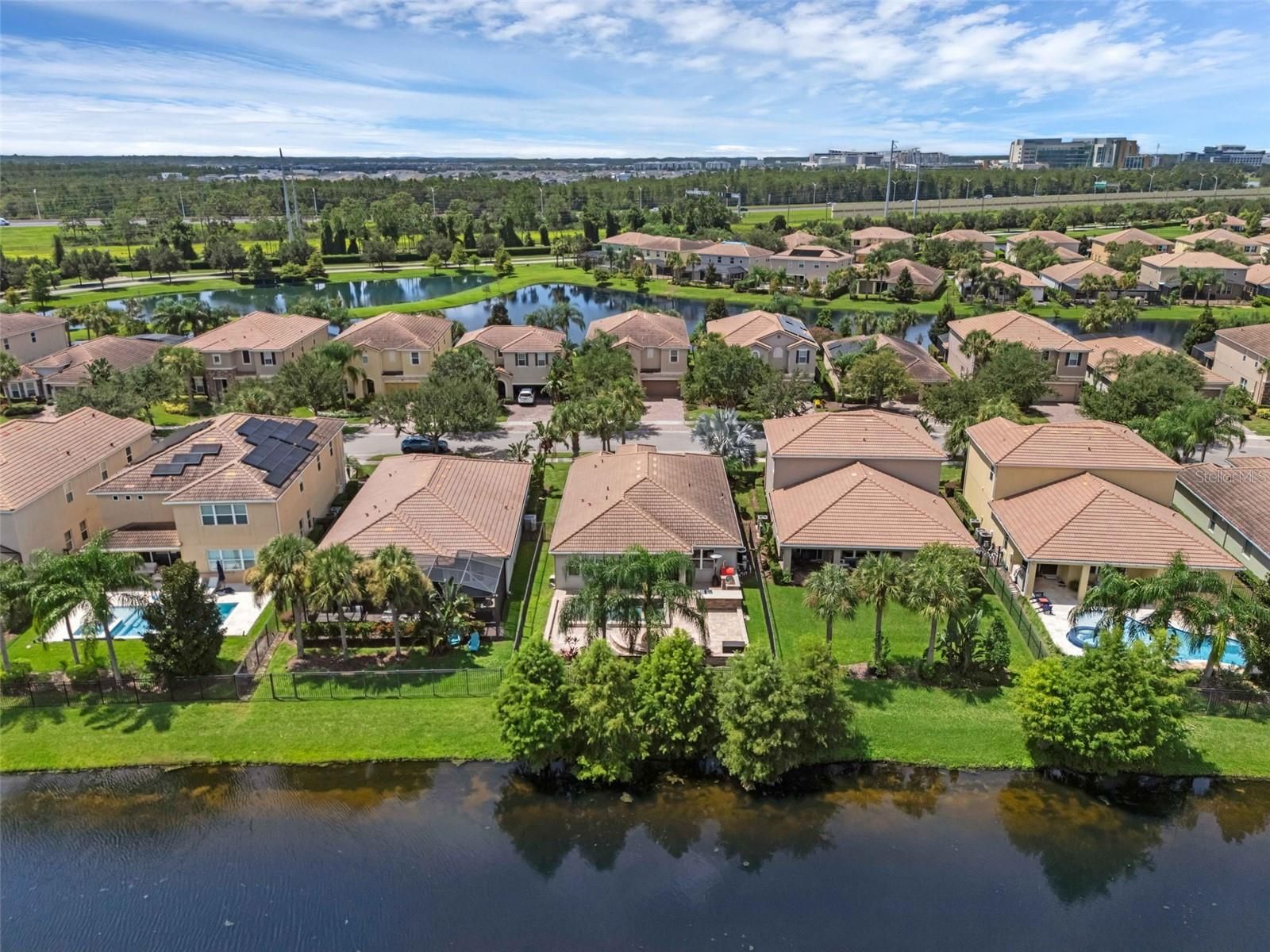 PRICED TO SELL! This fairly new Pompeii model ranch-style home offers the perfect blend of style, comfort, and convenience, nestled on a generous waterfronthomesite in the highly desirable, guard-gated VillageWalk at Lake Nona community. This 3-bedroom, 2-bath home with a dedicated office, 2-cargarage, screened porch, upgraded front glass doors, and beautiful water views is truly a must see! The open, split floor plan provides an ideallayout with the spacious primary suite on one side, two additional bedrooms and a full bath on the opposite side, and a private office convenientlylocated off the family room. Tile flooring flows throughout the main living areas, with carpet in the secondary bedrooms for added comfort. Thegourmet kitchen features a large center island with sink, pantry closet, butler’s area, 42” cabinets, granite countertops, and stainless steelappliances, perfect for both everyday living and entertaining. A separate laundry room includes washer and dryer. The primary suite showcasesserene water views, a walk-in closet, double-sink vanity, soaking tub, and a separate walk-in shower. A durable tile roof adds lasting value. Stepoutside to your custom-built outdoor kitchen, sparkling pool, extended pavered entertainment area, and fully fenced backyard, ideal for relaxing,entertaining, and grilling while enjoying tranquil water views. VillageWalk is a true resort-style community, where the HOA covers full lawnmaintenance (including irrigation), cable, internet, and 24-hour guard-gated security—giving you more time to enjoy life. Community amenitiesinclude a heated lap pool, resort-style pool, state-of-the-art fitness center, tennis pavilion with six lighted courts, basketball and pickleball courts,lakeside gazebo, gas station, café and deli market, post office, game room, and a multipurpose room perfect for gatherings. Ideally located withina beautifully designed 500-acre master-planned community, VillageWalk is just minutes from Lake Nona Medical City, Orlando InternationalAirport, USTA’s 106-court tennis facility, KPMG, premier dining, shopping, excellent schools, and world-class medical and educational institutions.Enjoy easy access to everything Lake Nona and Orlando have to offer. Don’t miss this exceptional waterfront home, schedule your privateshowing today!