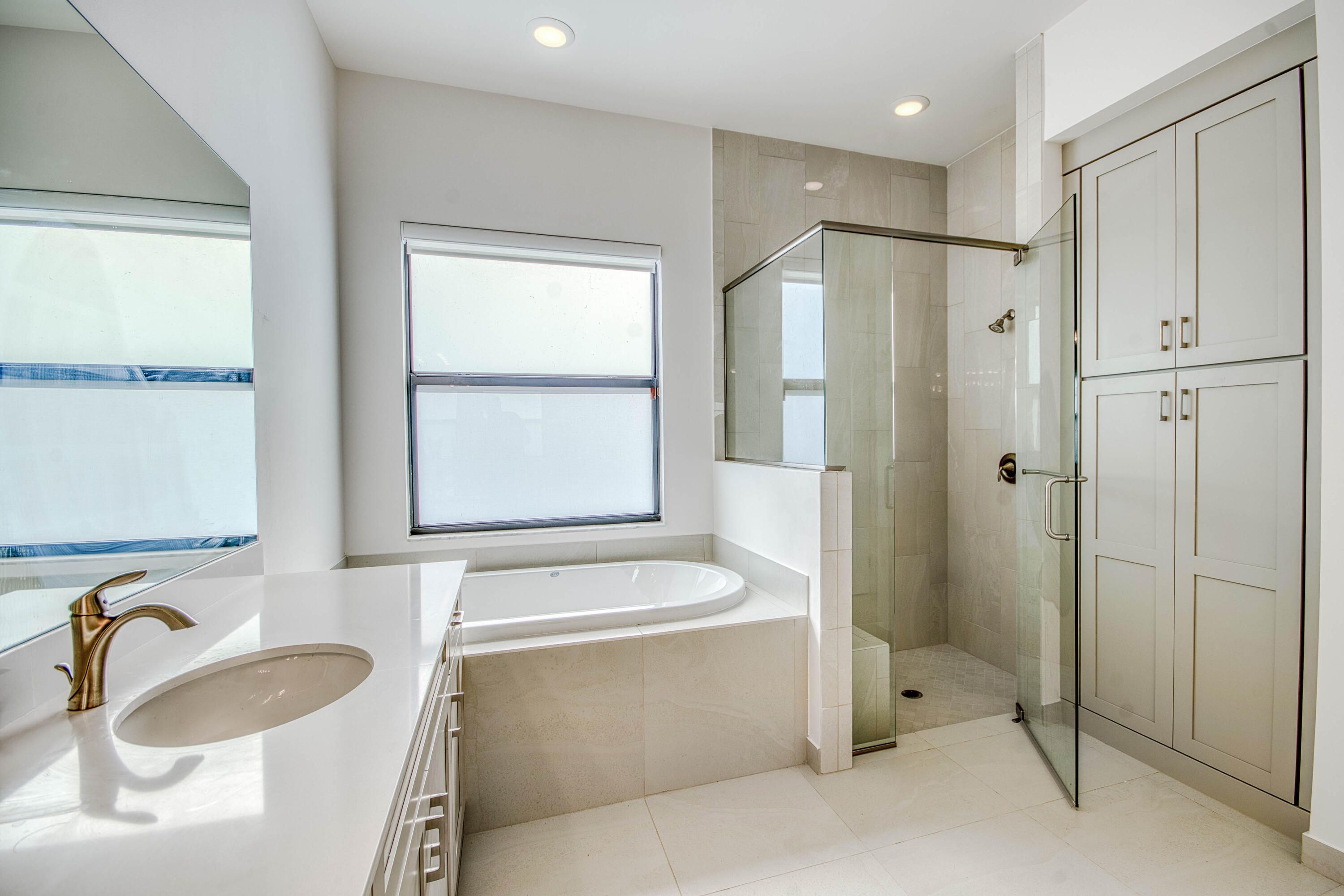 - Pantry, Walk-In Closet(s), Split Bedrooms, Stacked Bedrooms, Impact Glass, Kitchen/Dining Combo, Dual Sinks, Main Level Primary, Separate Shower, Soaking Tub