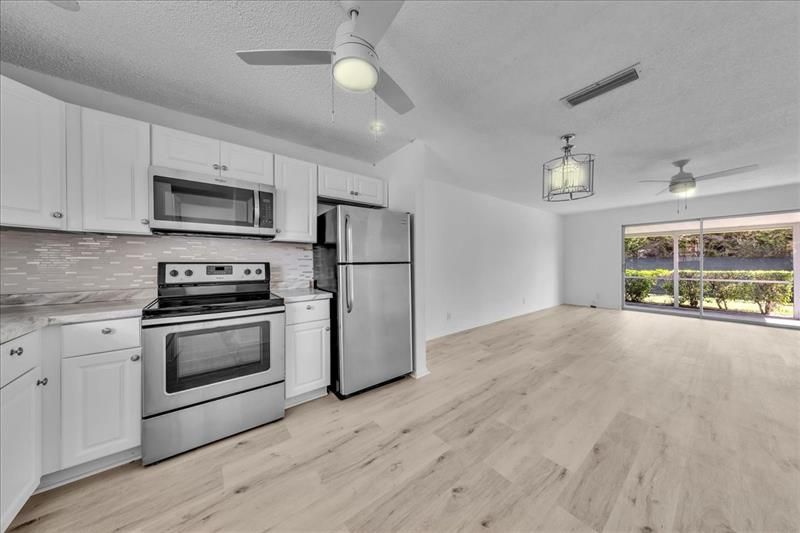 Mint condition corner villa. Beautiful quartz kitchen, new appliances, brand new floors throughout, private screened patio great for entertaining. 55+ community pool and amenities. Easy to show