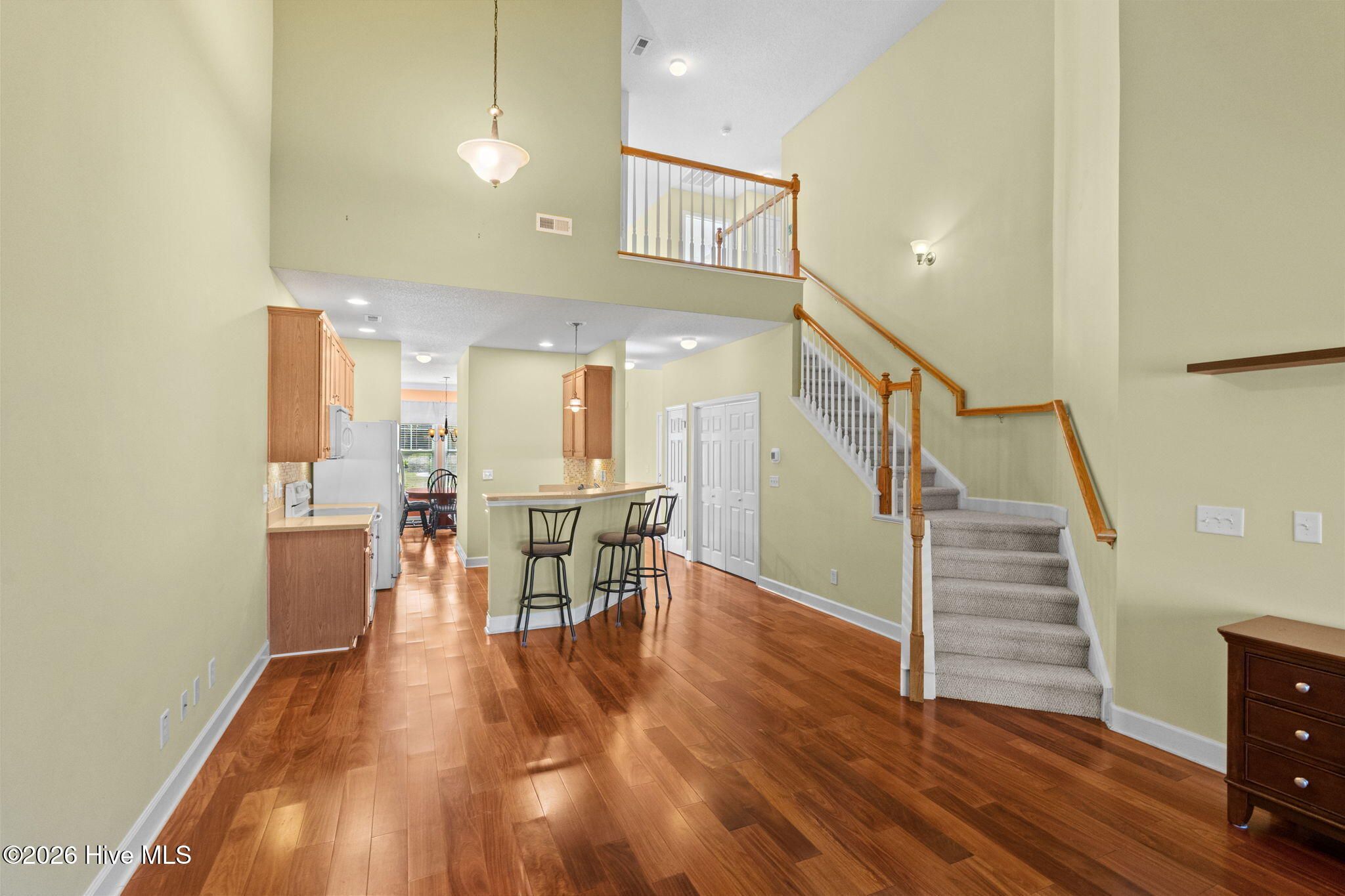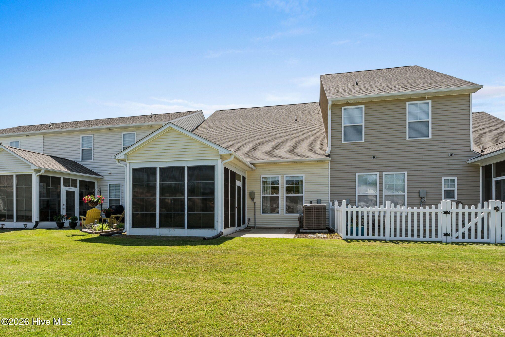 Resort-style living at its finest! From the moment you step inside, you're welcomed by a sense of calm and a stunning water view that instantly invites you to relax. The peaceful pond setting can be enjoyed from the kitchen, living room, primary suite, and even an upstairs bedroom, creating a tranquil backdrop throughout the home. The enclosed porch is the perfect year-round retreat, ideal for taking in the view, while an Amish fireplace adds warmth and comfort on cooler days. Beautiful hardwood floors flow through the dining area, kitchen, living room, and hall bath, complemented by a cozy fireplace in the main living space. The primary suite is conveniently located on the main level, with additional bedrooms upstairs along with a loft featuring bunk beds--perfect for guests or extra sleeping space. The home has been thoughtfully updated with upgraded appliances and a newer HVAC system installed in 2019. The garage offers added convenience with a utility sink, extra refrigerator, and generous storage space both overhead and under the stairs. Enjoy low-maintenance living with an HOA that covers exterior maintenance, landscaping, termite bond, and even annual pressure washing. Ideally located near the charming restaurants of Calabash and just a short drive to the sandy shores of Sunset Beach. Come experience it for yourself--you may not want to leave. Buyer is responsible for verification.