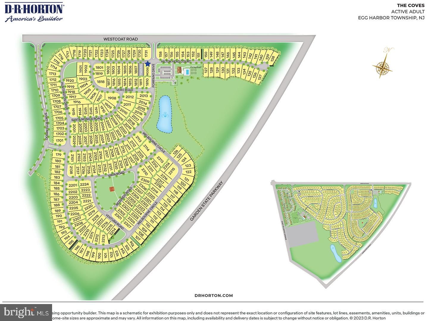 The Bristol by D.R. Horton is a stunning new construction, ranch home plan featuring 1,748 square feet of living space, 2 bedrooms, a flex room, 2 bathrooms and a 2-car garage. Look no further than the Bristol for the convenience of first floor living! The foyer welcomes you in past a large bedroom and flex room, you decide how this space functions! The kitchen with a large island perfect for prep work, entertaining and casual dining flows effortlessly into the living room and dining area. The owner’s suite is off the main living area and features a spacious bathroom and huge walk-in closet that has a door into the laundry room – simplifying an everyday chore! Come see our NEW one-of-a-kind AMENITY FILLED COMMUNITY in Atlantic County offering a 3,500 Sq. Ft. Clubhouse, Outdoor Pool, Pickleball Courts, Bike Rack & Walking Trails for your enjoyment! The Coves at Ocean Club offers New Construction Ranch homes in Egg Harbor Township, with easy access to major communing routes situated only 2.9 miles from the Garden State Parkway, 1.4 miles from the AC Expressway, 4 quick miles to the AC Airport & only 17 miles to Ocean City's tranquil beach and boardwalk! America’s #1 Homebuilder since 2002 offers the peace of mind and benefits of purchasing from a national builder, where you can experience the quality of life you've been looking for at a value you will appreciate! *Your new home also comes complete with our Smart Home System featuring a Qolsys IQ Panel, Honeywell Z-Wave Thermostat, Amazon Echo Pop, Video doorbell, Eaton Z-Wave Switch and Kwikset Smart Door Lock. Ask about customizing your lighting experience with our Deako Light Switches, compatible with our Smart Home System! **Photos representative of plan only and may vary as built. **Now offering closing cost incentives with use of preferred lender. See Sales Representatives for details and to book your appointment today!