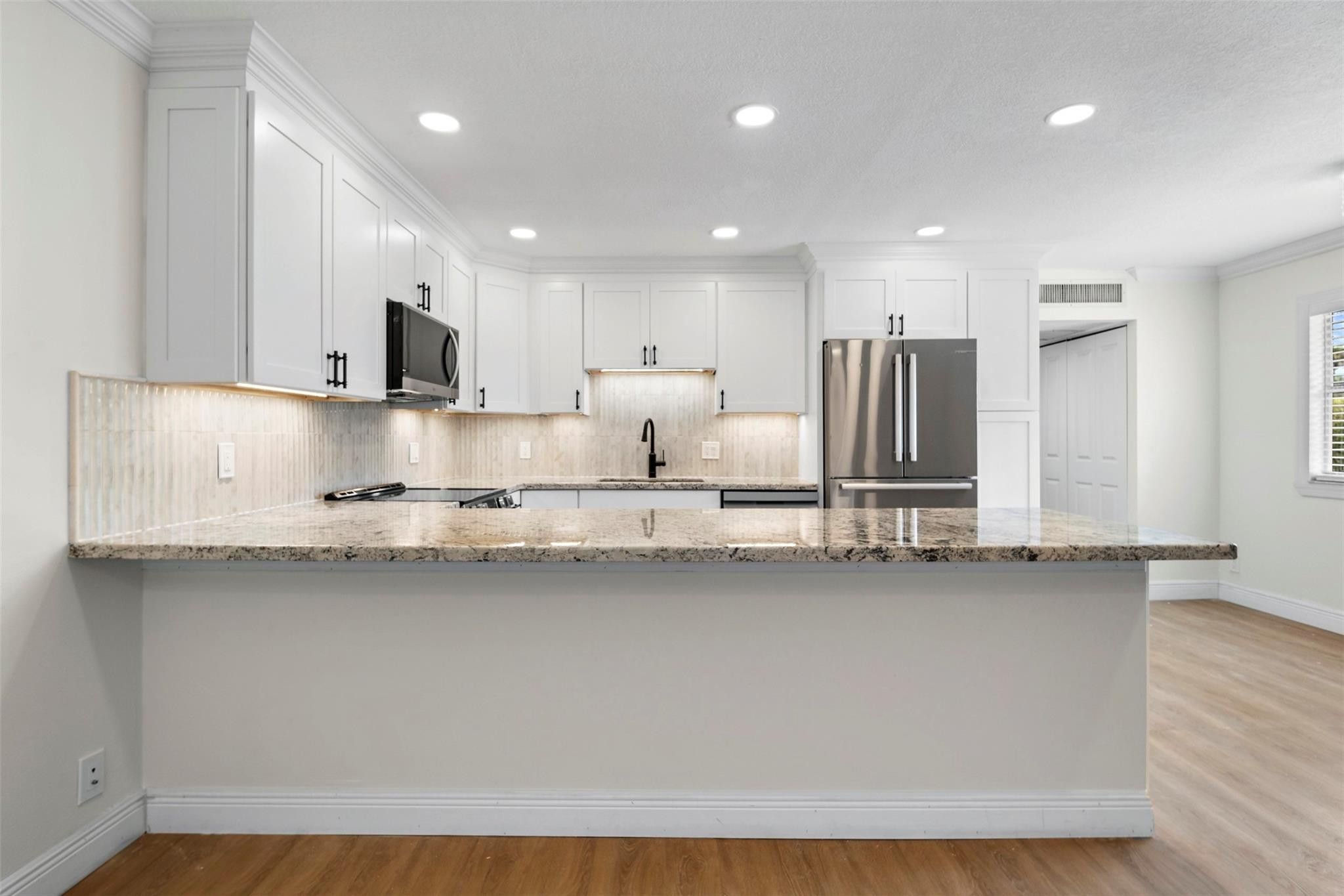 Completely remodeled 1BR/1.5BA located in the highly desirable 55+ community of Kings Point in Delray Beach. Villa-style corner unit. Spacious open-concept layout with wood-look tile throughout and high-end finishes. Updated kitchen with brand-new appliances and modern cabinetry. Both bathrooms fully renovated. Large primary bedroom with ample closet space. Enclosed porch adds additional living area and includes washer and dryer in unit. Kings Point offers resort-style amenities including three clubhouses, pools, two restaurants, theater, fitness center, classes, and social activities. Minutes to nature preserves and Atlantic Ave. $1,800 capital contribution/processing fee due at application submission. No leasing first 2 years. Please note some photos are virtually staged.