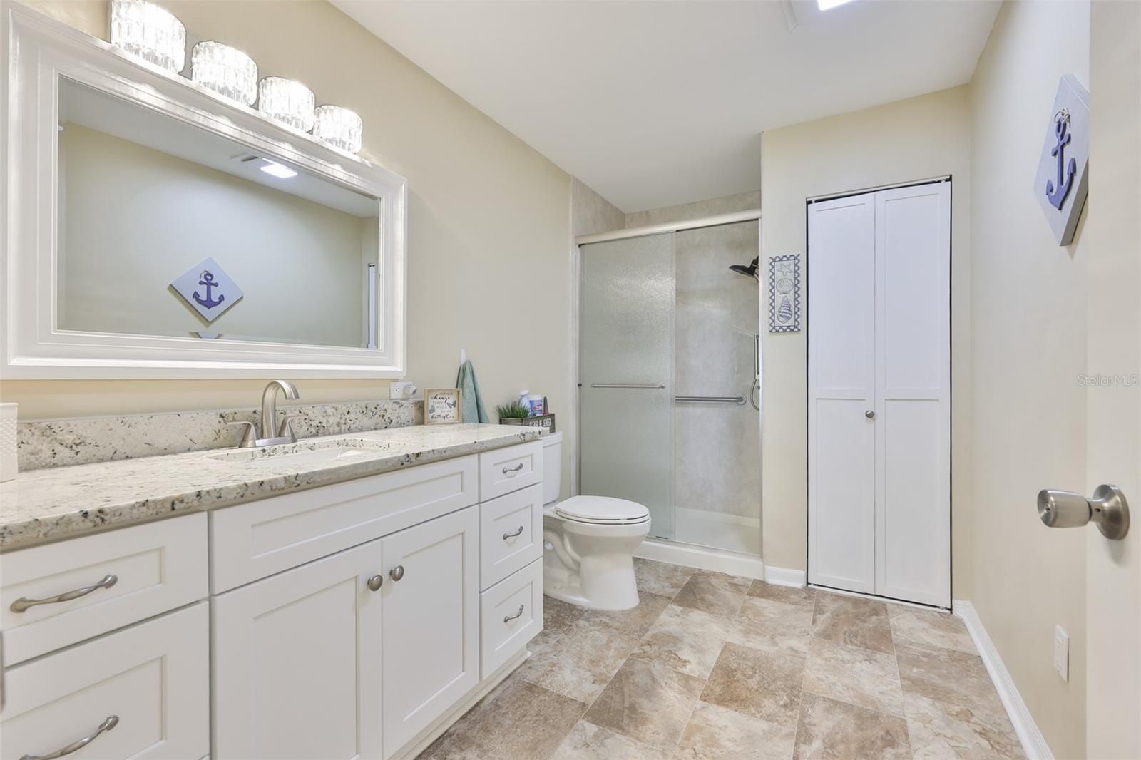 *** Check out our 3D virtual tour**** Welcome to this beautifully updated 2-bedroom, 2-bath Twin Tree model located in the desirable Sabal Lakes association of Sun City Center, offering 1,516 heated square feet of stylish and comfortable living. From the moment you enter, you'll appreciate the fresh, modern feel with new luxury vinyl flooring throughout the main living areas, tile in the bathrooms, and plush new carpeting in the bedrooms. The completely remodeled kitchen is a true showstopper, featuring granite countertops, new cabinetry with crown molding, recessed lighting, all new lighting fixtures, and sleek stainless steel appliances. The extended granite counter offers a perfect breakfast bar for casual dining and entertaining. The spacious primary suite is a private retreat, complete with a custom-built walk-in closet and a fully renovated spa-like bathroom featuring granite countertops, new tile flooring, a stunning walk-in shower with rain-style glass doors, updated mirror, and modern lighting. Step outside to the tiled, screened-in lanai and take in the breathtaking lake view- truly spectacular. Surrounded by a majestic mature oak tree and beautifully maintained perennial landscaping, this outdoor space is the perfect place to relax and unwind. Additional upgrades include a new A/C system, high-impact windows throughout, new plumbing, and a new high-impact garage door, along with new high-impact front and side garage doors - providing both peace of mind and energy efficiency. This move-in ready home combines thoughtful upgrades with serene surroundings - don't miss your opportunity to own a slice of paradise.