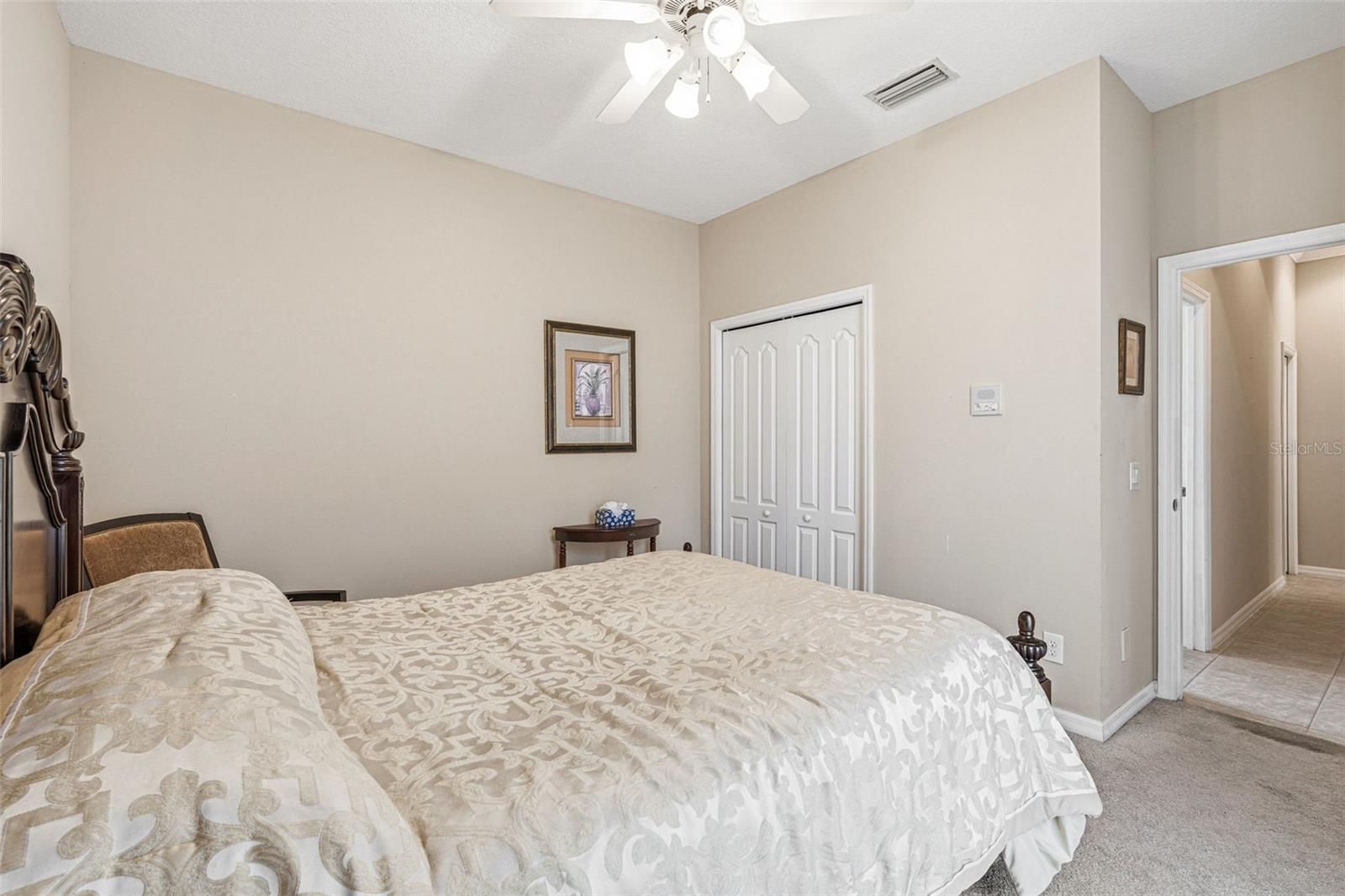 - Ceiling Fan(s), Central Vacuum, Crown Molding, Eat-in Kitchen, High Ceilings, Open Floorplan, Main Level Primary, Stone Counters, Thermostat, Tray Ceiling(s), Walk-In Closet(s), Window Treatments