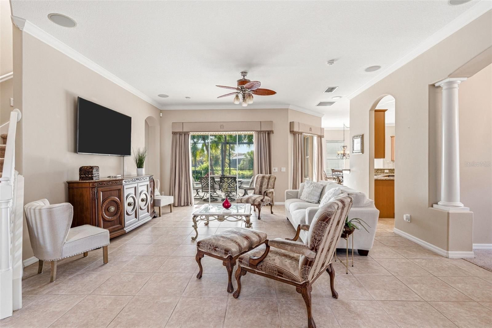 Experience the ultimate Florida lifestyle in this beautiful TURNKEY furnished residence located in the highly sought-after Heron Creek Golf & Country Club. Thoughtfully designed for both luxury and comfort, this spacious 4-bedroom + den, 3-bath home delivers an exceptional blend of open-concept living, resort-style outdoor amenities, and a premier country club setting. A NEW TILE ROOF (2023) and new 2nd-floor AC (2025) provide peace of mind from the moment you arrive. Step through the private courtyard entry into a soaring two-story foyer that opens to a bright, inviting great room with views of the lanai and pool. The heart of the home is the expansive kitchen—complete with gas stove, solid wood cabinetry, granite countertops, stainless steel appliances, breakfast bar, island, built-in desk/coffee bar, dinette, and a separate formal dining room perfect for gatherings. The first-floor master suite is a true retreat, offering two walk-in closets, a sitting area, and direct access to the pool for effortless morning or evening swims. A private guest suite with its own full bath and private entrance is also located on the main level, ideal for visitors. A double-door den provides flexible space for a home office, study, or media room. Upstairs, a spacious loft/family room with built-in desks anchors two additional bedrooms—each with walk-in closets—and a full bath, creating the perfect zone for guests, hobbies, or multi-generational living. Step outside to your private outdoor oasis: a covered lanai with heated saltwater pool & spa, surrounded by lush landscaping, mature palms, and tranquil pond views. Whether you’re entertaining or unwinding, this serene setting captures the essence of Florida living. Additional features include a 3-car garage, central vacuum system, intercom/radio throughout the home and lanai, along with abundant storage. Heron Creek is a 676-acre, 27-hole country club community with over 430 acres dedicated to golf courses and permanent nature preserves. Designed by renowned golf course architect Arthur Hills, the community offers residents a natural habitat for a variety of birds and wildlife. The 21,000 sq.ft. main clubhouse features the formal Top of the Green Main Dining Room, the casual Heron’s Roost Grille Room, the Golf Pro Shop, meeting rooms, and administrative offices. The clubhouse complex also includes a state-of-the-art fitness center with saunas and locker rooms, five lighted Har-Tru tennis courts, the Tennis Pro Shop, and a resort-style swimming pool with a sun deck and spa. Choose from three membership levels to suit your lifestyle. Located minutes from I-75, US-41, shopping, dining, medical facilities, and the Atlanta Braves’ CoolToday Park—complete with tiki bar and entertainment. Beaches, Wellen Park, and Gulf Coast attractions are all within easy reach. Turnkey, elegant, and move-in ready—this home delivers everything you’ve been searching for. Discover the perfect blend of luxury, comfort, and community at 1230 Creek Nine Dr. Homes like this don’t come along often. Schedule your private showing today.