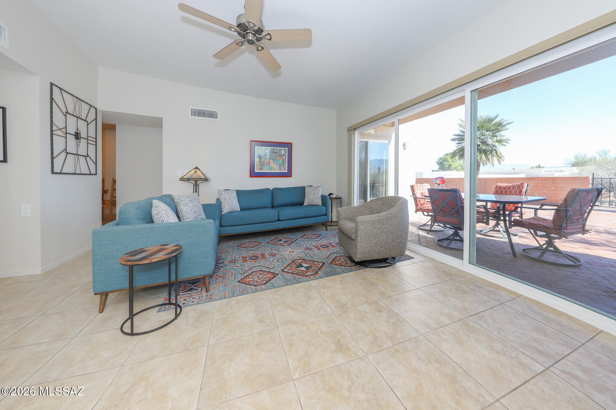 A rare find with fantastic mountain views! Beautifully updated inside and out, pride of ownership really shows here. The perfect winter getaway or lovely full-time residence. Enjoy a cup of coffee while gazing at the gorgeous, unobstructed mountain views from the back patio. Amazing, private, end-unit that borders 36 acres of common area on the side and back of property. Everything has been updated inside and out, including new paint, newer appliances, newer windows, no popcorn ceilings, and no carpet anywhere! Tastefully decorated with modern furniture and art (can be included on a separate Bill of Sale- see your REALTOR for details). Located in a desirable community of the Villages with no GVR (optional) saving you thousands $$$. The HOA includes a large, heated pool, spa, community