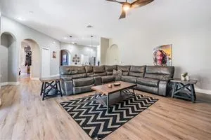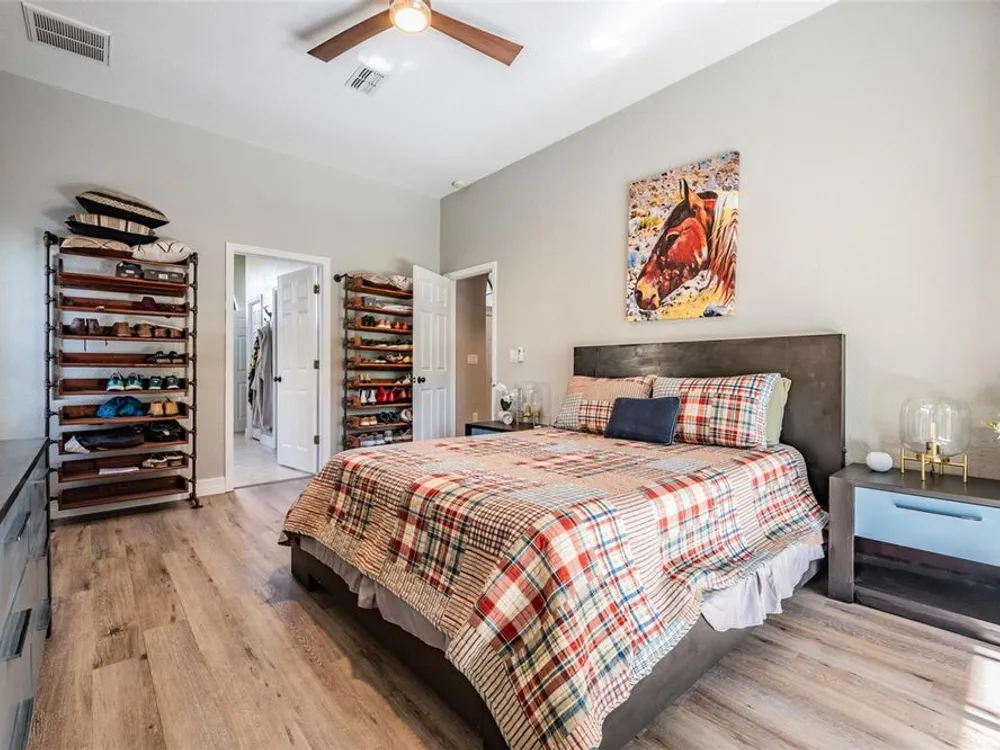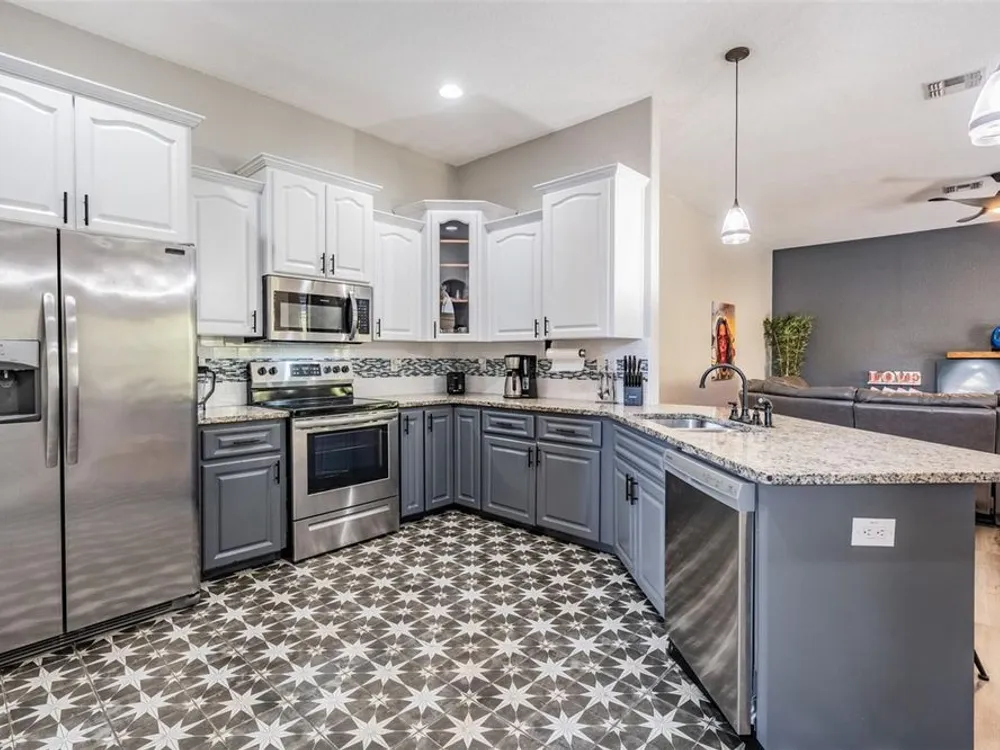 - Ceiling Fan(s), High Ceilings, Kitchen/Family Room Combo, Split Bedrooms, Stone Counters, Thermostat, Walk-In Closet(s)