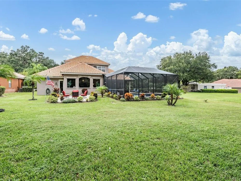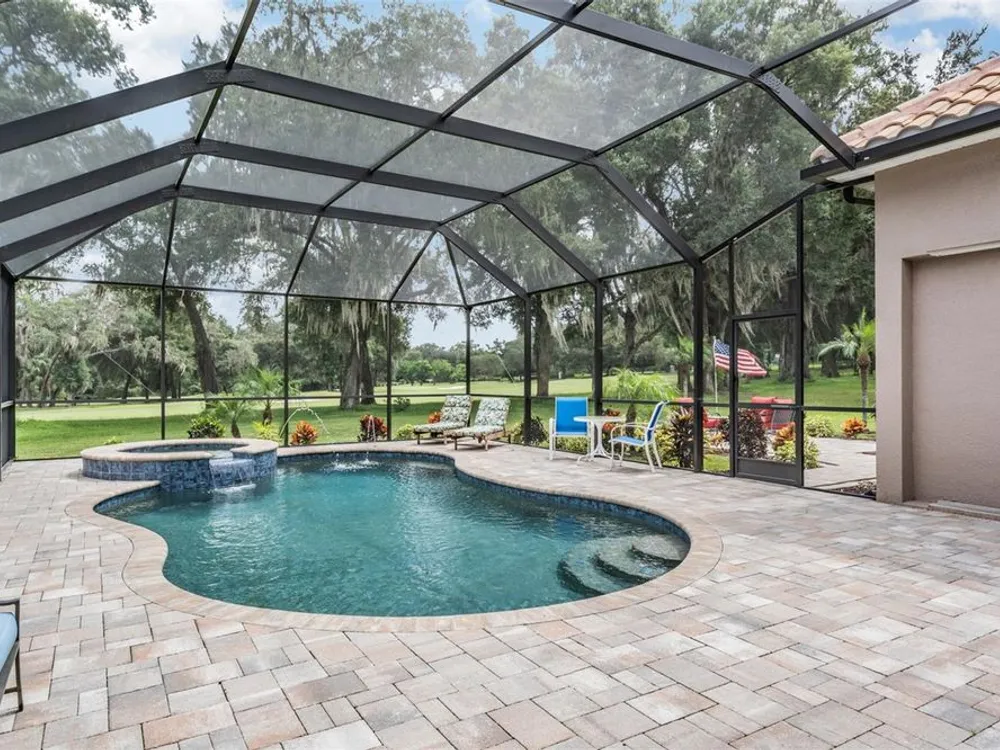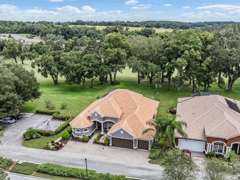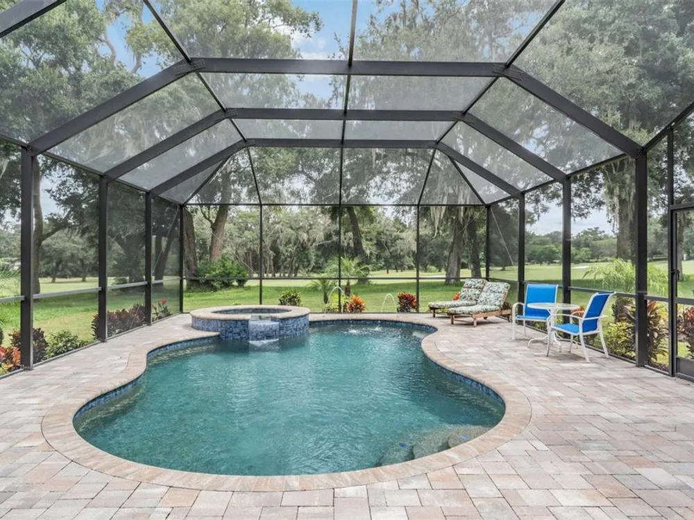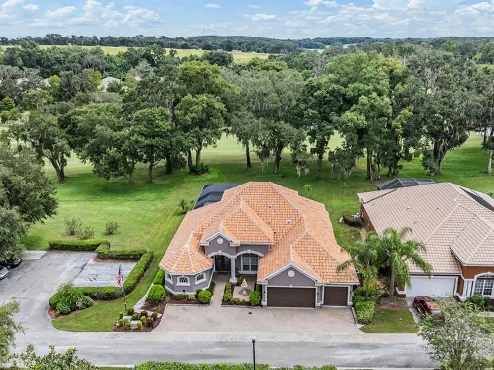 SELLER FINANCING & VALUE PRICED FORMER MODEL HOME located in the prestigious Lake Jovita Golf & Country Club, just north of Tampa, with PICTURESQUE Golf Course views on .28 acre lot! Paver driveway, lush landscape plus paver terrace welcomes you to this LEXINGTON built home. Enter thru double Leaded glass front doors into this light, bright home with an abundance of windows for natural light, elegant hardwood floors, crown molding, vaulted ceilings and serene views of the 15th & 16th holes of Lake Jovita's South Course, which has previously hosted a U.S. Open qualifying tournament! Nearly 3,300 sq. ft. of living space, this 5 bedroom, 4 bath home filled with upgrades, including pocketing quad sliding glass doors in the large family room, offers panoramic views of lush trees and impeccable fairways. Wood floors adorn the Formal living and dining rooms at the front of the home thru to the informal areas, while Crown molding, plant shelves, arches and tray ceilings enhance the home's casual elegance. Large family room features expansive windows offering spectacular views of the golf course from most rooms and is OPEN to the impressive kitchen featuring high ceilings, granite countertops, tile backsplash, 42” wood cabinets with glass fronts, stainless appliances with double ovens, French door refrigerator, breakfast bar & eat-in dining nook overlooking the pool & golf course. Relax on your screened lanai by the refreshing, custom built Saltwater POOL with pebble tec finish (lifetime guarantee), spill over spa with electric pool heater 2024 and spacious paver deck to entertain family and friends! ($100k pool package) Don't miss the Backyard Firepit OPEN paver patio to relax in the evenings! The Owners retreat, with tray ceiling featuring a Luxurious bath ensuite with a jacuzzi tub focal point, walk-in shower with dual showerheads & separate vanities with wood cabinets & Gleaming Granite counters. The neutral interior home is equipped with Barrel tile Roof, two zoned 2024 air conditioning system, a security system, hurricane shutters for glass windows on rear, LED kitchen can lites, intercom system and an automated irrigation system. Wide driveway to three-car garage just off the interior laundry room, while the second floor offers upstairs bonus room with tray ceiling, full bath and storage closet, ideal 5th bedroom, fitness/gym area, gameroom, home office or homeschool/craft/hobby room, adding versatility to this custom floorplan. Private, downstairs back bedroom & full bath makes an ideal in-law or guest suite, with french door access to outdoor patio seating area. Lake Jovita Golf & Country Club is a beautifully manicured, gated community located just 25 minutes north of Tampa. Residents enjoy the walking trail with exercise stations, dog parks, pickleball, tennis, basketball courts, open fields, playground & pavilion to picnic or cook out, all included in the low quarterly HOA. Optional memberships at the club include social events, golfing on 2 championship golf courses, fitness center, tennis, Jr Olympic size swimming pool and a wide array of events and amenities, with fine dining at the club, event-ready spaces, community groups and organizations...Security guard gated, with private streets, Lake Jovita offers an unparalleled lifestyle tucked away in the HILLS of East Pasco area, yet close to shopping, medical facilities & major highways for easy commute to work, Airports and the Beaches. GREAT LOCATION and VALUE...so CALL TODAY!