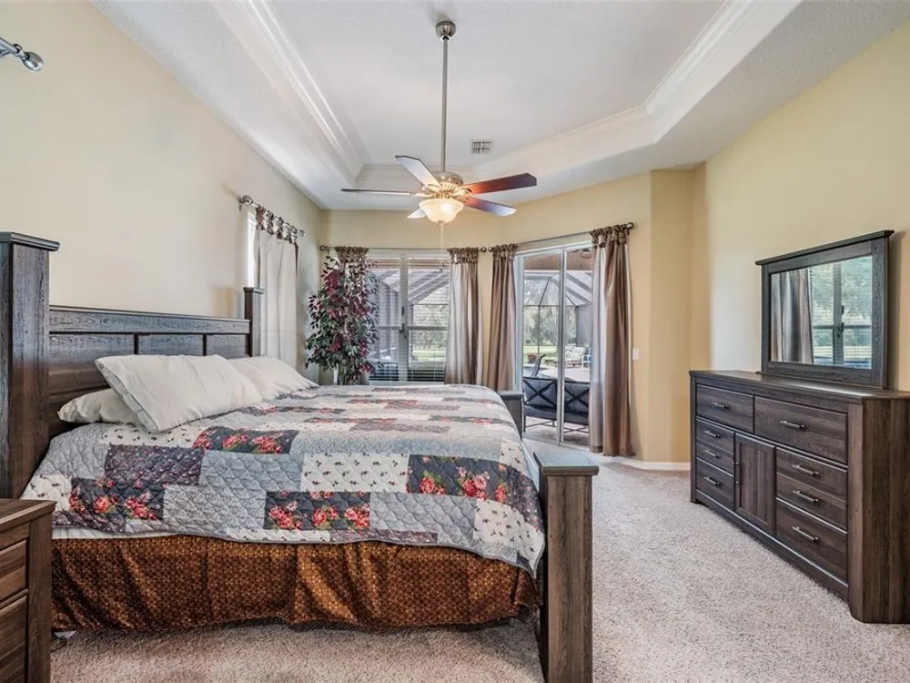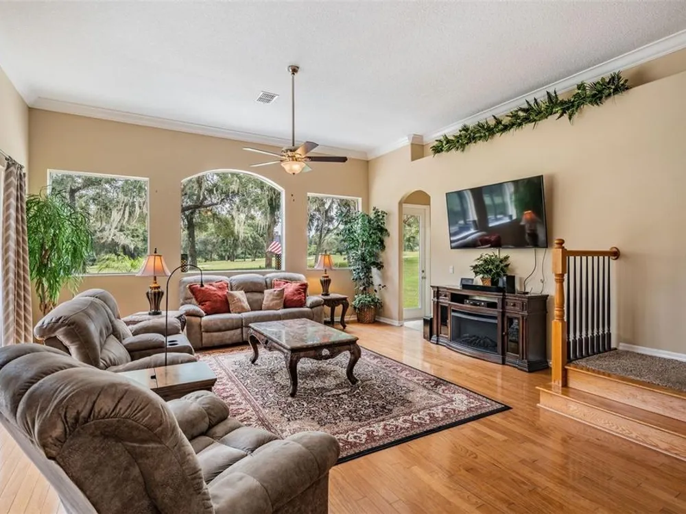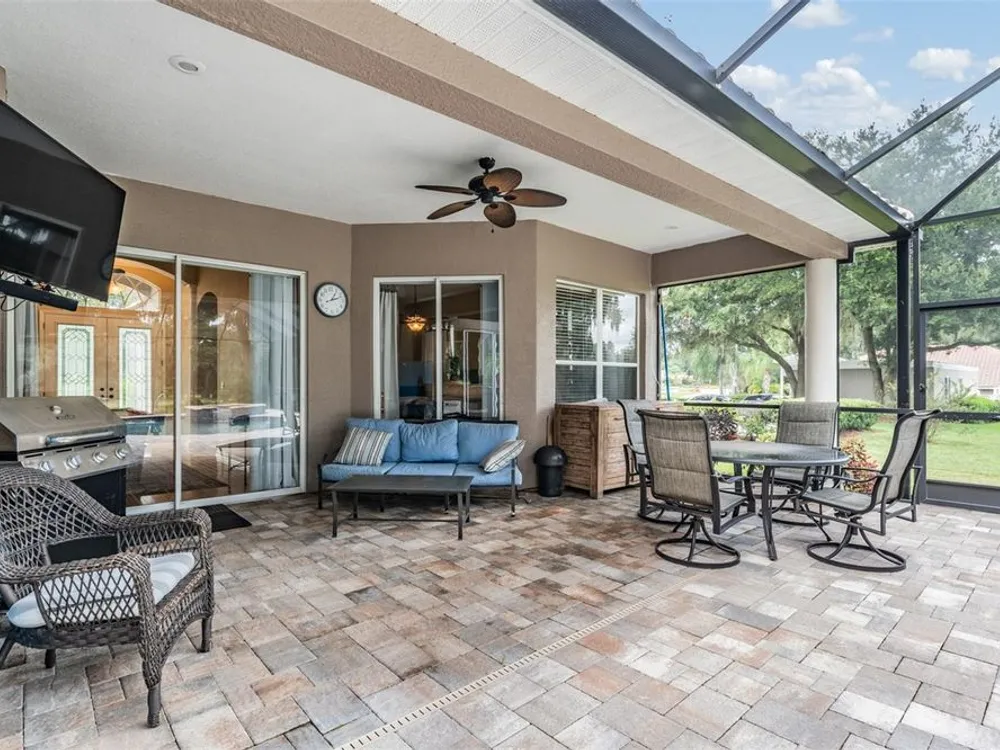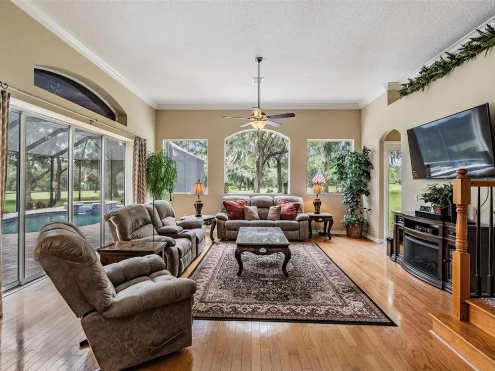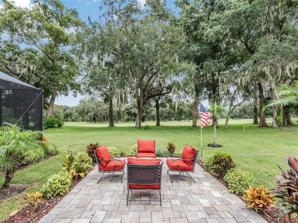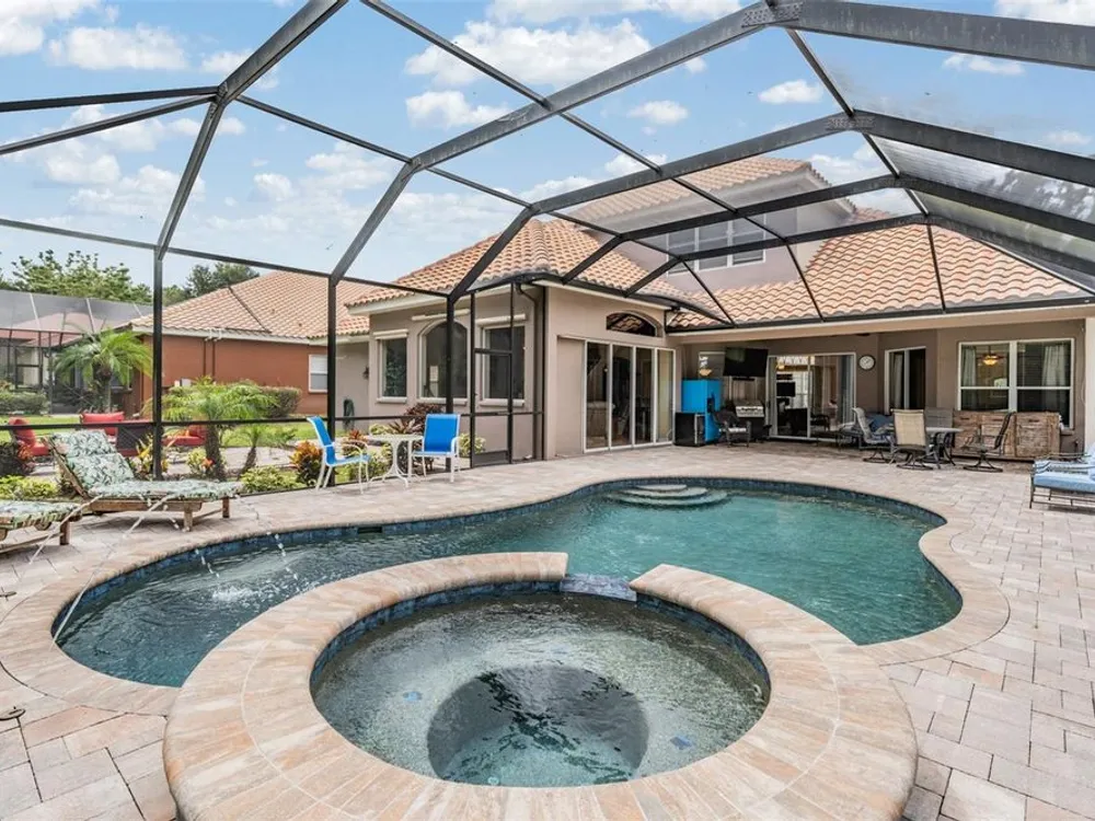 SELLER FINANCING & VALUE PRICED FORMER MODEL HOME located in the prestigious Lake Jovita Golf & Country Club, just north of Tampa, with PICTURESQUE Golf Course views on .28 acre lot! Paver driveway, lush landscape plus paver terrace welcomes you to this LEXINGTON built home. Enter thru double Leaded glass front doors into this light, bright home with an abundance of windows for natural light, elegant hardwood floors, crown molding, vaulted ceilings and serene views of the 15th & 16th holes of Lake Jovita's South Course, which has previously hosted a U.S. Open qualifying tournament! Nearly 3,300 sq. ft. of living space, this 5 bedroom, 4 bath home filled with upgrades, including pocketing quad sliding glass doors in the large family room, offers panoramic views of lush trees and impeccable fairways. Wood floors adorn the Formal living and dining rooms at the front of the home thru to the informal areas, while Crown molding, plant shelves, arches and tray ceilings enhance the home's casual elegance. Large family room features expansive windows offering spectacular views of the golf course from most rooms and is OPEN to the impressive kitchen featuring high ceilings, granite countertops, tile backsplash, 42” wood cabinets with glass fronts, stainless appliances with double ovens, French door refrigerator, breakfast bar & eat-in dining nook overlooking the pool & golf course. Relax on your screened lanai by the refreshing, custom built Saltwater POOL with pebble tec finish (lifetime guarantee), spill over spa with electric pool heater 2024 and spacious paver deck to entertain family and friends! ($100k pool package) Don't miss the Backyard Firepit OPEN paver patio to relax in the evenings! The Owners retreat, with tray ceiling featuring a Luxurious bath ensuite with a jacuzzi tub focal point, walk-in shower with dual showerheads & separate vanities with wood cabinets & Gleaming Granite counters. The neutral interior home is equipped with Barrel tile Roof, two zoned 2024 air conditioning system, a security system, hurricane shutters for glass windows on rear, LED kitchen can lites, intercom system and an automated irrigation system. Wide driveway to three-car garage just off the interior laundry room, while the second floor offers upstairs bonus room with tray ceiling, full bath and storage closet, ideal 5th bedroom, fitness/gym area, gameroom, home office or homeschool/craft/hobby room, adding versatility to this custom floorplan. Private, downstairs back bedroom & full bath makes an ideal in-law or guest suite, with french door access to outdoor patio seating area. Lake Jovita Golf & Country Club is a beautifully manicured, gated community located just 25 minutes north of Tampa. Residents enjoy the walking trail with exercise stations, dog parks, pickleball, tennis, basketball courts, open fields, playground & pavilion to picnic or cook out, all included in the low quarterly HOA. Optional memberships at the club include social events, golfing on 2 championship golf courses, fitness center, tennis, Jr Olympic size swimming pool and a wide array of events and amenities, with fine dining at the club, event-ready spaces, community groups and organizations...Security guard gated, with private streets, Lake Jovita offers an unparalleled lifestyle tucked away in the HILLS of East Pasco area, yet close to shopping, medical facilities & major highways for easy commute to work, Airports and the Beaches. GREAT LOCATION and VALUE...so CALL TODAY!