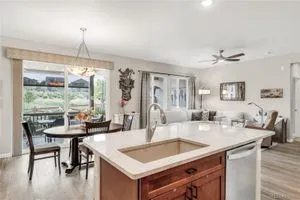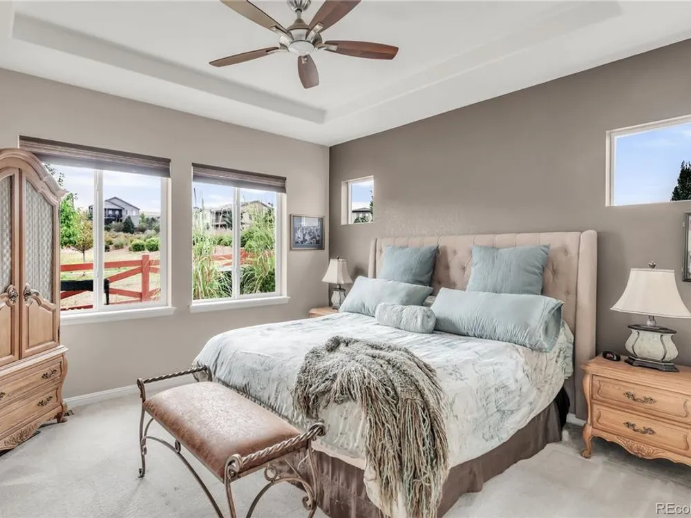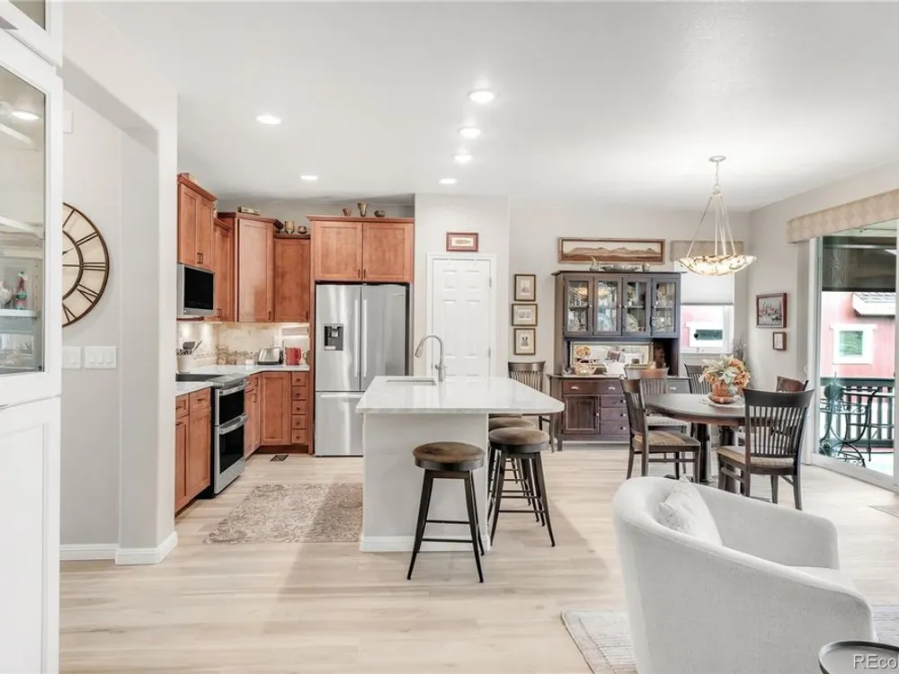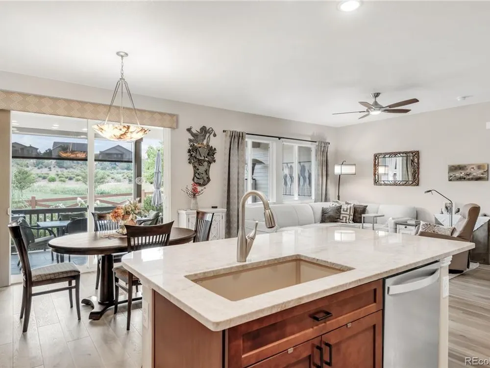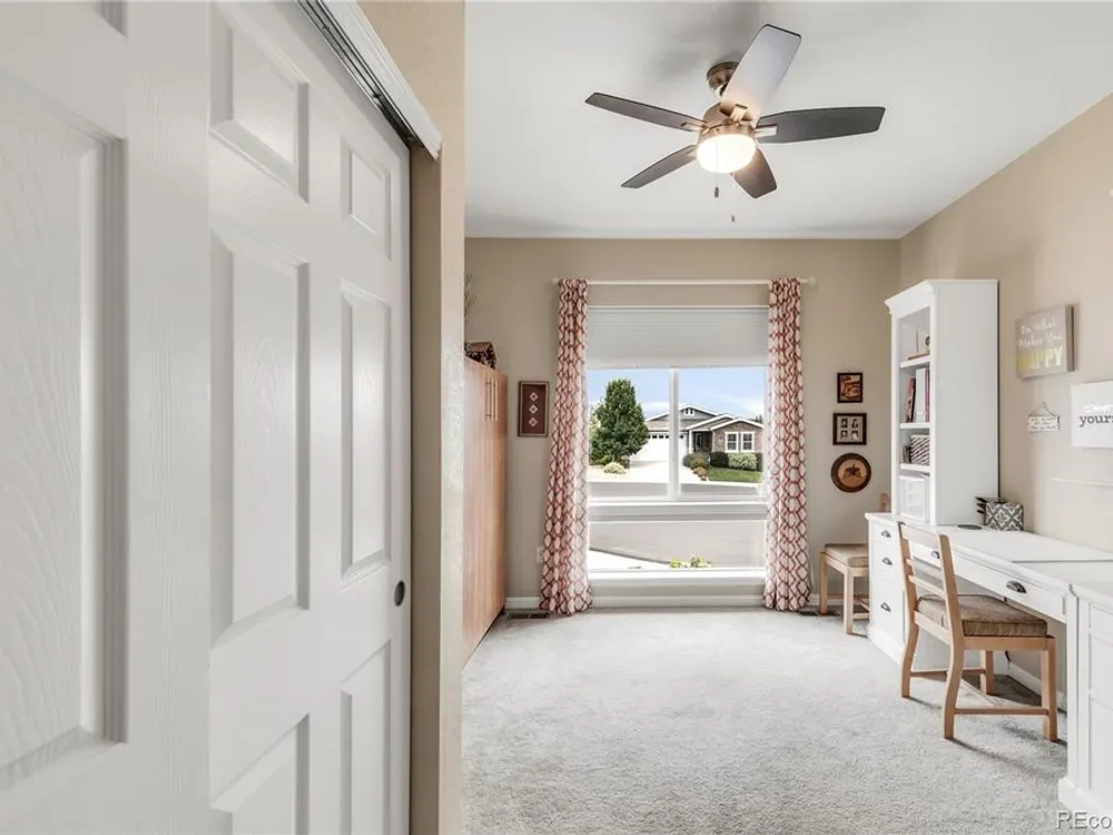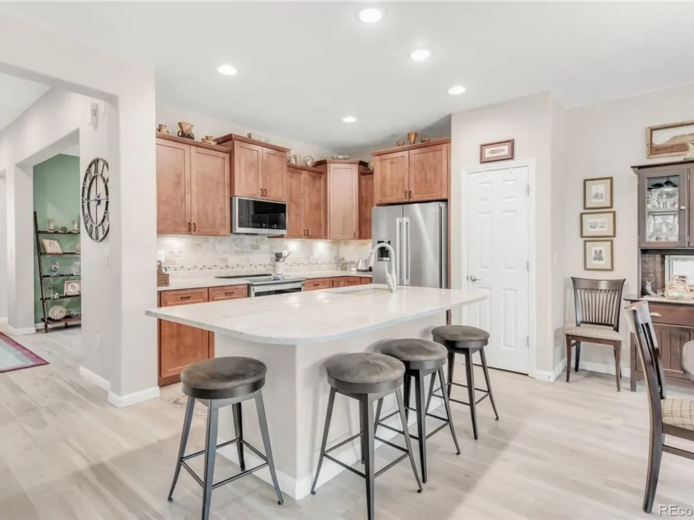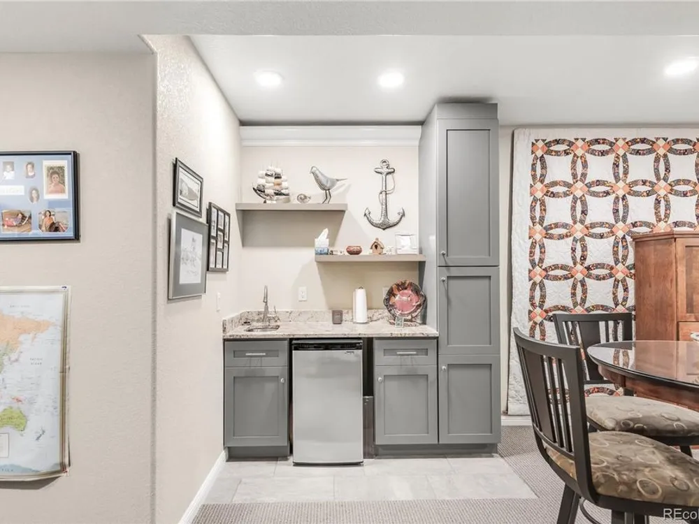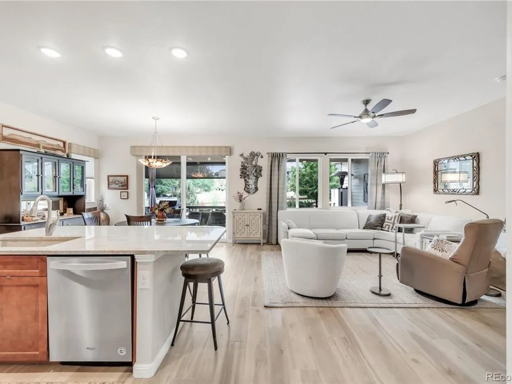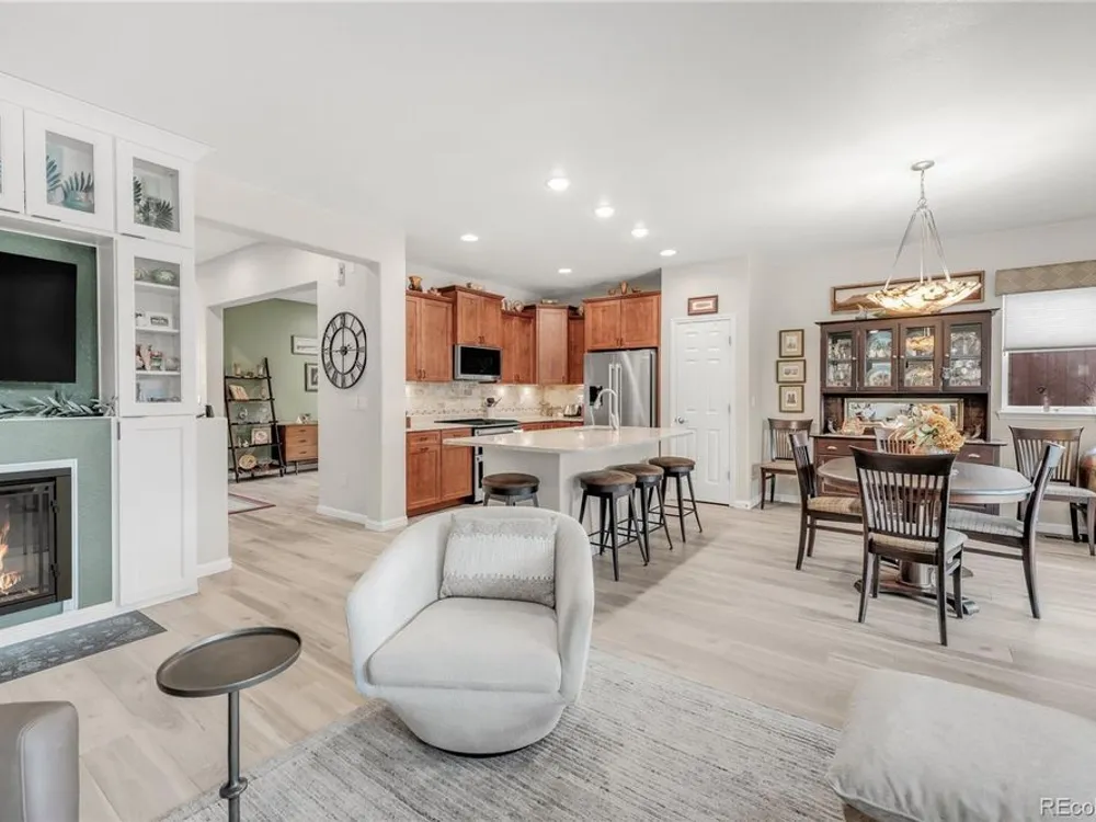Welcome to this stunning Flagstone Model in the vibrant 55+ Skyestone community, perfectly situated on a private, secluded premium lot backing to manicured open space—one of the best locations in the neighborhood. Designed for both elegance and comfort, this home showcases an extended back porch with porcelain tile and motorized privacy shades, a wet bar in the family room, and a thoughtfully finished garage with epoxy flooring, textured painted walls, and added insulation. At the heart of the home is a completely remodeled chef’s kitchen featuring a large quartzite island, premium stainless steel appliances, modern cabinetry, and elegant finishes, all set against updated luxury vinyl tile flooring that flows seamlessly into the open dining and living areas with a cozy fireplace and abundant natural light. The primary suite is a serene retreat with dual sinks, an oversized shower, and a walk-in closet with built-in shelving. A guest bedroom with Murphy bed, office/den, and convenient laundry room complete the main level. The beautifully finished basement extends the living space with a wet bar, bedroom, bath, and ample storage. Outdoors, enjoy the professionally landscaped, xeriscaped, maintenance-free backyard with mature plantings and an extended patio ideal for year-round entertaining. As part of Skyestone, you’ll enjoy resort-style amenities including a lodge, pool, spa, pickleball courts, fitness center, and a full calendar of social events—all just minutes from scenic trails, Westminster Dog Park, Hwy 36, Boulder, and Denver.