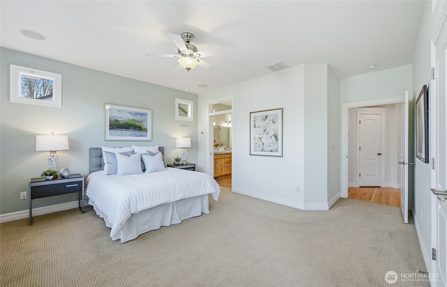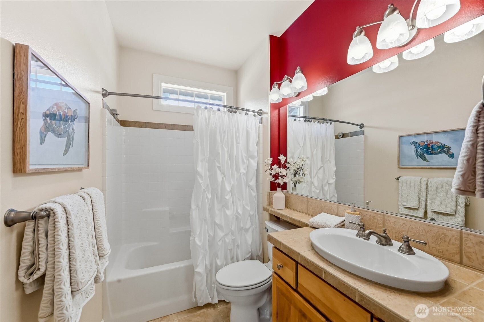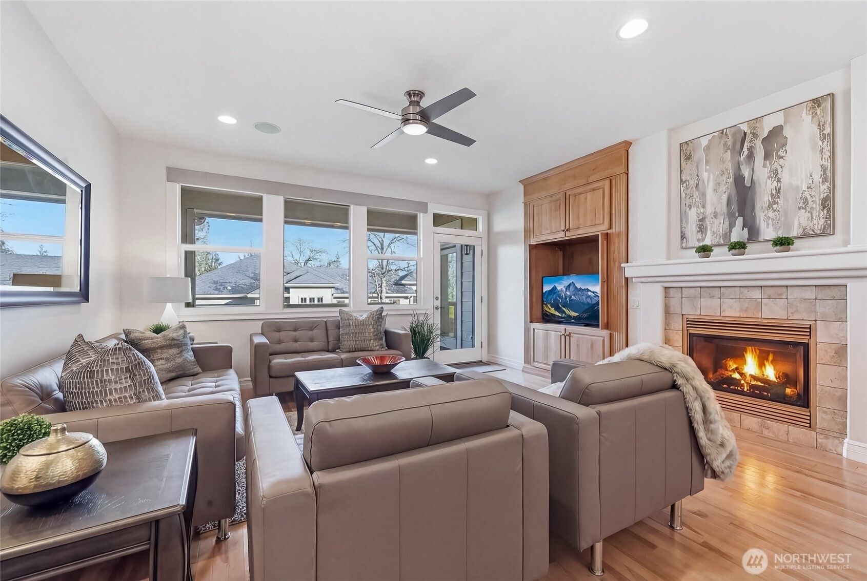 Enjoy year-round resort style living in this rare, 3-bedroom Union model home located on a sunny, level lot in the 55+ community of Trilogy at Redmond Ridge. Hardwood floors anchor the expansive great room which features a built-in media cabinet, a cozy gas fireplace and Silhouette window treatments. Wood cased windows frame the sweeping territorial and big sky views. The beautifully updated chef's kitchen includes 42" Maple cabinetry with handy pullouts topped with gorgeous granite countertops, a newer Kitchen Aid stainless steel appliance package, large walk-in pantry & Solartube skylight. Oversized primary bedroom and beautiful ensuite bath features a new step-in shower, walk-in closet plus a reach-in closet. The additional 2 bedrooms provide flexible bedroom, office or craft area options. They share a full bath that can create a 2-bedroom guest suite for your long, or short term, guests. Superb outdoor space includes an expanded, partially covered, Wolf composite deck plus a sunny brick patio area with raised beds for easy gardening. The fully fenced backyard is perfect for your four-legged friend. 2 car garage has lots of storage cabinets and a handy work bench ideal for household projects. Premium millwork package. Fischer Paykel washer and dryer. H2O tank with H2O water recirculating pump. Newer furnace and A/C. The BRAND NEW ROOF with transferable warranty is the cherry on top. Ages 55+