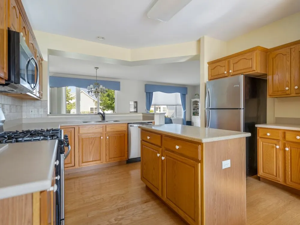 Popular Del Webb built Petoskey model on an Oversized Corner lot in close proximity to Prairie Lodge and Wildflower Lake and Walking Path! Features include: Upgraded Elevation with Brick ~ Hardwood Floors ~ 6 Panel White Doors & Trim ~ Island Kitchen with Bay Window & Transom Windows ~ Stainless Steel Appliances ~ Corian Counters ~ Ceramic Backsplash ~ Living Room with Fireplace ~ Den/Office ~ Primary Bedroom with Dual Walk-In Closets ~ Private Bath with Dual Vanity, Garden Tub and Separate Shower ~ Guest Bath with Linen Closet & Transom Window ~ Laundry Room with Cabinets and Sink ~ 2 Car Garage ~ Rare Climate Controlled Storage Room with Full Window ~ Oversized Paver Patio ~ Mature Landscaping & Trees ~ Recent Updates Include: Roof (2022) ~ Furnace & A/C (2019) Water Heater (2018) - NOTE; Market Time due to 2 Buyer's backing for reasons that had nothing to do with the house itself, so please view with confidence!