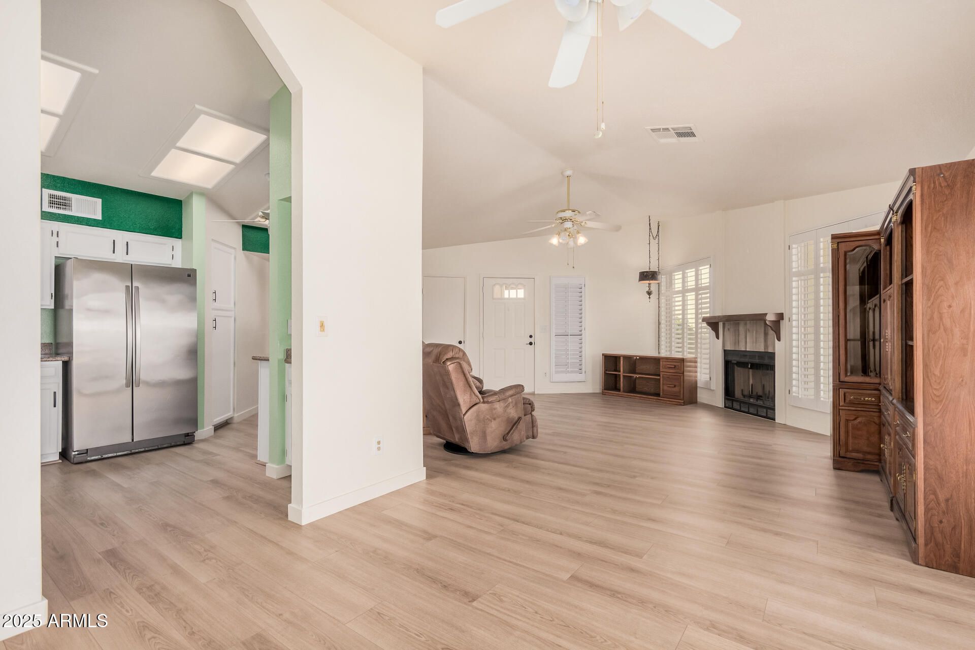 Welcome to Ahwatukee's Premier 55+ Community! Beautifully maintained 2-bedroom, 2-bath home offering comfort, style, and convenience. Newer luxury vinyl plank flooring, fresh interior paint, and modern stainless steel kitchen appliances complemented by granite countertops and plantation shutters. The vaulted ceilings create an open, airy feel perfect for relaxing or entertaining. The HOA covers exterior maintenance, roof, and front yard care, allowing you to enjoy a truly low-maintenance lifestyle. Residents have exclusive access to the Ahwatukee Recreation Center (ARC), featuring indoor and outdoor pools, a fitness center, tennis and pickleball courts, and social activities. Situated in a desirable golf course community, this home offers the best of Arizona active adult living!