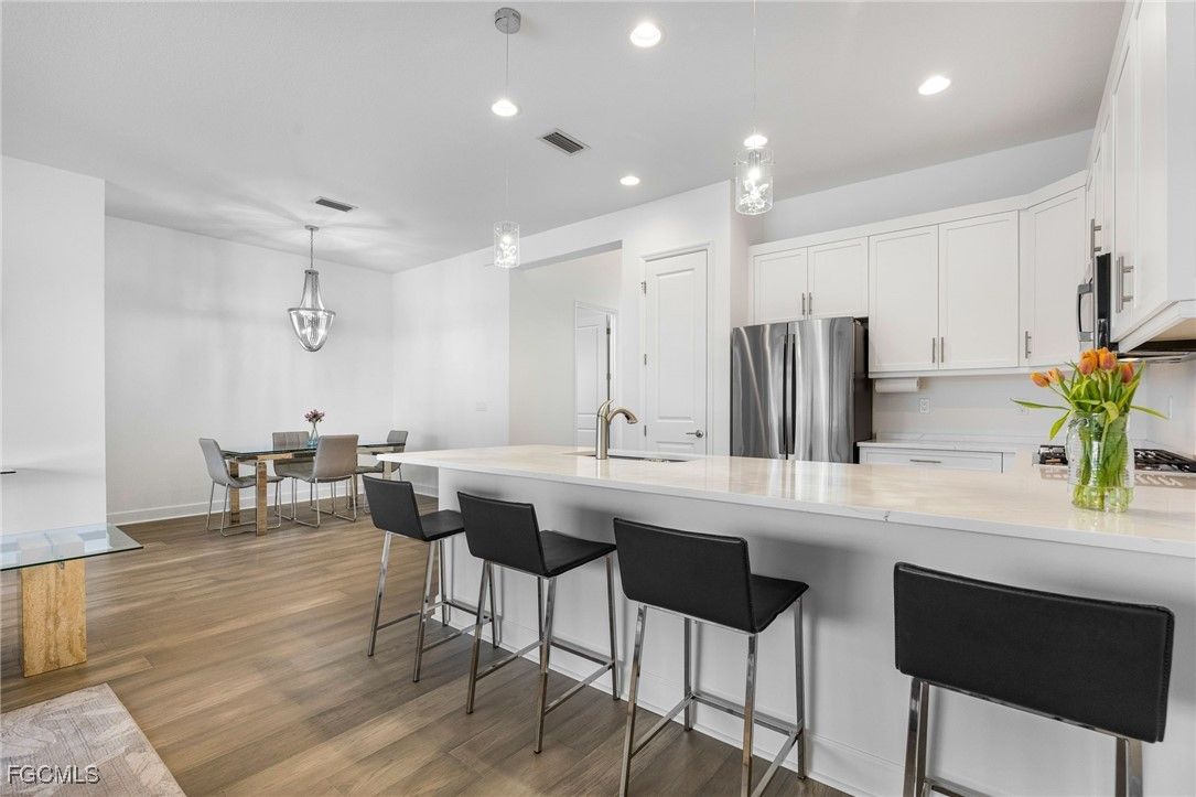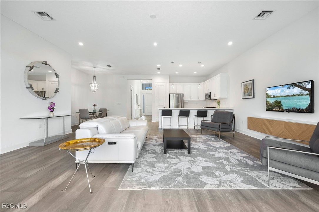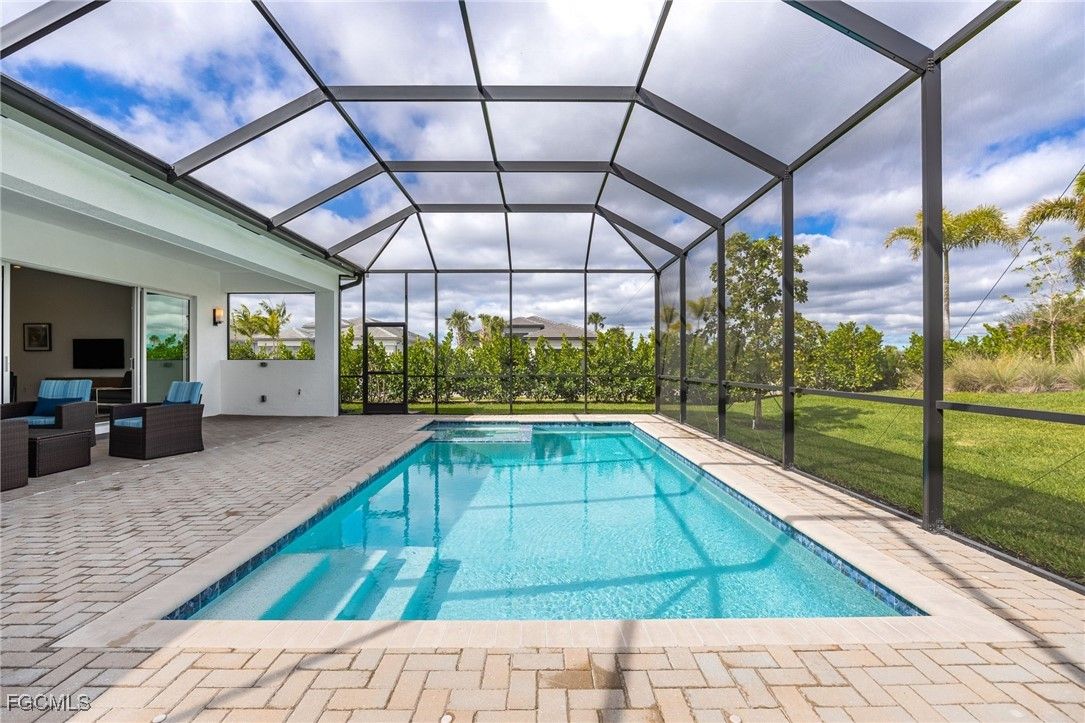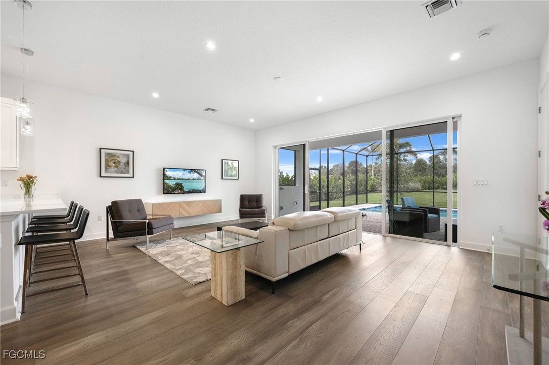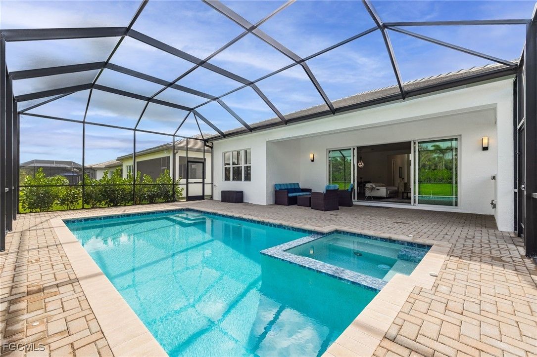 Luxury Living in Valencia Trails! Enjoy comfort and style in this brand-new, never-lived-in pool and spa home on a premium corner lot in one of North Naples’ top 55+ gated communities. Inside, an open floor plan features high-end finishes, hardwood floors in the main areas, plush carpet in bedrooms, impact windows, a spacious laundry room, and much much more! The gourmet kitchen shines with stainless steel appliances, premium cabinets, and quartz countertops. Both bathrooms offer a modern, spa-like feel. Step outside to your private backyard oasis with a gas-heated pool and spa—perfect for relaxing or entertaining while watching amazing sunsets. Valencia Trails offers resort-style living with a 43,000 sq. ft. clubhouse, 24/7 fitness center, group classes, full-service spa, restaurant, bar and grill, tennis, pickleball, bocce, dog park, multiple pools, and miles of walking and biking trails through beautiful natural surroundings. This home is at the back of the neighborhood which will be positioned perfectly near the new entrance to Vanderbilt Beach road that will be finished soon. This home is the perfect blend of luxury, comfort, and active living. Don’t miss your chance—schedule a private showing today!