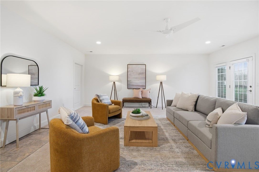 Welcome to effortless, low-maintenance living in the sought-after Readers Branch community, just minutes from Short Pump and the conveniences of premier shopping, dining, and entertainment. Thoughtfully designed and richly appointed, this Hartford Terrace model home offers an open-concept layout, tranquil water views, and refined upgrades at every turn. Step inside to an inviting foyer where hardwood floors and abundant natural light flow seamlessly through the main living spaces. The expansive main level features a formal dining room with chair rail and detailed moulding, butler’s pantry, and a serene primary suite offering both comfort and privacy. A dedicated office provides the ideal environment for working from home. The lower level includes two additional bedrooms, bathroom, a spacious bonus area, and a generous storage room, creating flexibility for guests, hobbies, or additional living space. Outdoor living shines on the oversized deck (expanded from the standard floorplan), where peaceful water views and a double-sided fireplace create the perfect setting for morning coffee or evening relaxation. Additional features such as a whole-house generator, zero-entry garage (no steps to enter into home), and fenced rear yard enhance both comfort and convenience. Situated in a vibrant community offering pickleball courts, a welcoming clubhouse, a pavillion with fireplace and swings, and scenic walking trails, this home promises a lifestyle of connection, ease, and understated luxury, in a setting that feels like a retreat every day. HOA includes lawn care, landscaping, trash and recycling. Schedule your showing today.