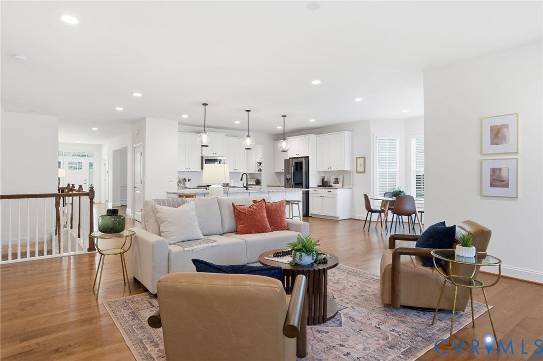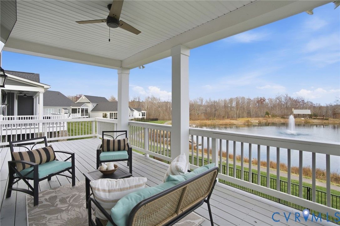 **WATERFRONT** Almost new construction, minutes to Short Pump, in low-maintenance Readers Branch community. Thoughtfully designed and richly appointed, the expansive main level features an open concept layout, tranquil water views, an abundance of natural light, along with a serene primary suite, and a dedicated office provides the ideal environment for working from home. The lower level includes two additional bedrooms, bathroom, a spacious bonus area, and a generous storage room, creating flexibility for guests, hobbies, or additional living space. Outdoor living shines on the oversized deck (expanded from the standard floorplan), where peaceful water views and a double-sided fireplace create the perfect setting for morning coffee or evening relaxation. Additional features such as a whole-house generator, zero-entry garage (no steps to enter into home), and fenced rear yard enhance both comfort and convenience. Situated in a vibrant community offering pickleball courts, a welcoming clubhouse, a pavillion with fireplace and swings, and scenic walking trails, this home promises a lifestyle of connection, ease, and understated luxury, in a setting that feels like a retreat every day. HOA includes lawn care, landscaping, trash and recycling. Schedule your showing today.