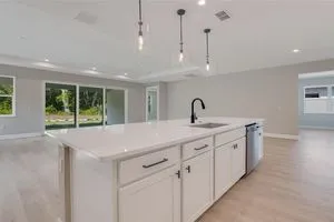 **New Construction** Step into this beautifully designed Laura model featuring 3-Bedrooms, 3-Bath, Flex Room, and complete with an expansive Bonus Room featuring its own bathroom and walk-in closet—ideal for guests, or a media room. The 3-car garage offers ample room for vehicles, storage, and hobbies. Outdoor living is a breeze with a private lanai framed by a 5-foot privacy wall, plus an extra gas drop perfect for your custom fire pit or gas grill setup. Hosting is easy with pre-wiring for a summer kitchen and full gas/plumbing rough-ins in place. Inside, the gourmet kitchen is as functional as it is stylish, featuring a split cabinet and appliance configuration. Level 2 cabinetry pairs seamlessly with sleek quartz countertops, a GE 30" cooktop, 30" under-cabinet hood, and specialized cooktop cabinet drawers—all thoughtfully arranged for optimized flow and convenience. Durable and elegant wood laminate flooring runs throughout the home, adding a warm, modern touch.
