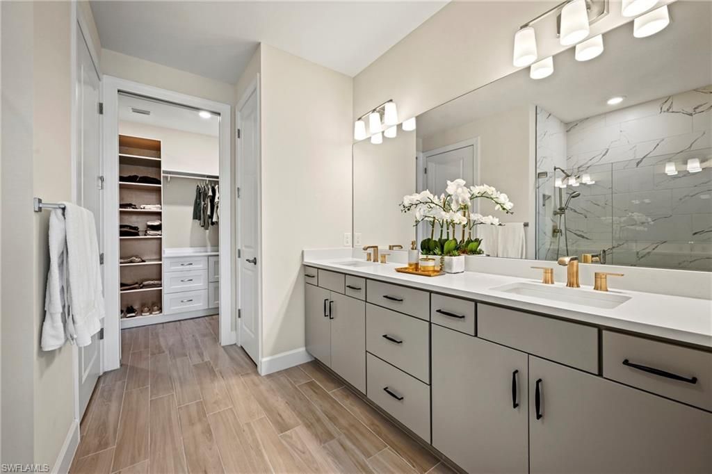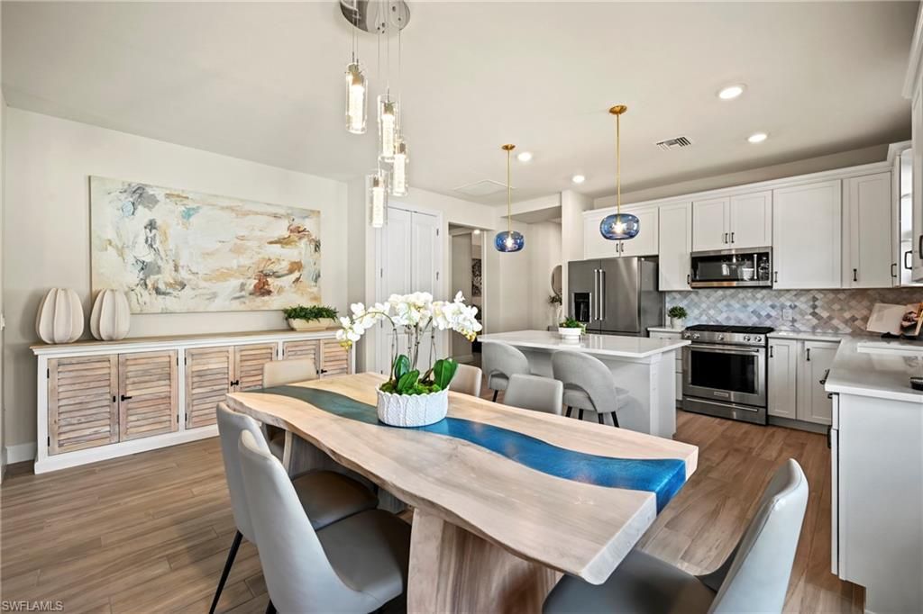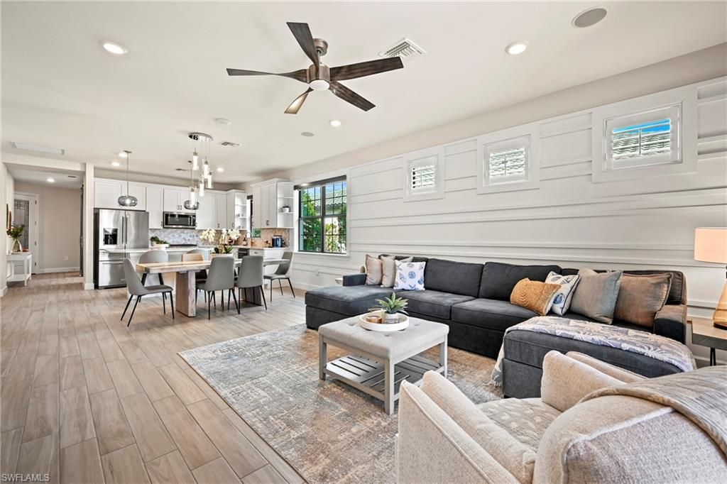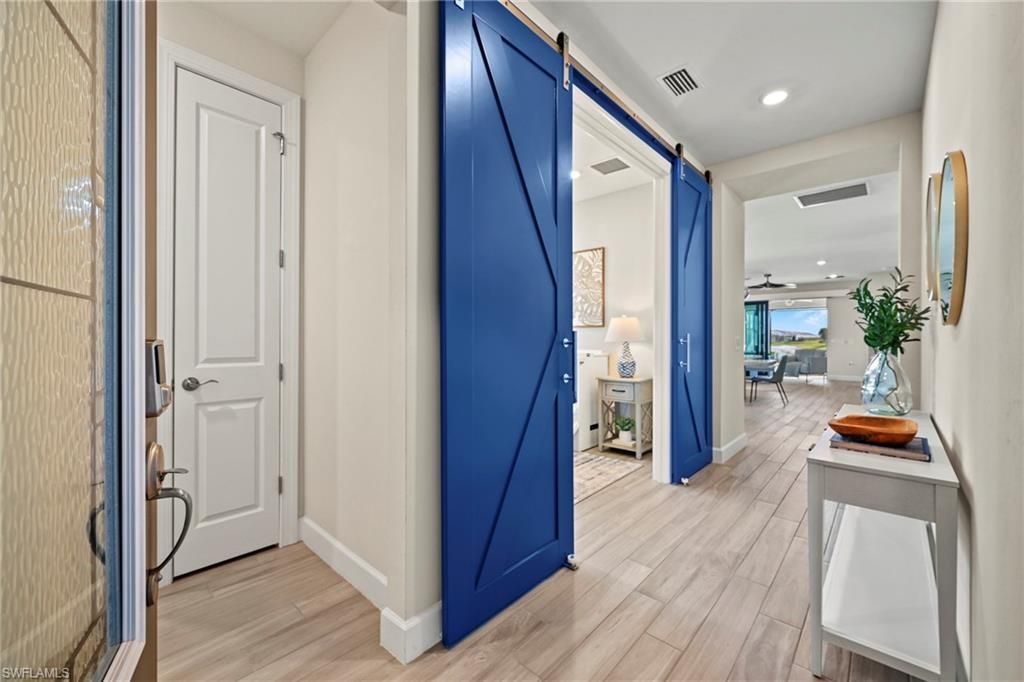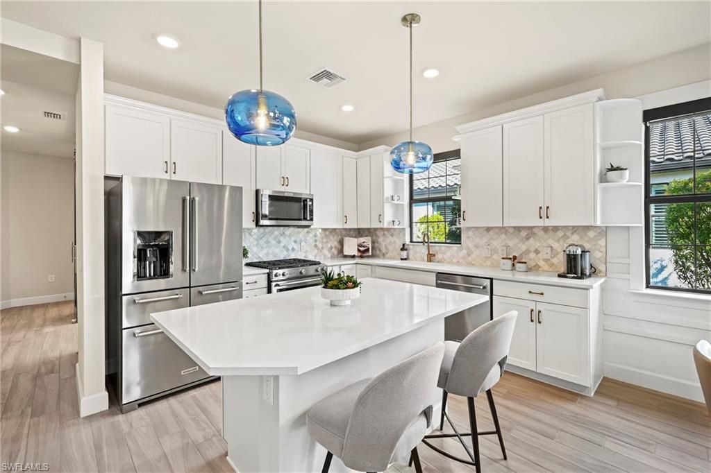 Live like you’re on vacation every day in this highly upgraded attached villa set inside one of SWFL's most desirable resort-style communities. From the moment you walk in, you’ll notice the designer feature walls in both the living room and primary suite, wood-look plank tile throughout (no carpet anywhere), custom closet organizers, and sleek electric shades on remote throughout the home. The kitchen is a showstopper with stainless appliances, statement lighting, and a layout made for entertaining.Step outside to a sunny southern-exposure pool deck featuring a sun shelf and an extended in-water bench—perfect for relaxing and soaking up the Florida lifestyle. Hurricane shutters protect the lanai furniture, while impact windows, doors, and sliders add peace of mind. The den features custom barn doors and built-in storage, and all wall-mounted TVs stay.The community delivers true resort living with a spectacular pool, the Bahama Bar and restaurant set on a peninsula surrounded by Lake Maggiore, plus tennis, pickleball, two dog parks, a playground, spa, and state-of-the-art fitness center—all just minutes to I-75, RSW, and Gulf Coast Town Center.