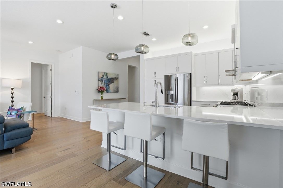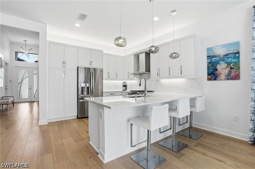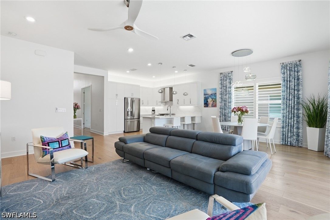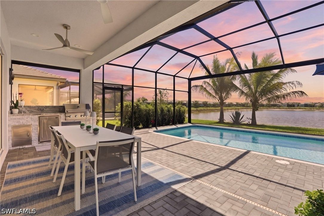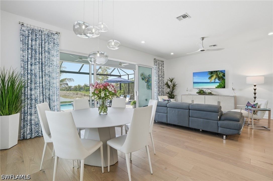 Breathtaking long lake views take center stage at 12352 Dahlia Court in Valencia Trails, setting a serene and picturesque backdrop for this beautifully designed residence in Naples’ premier 55+ luxury lifestyle community. This beautifully maintained 3-bedroom + den, 3-bath home is light, bright, and thoughtfully updated, offering a spacious open-concept layout ideal for both everyday living and entertaining. Sun-filled interiors, soaring ceilings, and elegant finishes create a warm yet sophisticated atmosphere throughout. The gourmet kitchen is the heart of the home, featuring sleek cabinetry, quartz countertops, a breakfast bar, and premium appliances—perfect for casual dining or hosting gatherings. The adjoining living and dining areas flow seamlessly to the outdoor space, enhancing the home’s inviting feel. Step outside to your private screened-in lanai, complete with a sparkling in-ground pool and stunning long lake views—an ideal setting for entertaining guests or relaxing in the Florida sunshine year-round. The luxurious primary suite offers a peaceful retreat with a spa-inspired bathroom and generous closet space. Two additional guest bedrooms and a versatile den provide flexibility for visitors, a home office, or hobby space. Located within Valencia Trails, residents enjoy access to world-class amenities including a resort-style clubhouse, pool, fitness center, tennis and pickleball courts, on-site dining, and a vibrant social calendar. Light-filled, move-in ready, and designed for entertaining—this exceptional home offers the very best of Naples luxury living.