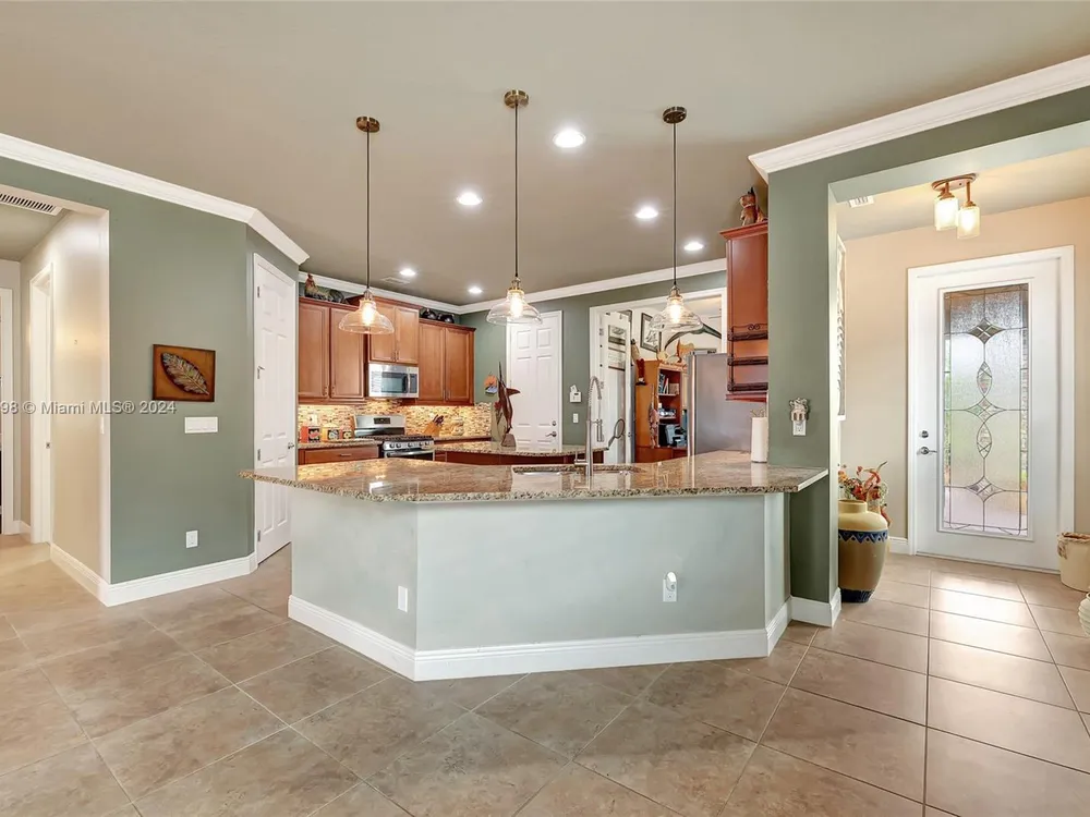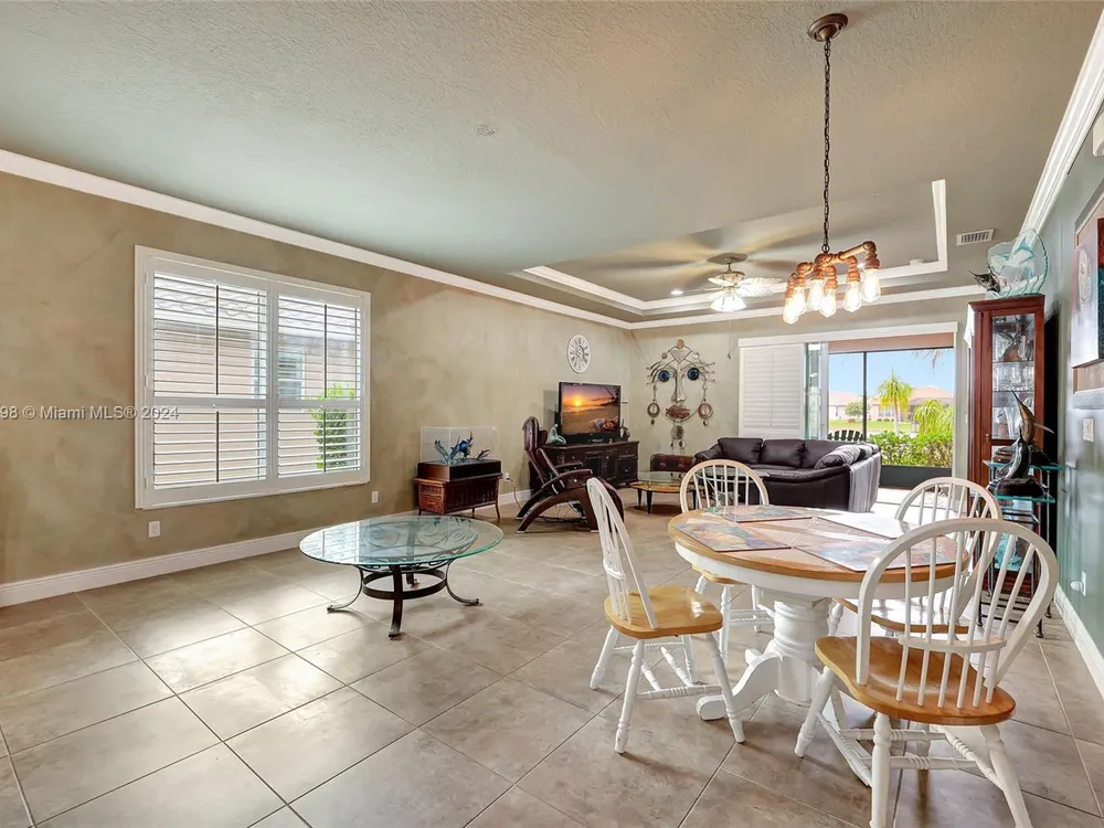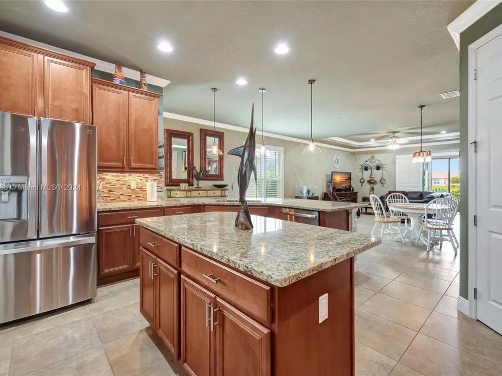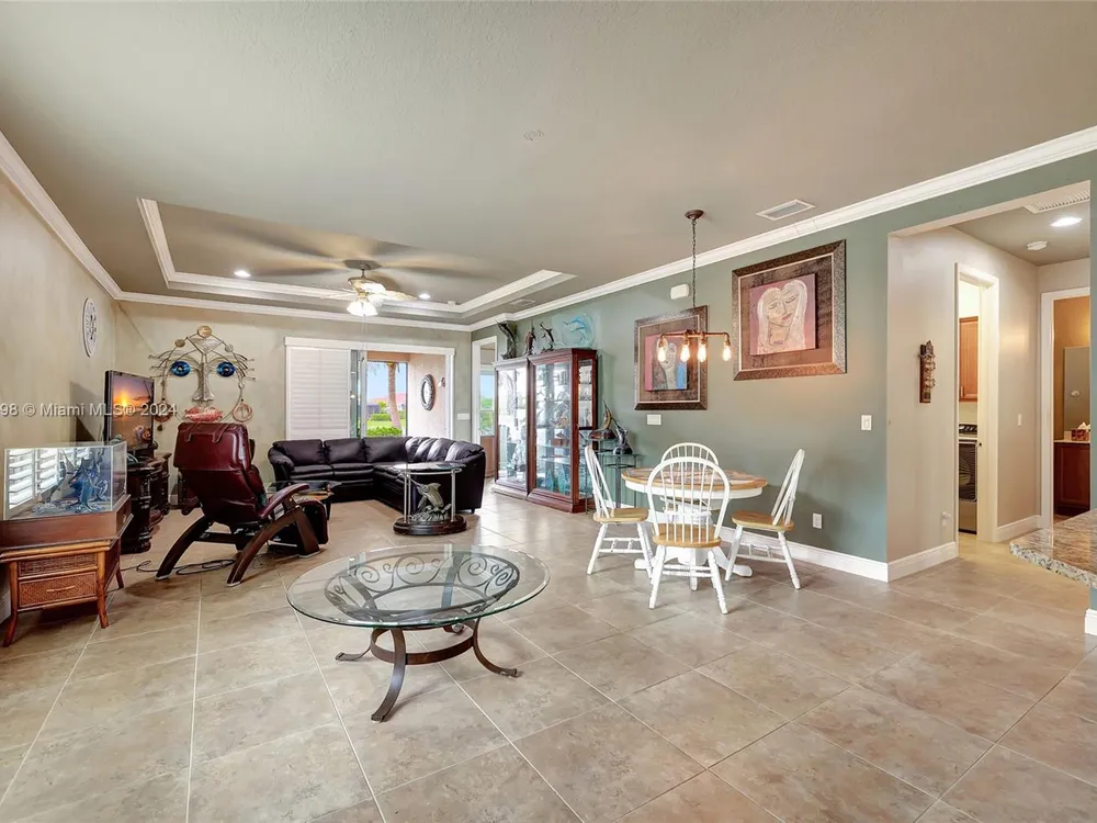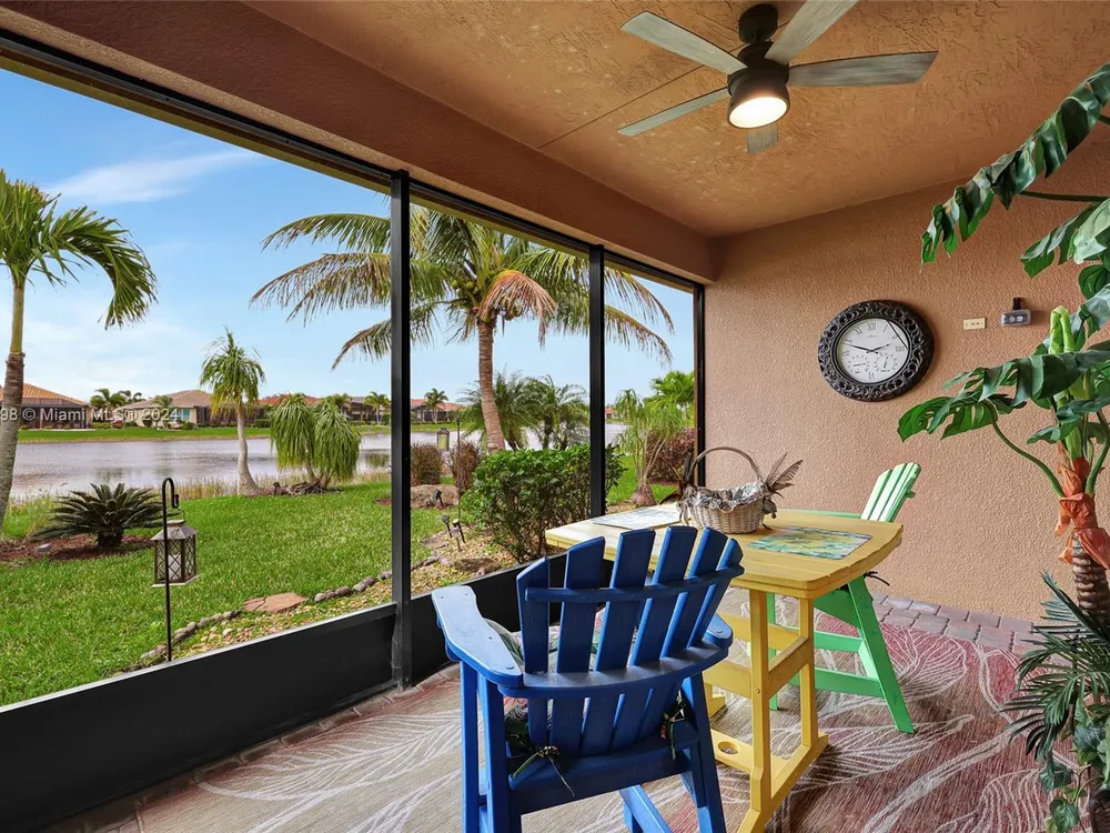 Lucky two; two bedrooms, two full bathrooms, two car garage plus a Den and center lake view. Tastefully designed kitchen featuring granite countertops, tall cabinets and large island with a sink, enhancing the functionality of the space. Black and silver appliances contribute to the modern aesthetics of the kitchen. Tastefully designed living room offering a serene and comfortable atmosphere. The flooring below consists of elegant tiles, further complimenting the room's interior design. Nestled in Port St. Lucie, Vitalia at Tradition presents a prime location; offering convenient access to essential amenities and local attractions. Residents benefit from the proximity of major retailers, healthcare facilities, abundance of Outdoor Spaces, restaurants, shops, and bars.