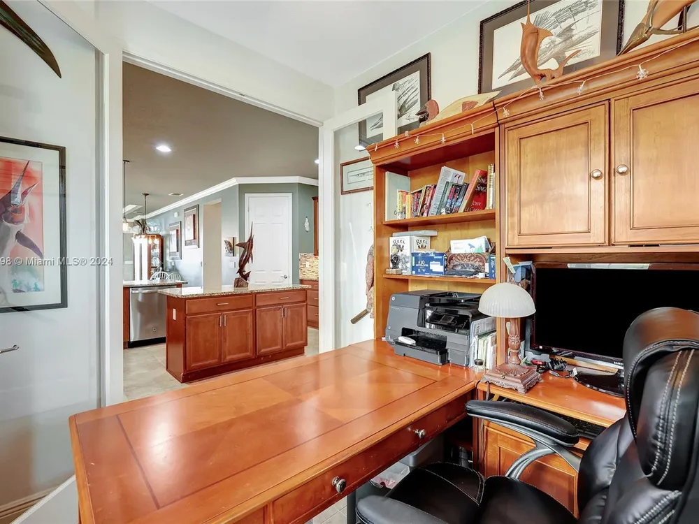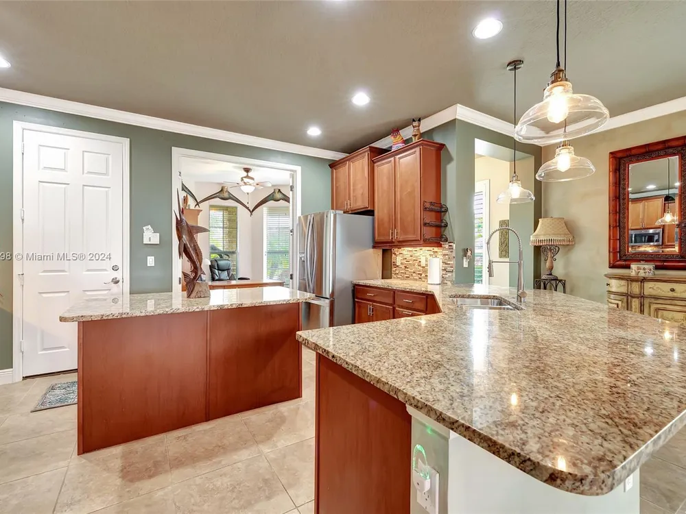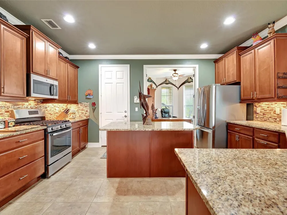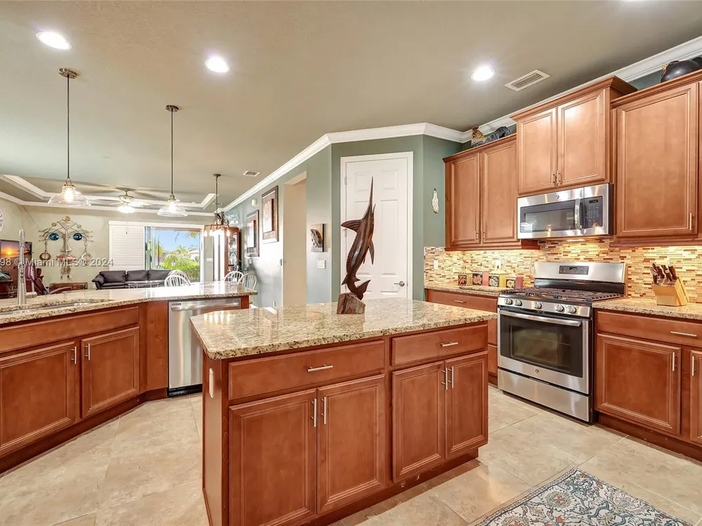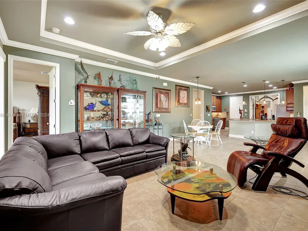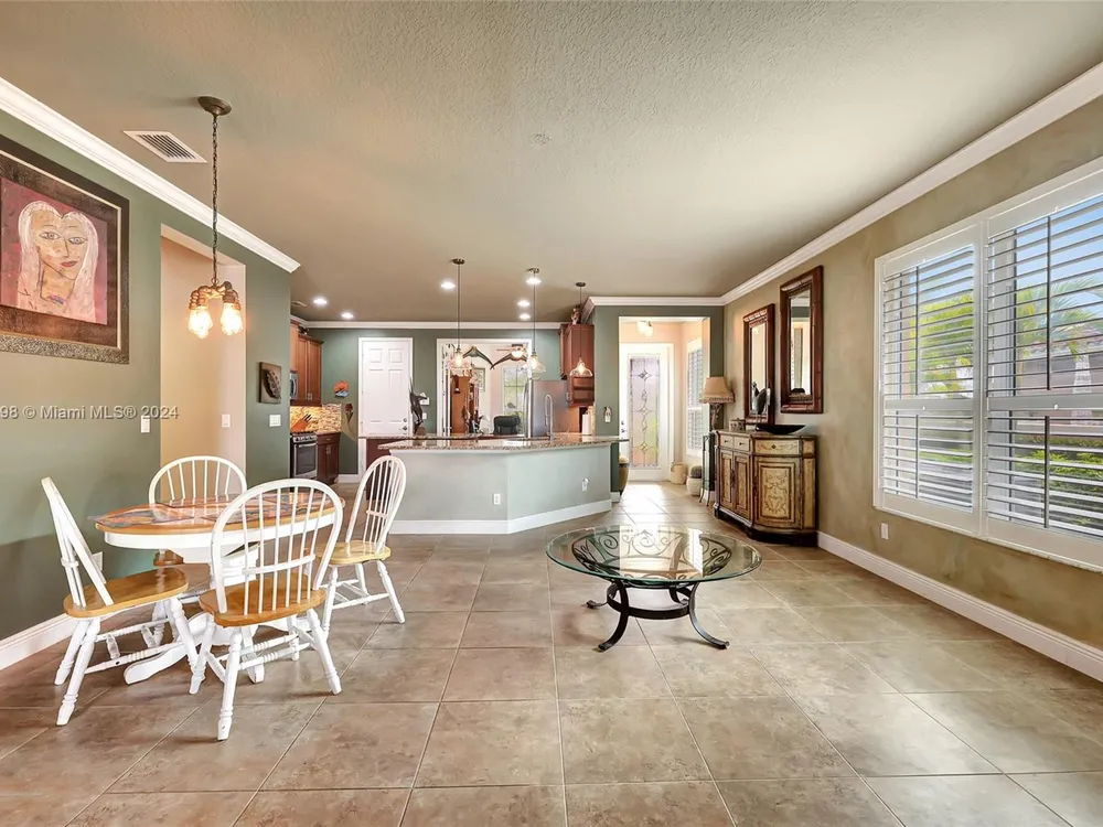 Lucky two; two bedrooms, two full bathrooms, two car garage plus a Den and center lake view. Tastefully designed kitchen featuring granite countertops, tall cabinets and large island with a sink, enhancing the functionality of the space. Black and silver appliances contribute to the modern aesthetics of the kitchen. Tastefully designed living room offering a serene and comfortable atmosphere. The flooring below consists of elegant tiles, further complimenting the room's interior design. Nestled in Port St. Lucie, Vitalia at Tradition presents a prime location; offering convenient access to essential amenities and local attractions. Residents benefit from the proximity of major retailers, healthcare facilities, abundance of Outdoor Spaces, restaurants, shops, and bars.