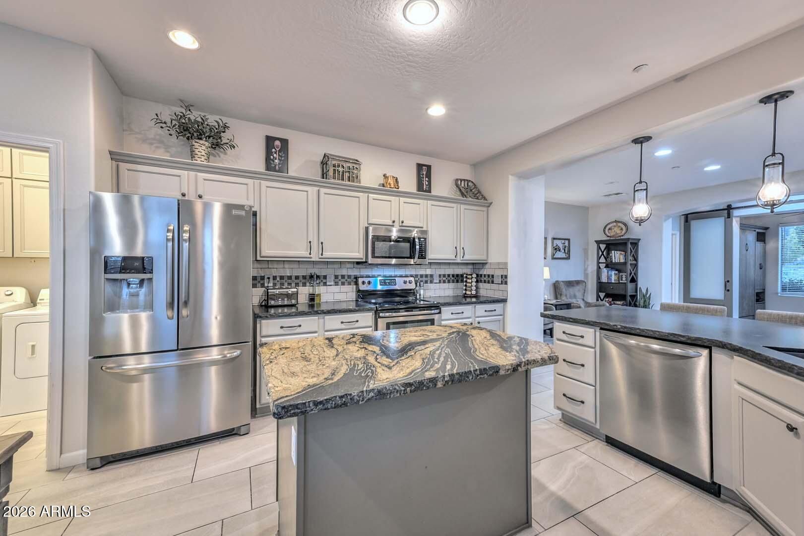 - Dryer, Washer, Water Softener Owned, Reverse Osmosis, Refrigerator, Built-in Microwave, Dishwasher, Disposal, Electric Range