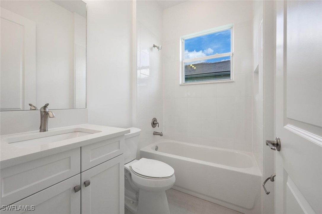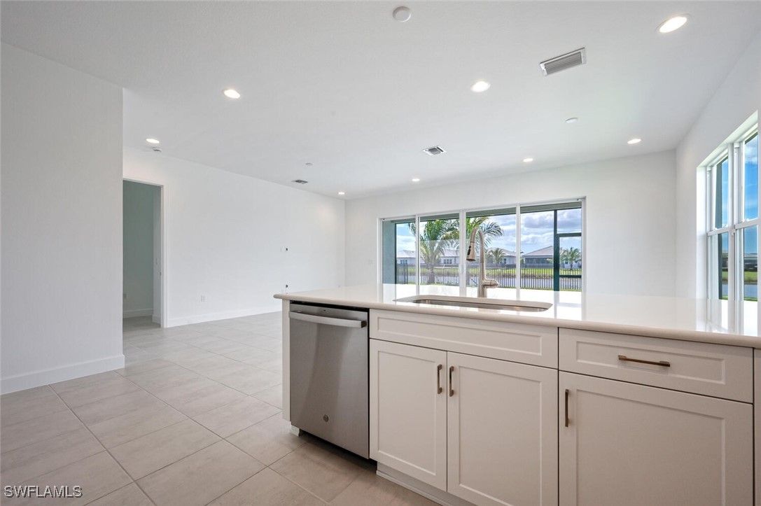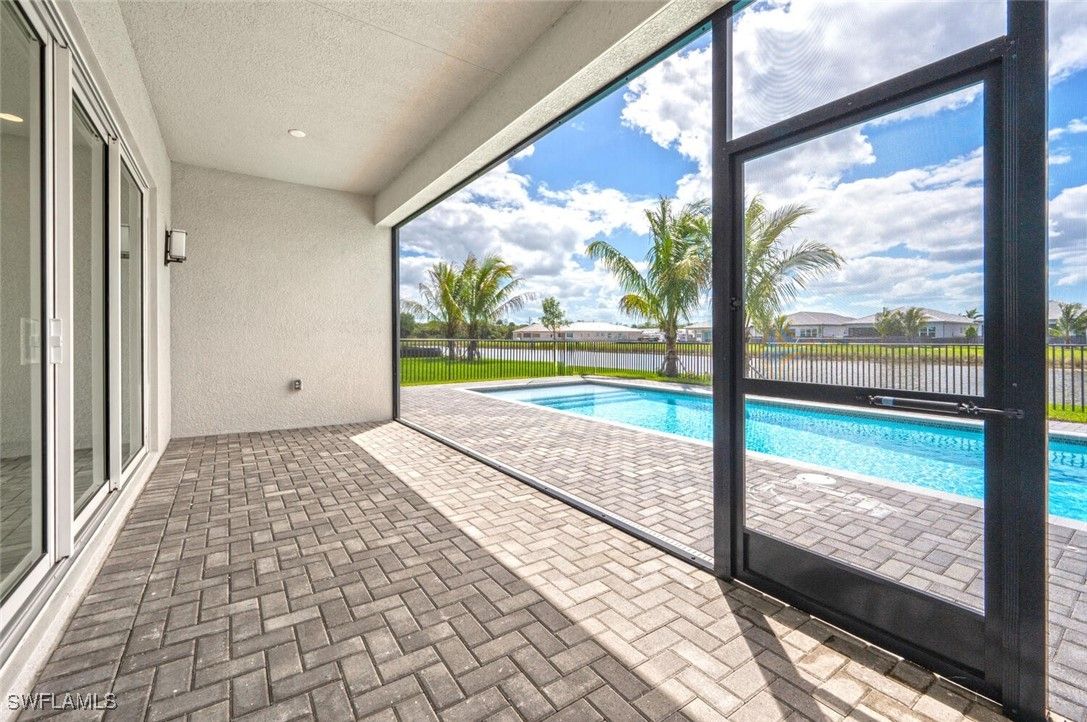 Stunning Pelican Model Home in the highly sought-after Valencia Trails, a premier 55+ community in Naples known for its resort-style amenities and vibrant lifestyle. This elegant residence offers 3 bedrooms plus a den with a window, 3 full bathrooms, and a 2-car garage, all overlooking a beautiful direct lake view with a private pool. Equipped with GE stainless steel appliances, quartz countertops, and white cabinetry. Built with quality concrete block construction, the home features hurricane-impact windows and doors and is located in Flood Zone X, offering minimal flood risk. Over $100,000 in upgrades enhance this home’s appeal, including: Tile flooring throughout (no carpet); Laundry room with cabinets and utility sink; Pre-installation package for an outdoor summer kitchen; Heated private pool with lake view; Wine cooler and upgraded lighting package. Enjoy low maintenance fees and access to world-class community amenities at the Valencia Trails Clubhouse, including: 8 Pickleball Courts, 6 Tennis Courts, and a Bocce Court; Resort-style Swimming Pool, Family Pool, Pressure Walking Pool, and 2 Hot Spas; Fire Pit, Restaurant, Bar, and Ballroom; Fitness Center, Spa Salon, Arts & Cooking Rooms; Game Room, Card Rooms, and miles of Walking Trails.