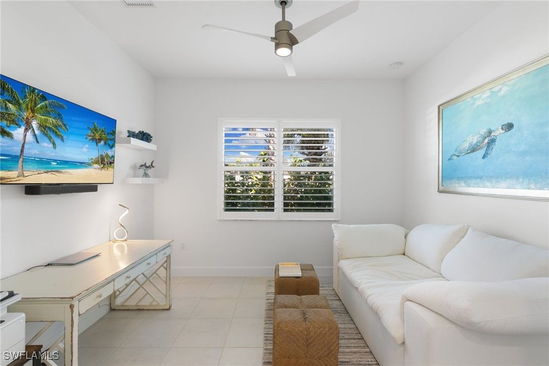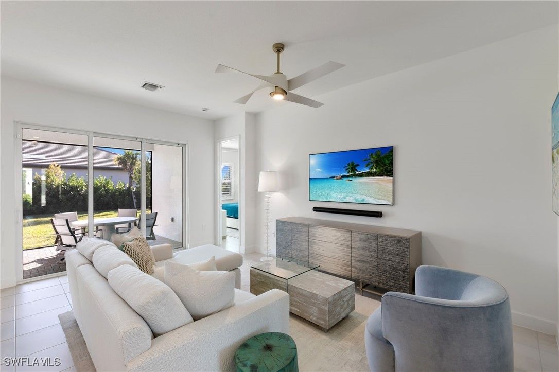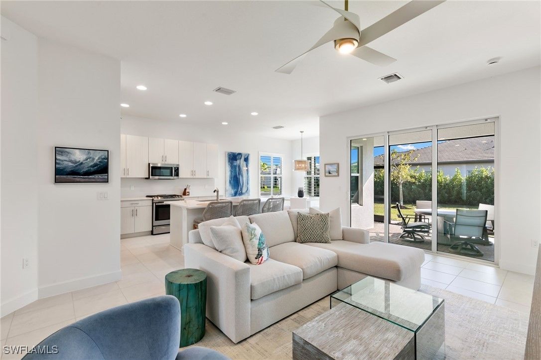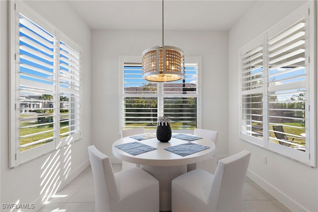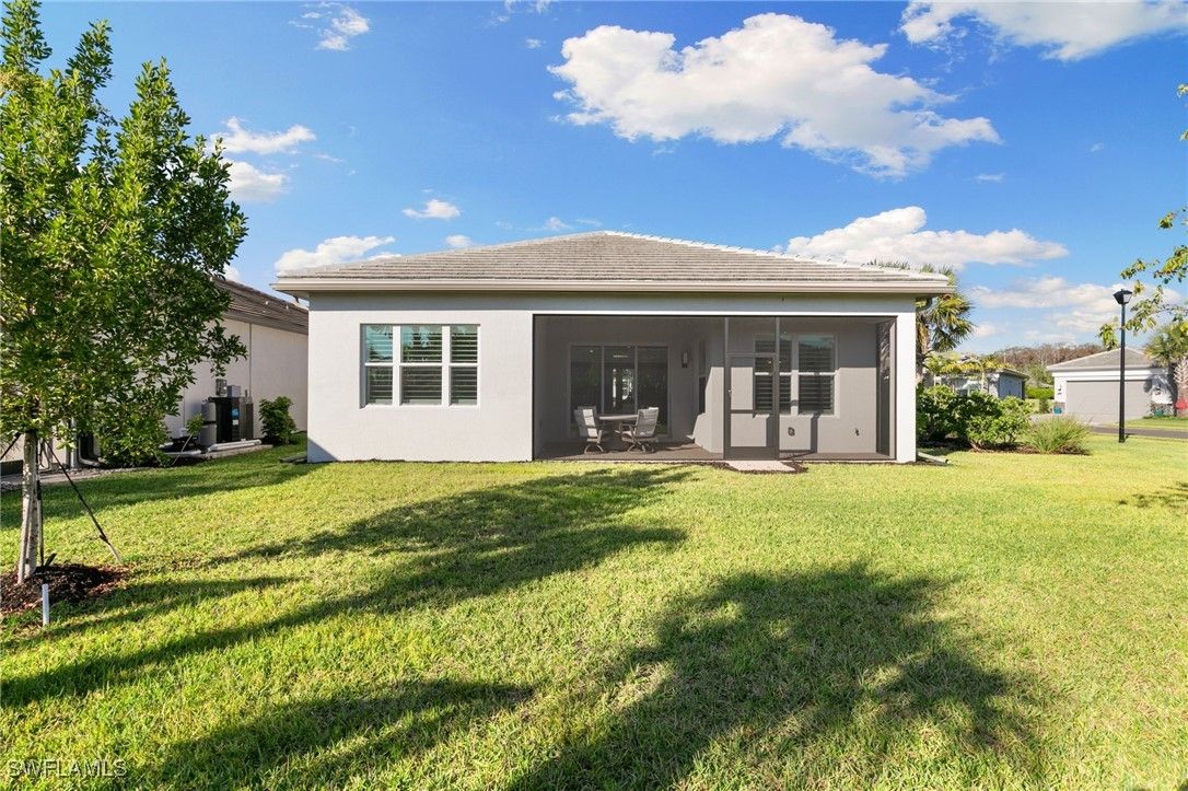 Discover refined luxury in this stunning "Sandpiper" floor plan home at 12372 Dahlia Court, located within the prestigious gated 55+ community of Valencia Trails in North Naples, Florida. Boasting approximately 1,660 square feet of elegantly appointed living space, this 2-bedroom + den, 2-full-bathroom residence offers the perfect blend of sophistication, comfort, and modern upgrades on an exceptional Southern facing corner lot. Step inside to an open, light-filled interior featuring seamless tile flooring throughout—no carpet in sight—for effortless maintenance and timeless appeal. Plantation shutters grace the windows, adding a touch of natural light to beam throughout while providing privacy and light control. All closets and cabinets have been meticulously upgraded for superior organization and style, complemented by contemporary lighting fixtures and ceiling fans that elevate every room. The heart of the home is designed for both relaxation and entertaining, with a versatile den ideal for a home office, hobby space, or guest overflow. Enjoy peace of mind with full impact-resistant windows and doors, a whole-home Generac generator for uninterrupted power, and a smart thermostat for energy-efficient climate control. Outside, this premium corner homesite shines with a spacious backyard nearly akin to a double lot—perfect for creating your private oasis, whether adding a custom pool, lush landscaping, or expansive outdoor living area. The oversized driveway provides ample parking, while the 2-car garage features a durable epoxy floor finish for a polished, low-maintenance space. Residents of Valencia Trails indulge in a resort-style lifestyle centered around a magnificent 43,000-square-foot clubhouse, complete with a full-service restaurant and bar, state-of-the-art fitness center, social halls, arts studios, and a vibrant calendar of events. Outdoor amenities abound, including multiple pools (resort-style, lap, and resistance), a dedicated racquet club with tennis and pickleball courts, bocce, walking trails, and more—all set amidst beautifully landscaped grounds. Conveniently located just minutes from pristine Gulf beaches, world-class dining, shopping, and golf, this home offers the ultimate in Southwest Florida living. Experience the pinnacle of active adult luxury—schedule your private showing today!