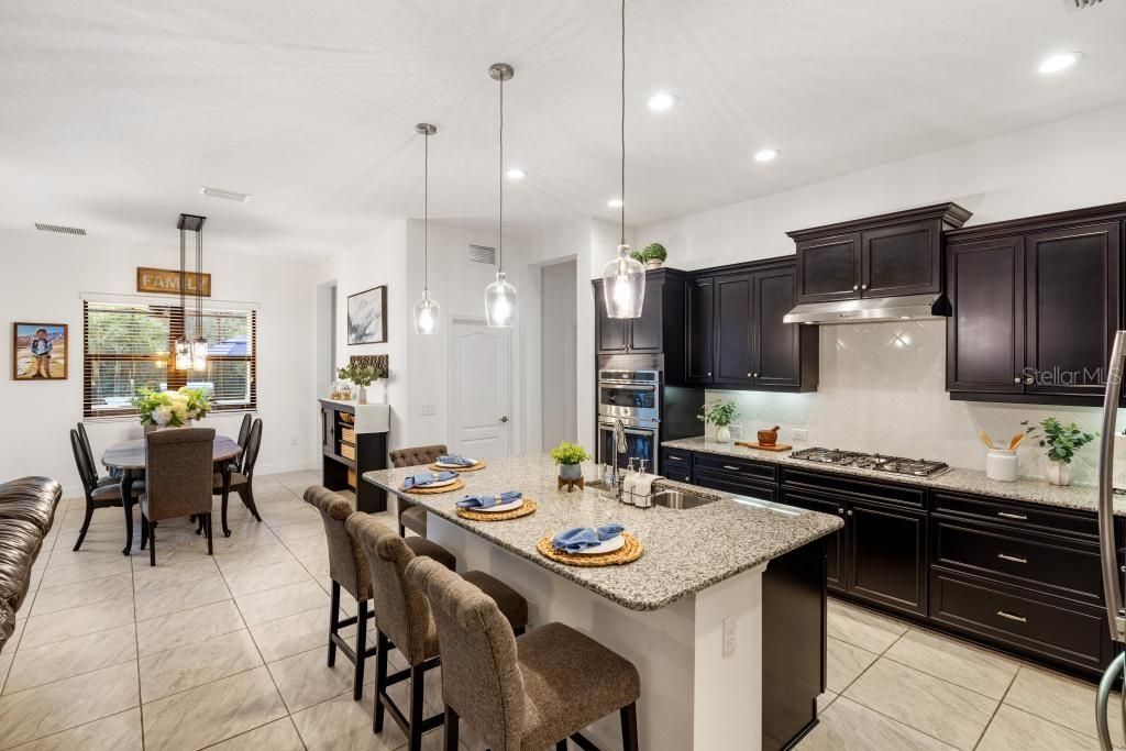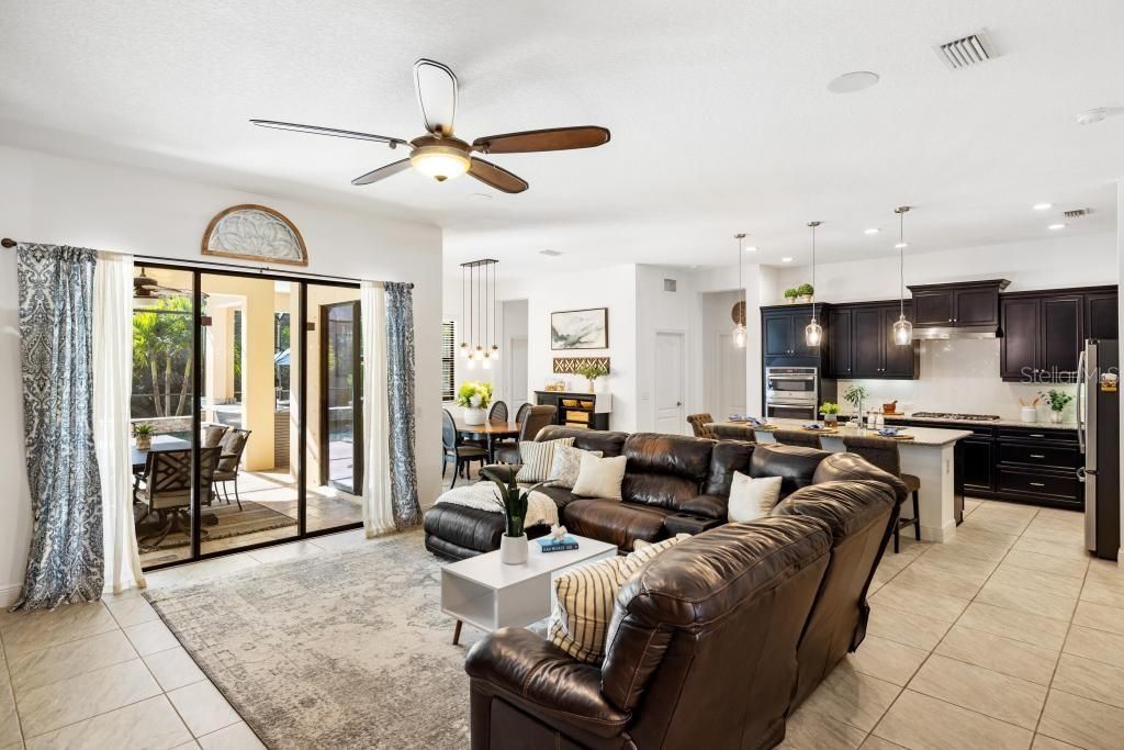 SPACIOUS, VERSATILE, RESORT-STYLE living in this Neal Communities Seabrook home! Featuring an X-FLOOD ZONE, SALTWATER POOL & SPA, and a rear SOUTHERN EXPOSURE backyard with an OUTDOOR KITCHEN that provides all day sun, ideally located near the main amenity campus in Grand Palm. This five-bedroom four-bathroom home includes a den/club room, a three-car garage, and a rare second-floor in-law suite complete with a built-in kitchenette, living area, bedroom, and full bathroom, making it ideal for multigenerational living or extended guests. The open great room showcases expansive sliding glass doors with wide views of the heated saltwater pool, outdoor kitchen installed in 2021, and private preserve backdrop, while the dining area and club room each offer additional direct access to the lanai for seamless indoor-outdoor living. The chef’s kitchen features stainless steel appliances, a gas range, in-wall ovens, granite countertops, under-cabinet lighting, abundant cabinetry, and a large granite center island with seating for six. A spacious pantry and laundry room combination provides exceptional organization, along with additional storage thoughtfully tucked beneath the staircase. The primary suite offers tranquil pool and preserve views, dual walk-in closets, and an additional linen closet. The great room includes built in surround sound and a discreet in floor electrical outlet that allows flexible furniture placement without visible cords. Additional highlights include ceramic tile and carpet flooring, hurricane shutters, exterior landscape lighting, paver driveway, gutters, fresh mulch, and a thoughtfully designed two story layout with distinct living and entertaining spaces throughout. Built in 2018, this home delivers space, privacy, and functionality in one of Venice’s most sought after resort style communities.