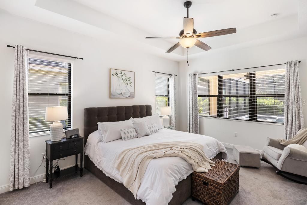 - Built-in Features, Eat-in Kitchen, High Ceilings, Kitchen/Family Room Combo, Living/Dining Room, Open Floorplan, Main Level Primary, Split Bedrooms, Stone Counters, Thermostat, Tray Ceiling(s), Walk-In Closet(s), Wet Bar, Window Treatments