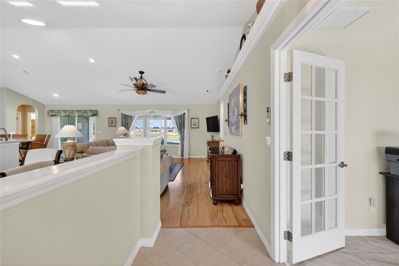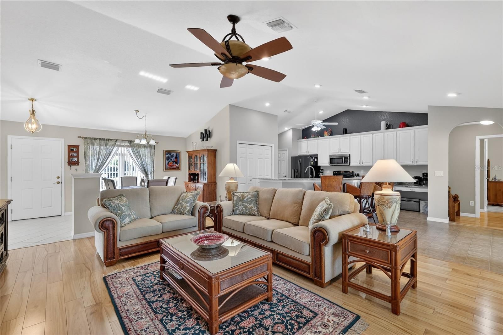 ABSOLUTELY STUNNING GOLF COURSE HOME with SPECTACULAR VIEWS of the #5 & #6 GREENS and a POND VIEW AS WELL!!!!! THIS CEDAR 2/2 Model with a DEN and BONUS ROOM boasts a NEUTRAL COLOR PALETTE throughout.The KITCHEN has BEAUTIFUL GRANITE COUNTERTOPS, WHT 42" CABINETS,VINYL FLOOR, UPDATED APPLIANCES-(including a DOUBLE OVEN /CONVECTION MICROWAVE ), PANTRY, AND COAT CLOSET.There are NO CARPETS in this HOME.The DEN has a MINI SPLIT for extra COMFORT.The LIVING AREAS are OPEN CONCEPT and have DURABLE LAMINATE FLOORING. The LARGE MASTER BEDROOM has VIEWS of the GOLF COURSE and a SLIDING GLASS DOOR onto the ENCLOSED LANAI. The MASTER BATHROOM features a DOUBLE VANITY, COMFORT TOILET,TILED SHOWER AND LARGE WALK-IN CLOSET. The GUEST BEDROOM has VIEWS of the GOLF COURSE and access to a PATIO via a SLIDING GLASS DOOR.The BONUS ROOM has a BUILT IN DESK w/SHELVES and a CLOSET. The LANAI is ENCLOSED with LOW-E DOUBLE PANE WINDOWS and the VIEW is MAGNIFICENT.The 2- CAR GARAGE with a GOLF CART GARAGE is generous in SIZE and has WIFI GARAGE DOOR OPENERS,GARAGE SCREENS, SINK and WALL CABINETS. OTHER FEATURES INCLUDE: 2-HVAC UNITS-(2018)~HOME WAS PAINTED OUTSIDE -(2025)~ROOF-(2022)~40 GALLON HT WT HEATER-(2017)~ENCLOSED LANAI (2024)~VIDEO DOORBELL~ 8-SECURITY CAMERAS~HONEYWELL ALARM SYSTEM~WIFI THERMOSTATS ~ SOLAR TUBE, 2-ATTIC ACCESSES~ELECTRIC PANEL W/HOUSE SURGE PROTECTION~ ELECTRIC PANEL IS WIRED FOR A GENERATOR(PORTABLE GENERATOR NOT INC)~HOT WATER RECIRCULATION PUMP~FIRE PROOF WALL SAFE~2 HIGH DEFINITION TV'S.You will find Easy Access by Golf Cart to GOLF, SHOPPING, and RESTAURANTS!!!! DON'T WAIT, CALL TODAY TO SEE THIS WONDERFUL HOME and BEGIN LIVING IN THIS AWESOME 55+ COMMUNITY!!!!!