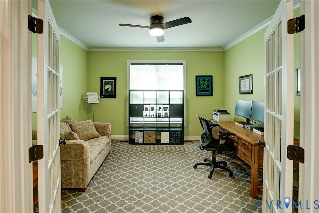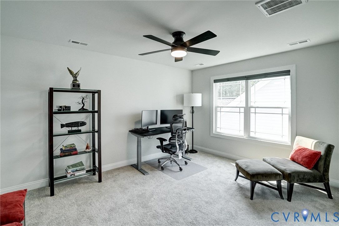 BETTER-THAN-NEW Craftsman Beauty in sought-after GOOCHLAND community of READERS BRANCH, located only 10 minutes from Short Pump. This Open Floor Plan offers both a FIRST FLOOR PRIMARY SUITE plus an ADDITIONAL FIRST FLOOR BEDROOM. Working from home? Then you'll love the FIRST FLOOR OFFICE with French doors (which could easily serve as a FORMAL DINING ROOM due to the proximity of the Kitchen...your choice! The GOURMET KITCHEN will thrill the home chef with its ABUNDANCE OF CABINETRY, large pantry, beautiful QUARTZ COUNTERS, stainless appliances, over-sized ISLAND/BREAKFAST BAR, and SUNNY DINING AREA. The Kitchen is open to the Great Room which features a COZY GAS FIREPLACE, lots of natural light, and a great VIEW OF THE WOODLANDS. The Primary Suite is GENEROUS and also offers TRANQUIL WOODLAND VIEWS, a Spa-like Bath with an AMAZING OVER-SIZED TILED SHOWER and a 10'7' x 9'2" walk-in closet with a door that accesses the Laundry Room. Need a 2nd Office? Worry not. On the 2nd floor you'll find a LARGE DEN plus a 10 x 8 UNFINISHED ROOM, presently used as WALK-IN STORAGE. Also on the 2nd floor are Bedroom # 3 and a nearby Full Bath. Your lawn care is provided by the HOA so you'll have free time to enjoy a friendly gathering on the INVITING BACK PORCH or just some QUIET TIME at the end of a busy day. You'll appreciate the attached 2-car Garage and DOUBLE-WIDTH PAVED DRIVE! You'll love the COMMUNITY AMENITIES including the clubhouse, lake, walking trails, gazebo, firepit, picnic area and pickleball courts with restrooms. All This PLUS EASY ACCESS to major highways, shopping, restaurants, recreation, and SO MUCH MORE!