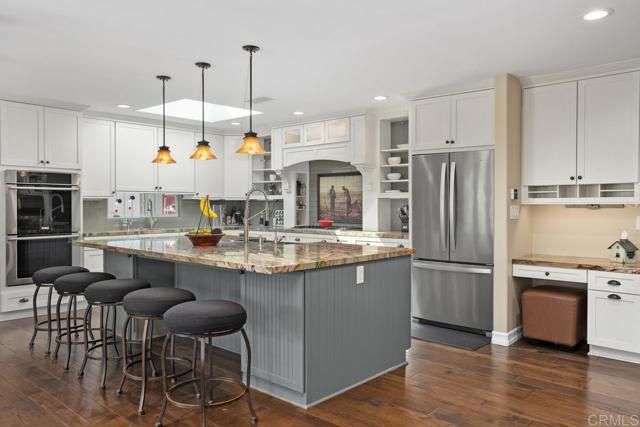 HUGE PRICE IMPROVEMENT!!! Welcome to your new home in Beautiful Lake San Marcos. This family-owned and renovated gem sits on the 4th hole of The Links at Lakehouse Golf Course. Enjoy the scenery from a renovated backyard with a custom-built waterfall nestled against a putting green. Relax under your custom patio and retreat into a redesigned open floorplan interior with natural light pouring through skylights and Solatubes. The great room boasts an upgraded gourmet kitchen with beautiful Quartzite countertops, plenty of cabinet storage, 5-burner stove, double oven, a prep sink with instant hot water faucet, a butler’s pantry and a spacious laundry room all overlooking the golf course through two French doors. The primary bedroom suite features a custom designed bathroom with a walk-in shower, oversized soaking tub, walk-in closet and a sliding door to the back yard patio. Two additional spacious bedrooms and a bathroom complete this move-in ready home. All renovations completed with the utmost selection of quality products by the homeowners to last the test of time. Come see how this home can transform your lifestyle into a daily retreat of comfort and tranquility. Too many upgrades to capture in pictures. EXTERIOR UPGRADES (>$110,000) 200 AMP electrical panel, 50 Year Roof (2021), Gutters, Hardscaped Front Yard, water wise landscaping, sitting porch with privacy wall and open beam patio front cover, redesigned back yard with Turf, putting green, waterfall, retaining block planters, and solid wood high beam covered patio, INTERIOR UPGRADES(>$100,000) Hardwood Floors throughout, Raised Ceiling in Great Room, tankless hot Water Heater, Newer HVAC, Insulation in walls and Attic, ABS water lines and copper sewer plumbing, Lighted Ceiling Fans, 3 skylights and 4 solatubes throughout the home. KITCHEN UPGRADES (>$90,000) Total redesign of original kitchen layout with added prep sink with instant hot water, butlers pantry, addition of an interior laundry room. Premium “Fusion” quartzite countertops with a large island and bar set up. BATHROOM UPGRADES (>$70,000) Both bathrooms remodeled with spa-like showers, jetted tub, new vanities, deluxe medicine cabinets, brilliant lighting and a walk-in closet in the Master Bath.