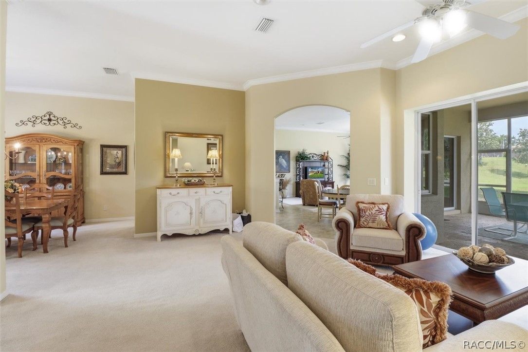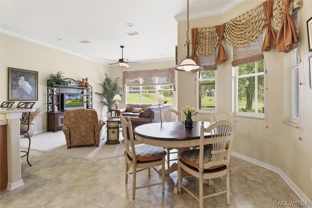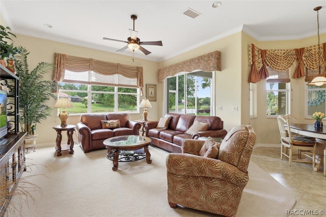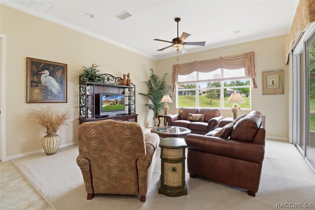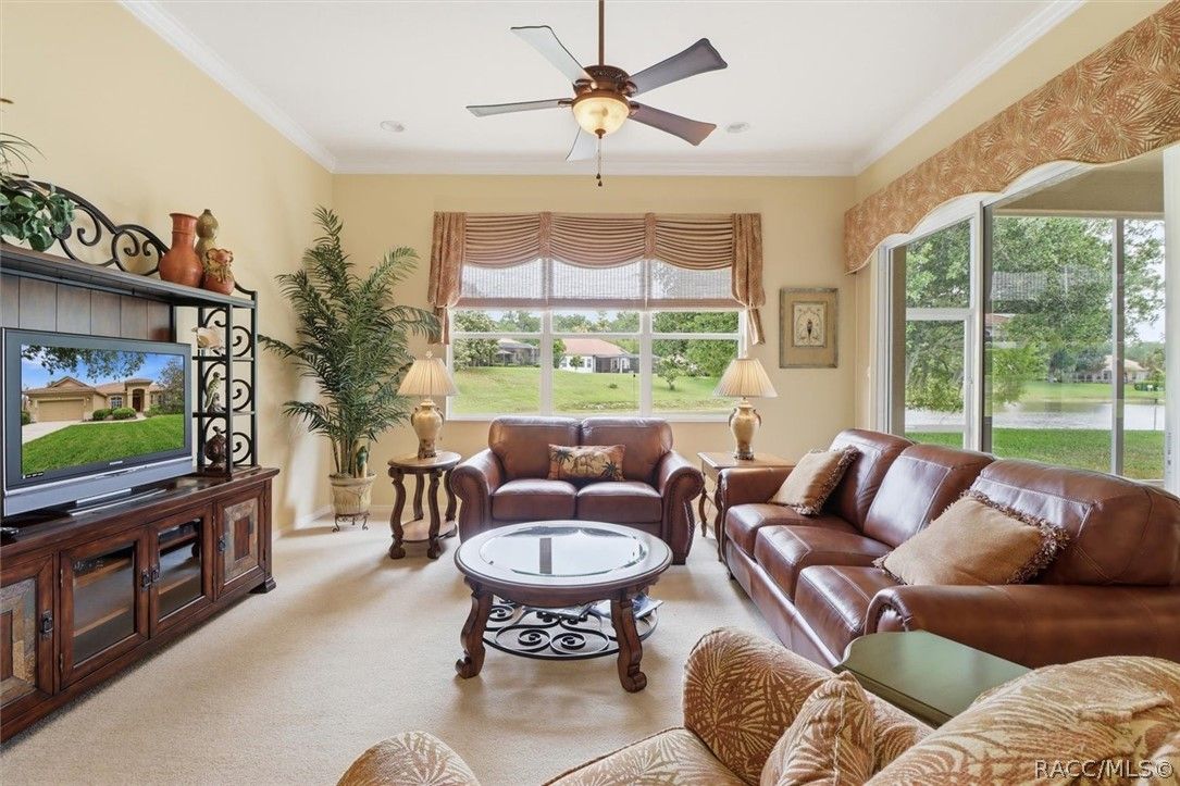 LIVE THE FLORIDA LIFESTYLE IN TERRA VISTA—where golf course living, scenic pond views, and resort-style amenities come together at 1239 W Beagle Run Loop. This well-maintained 3-bedroom, 2-bath home offers 2,338 square feet of living space and sits on an oversized 0.38-acre lot, providing both room to spread out and peaceful views that can be enjoyed from inside the home and while relaxing on the screened-in lanai. Step inside to find high ceilings that enhance the open and airy feel, along with a thoughtfully designed layout that flows comfortably for everyday living and entertaining. Natural light fills the living spaces, creating a warm and inviting atmosphere throughout. The kitchen is both functional and inviting, featuring a central island that provides additional storage and extra space for meal prep, making it great for cooking and gathering. The primary suite is designed for comfort and relaxation, featuring a tray ceiling, a spacious walk-in closet, and a well-appointed bathroom complete with a double vanity, step-in shower, and a soaking tub. The screened-in lanai provides a comfortable space to enjoy Florida living year-round, whether you’re sipping your morning coffee or winding down in the evening while overlooking the tranquil pond. The home is topped with a tile roof, known for its durability and long lifespan. Tile roofs are commonly found in Florida due to their ability to hold up well in heat and harsh weather conditions, while also offering energy efficiency and a distinctive architectural look. Living in Terra Vista means enjoying a lifestyle centered around exceptional amenities. Residents have access to a championship golf course with scenic fairways, a clubhouse, resort-style pool, fitness center, spa, tennis courts, walking trails, and a full calendar of social activities. Conveniently located near shopping, dining, and the natural beauty of Citrus County, this home offers an incredible opportunity to enjoy life in one of the area’s premier gated communities.