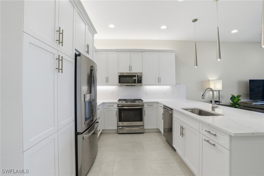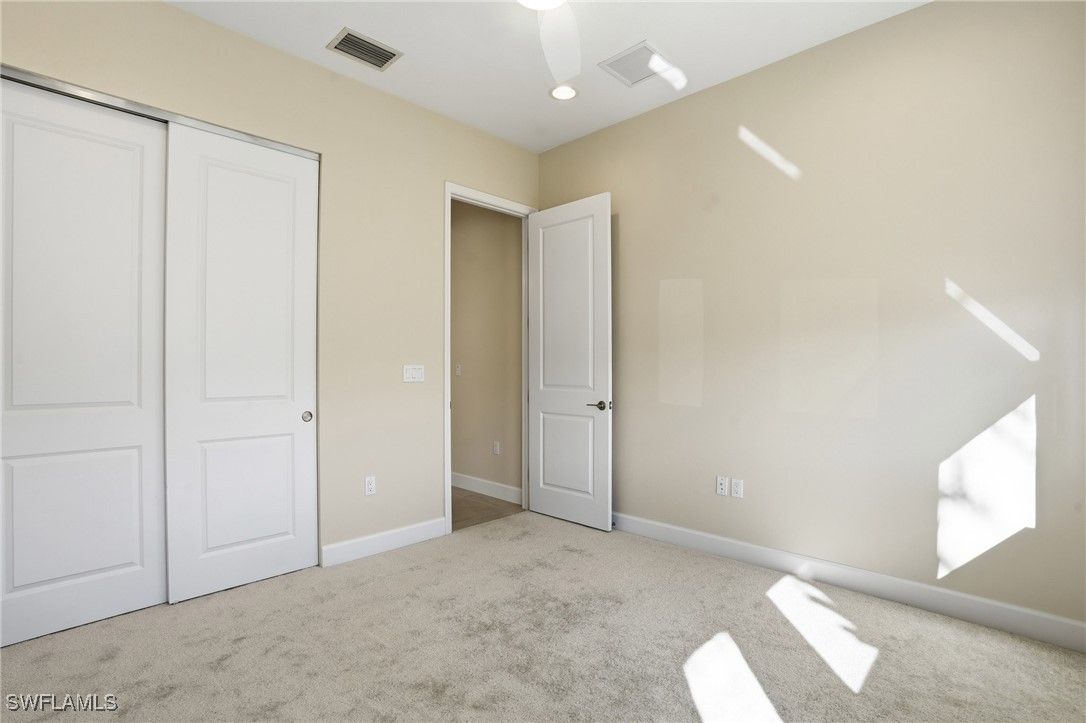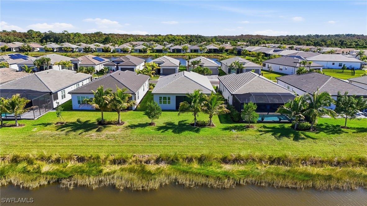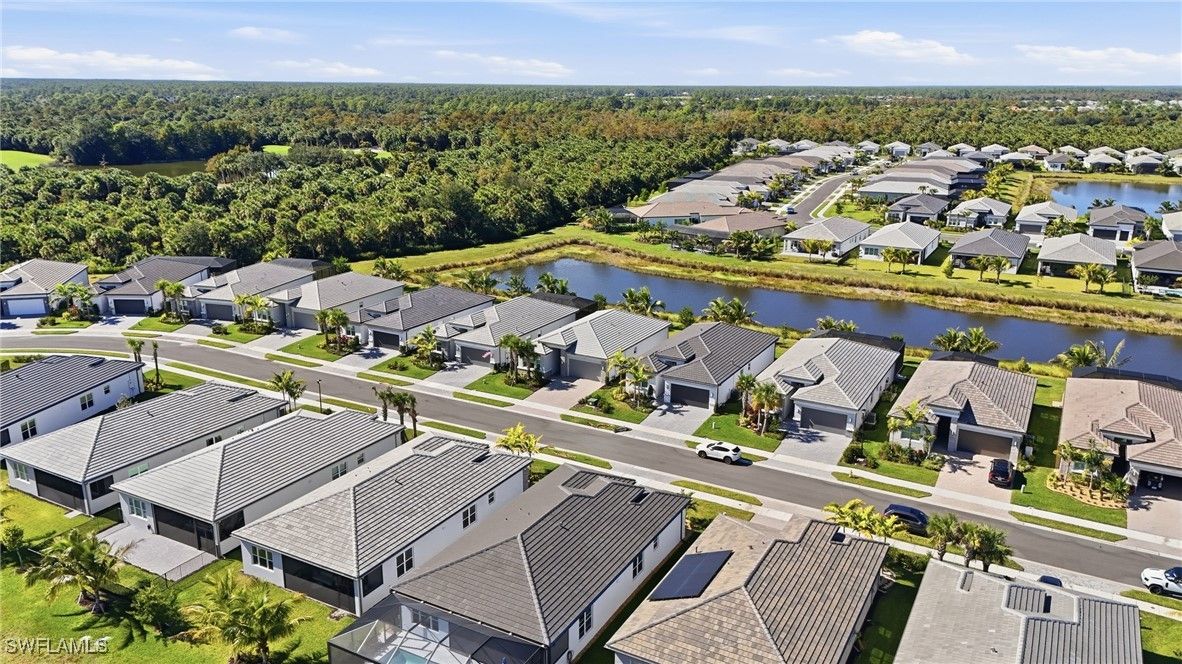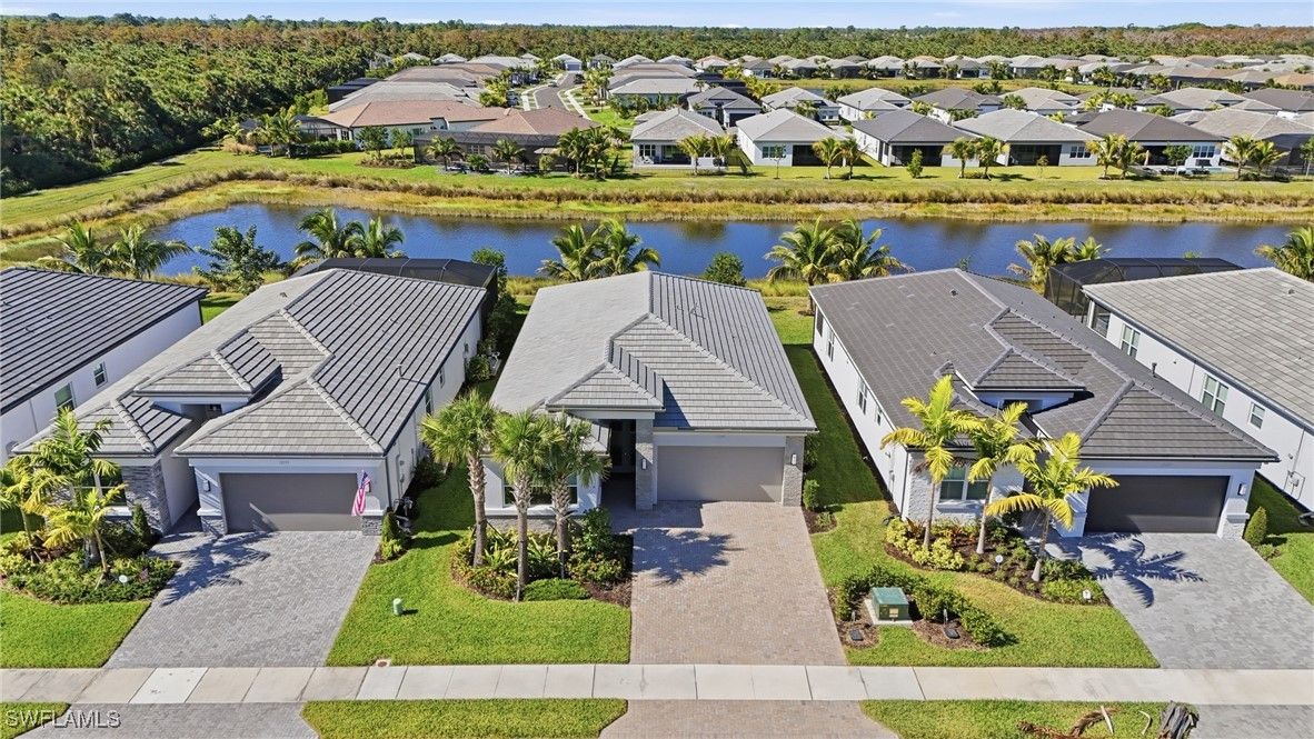 Discover Unmatched 55+ Luxury at Valencia Trails in this Barely Lived-In Gem! Built by GL Homes in 2024, the Flamingo floorplan is hardly one year old! Nestled in the best location inside Valencia Trails – perfectly positioned closer to the brand-new Vanderbilt Beach Road entrance for effortless comings and goings, and far away from any road noise on the serene side of the community. The charming Flamingo floor plan offers 2 bedrooms plus a versatile den, 2 full baths, and 1,772 sq ft of thoughtfully designed, open-concept living. Step inside to discover all the extras to this new construction: new custom blinds, stunning decorator lighting, fresh satin-finish interior paint, and a pristine epoxy garage floor. Wake up to peaceful, scenic lake and preserve views from your private backyard oasis and enjoy sunsets and nature’s tranquility from the screened in lanai. This is Naples’ newest 55+ enclave where resort-style amenities meet low-maintenance luxury. Priced to sell and move-in ready – You can start enjoying all the fabulous Trails amenities this season! Your slice of the Naples dream awaits at 12391 Purple Ficus Way.