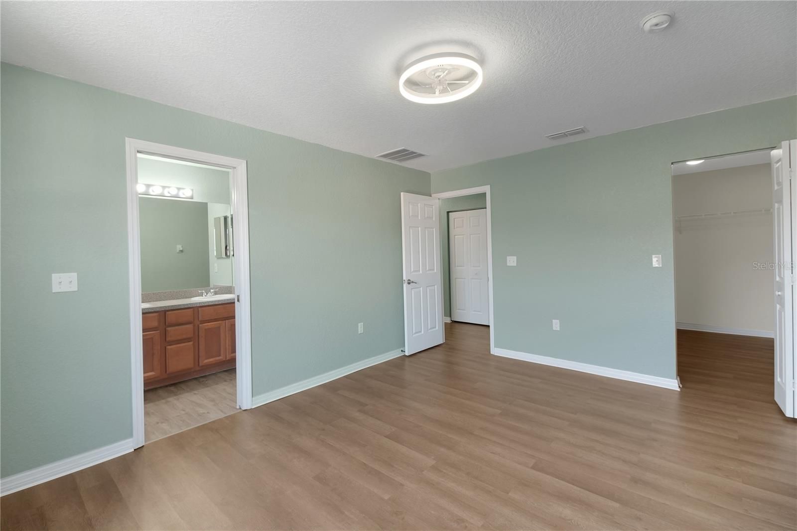 - Ceiling Fan(s), Crown Molding, Open Floorplan, Upper Level Primary, Walk-In Closet(s)