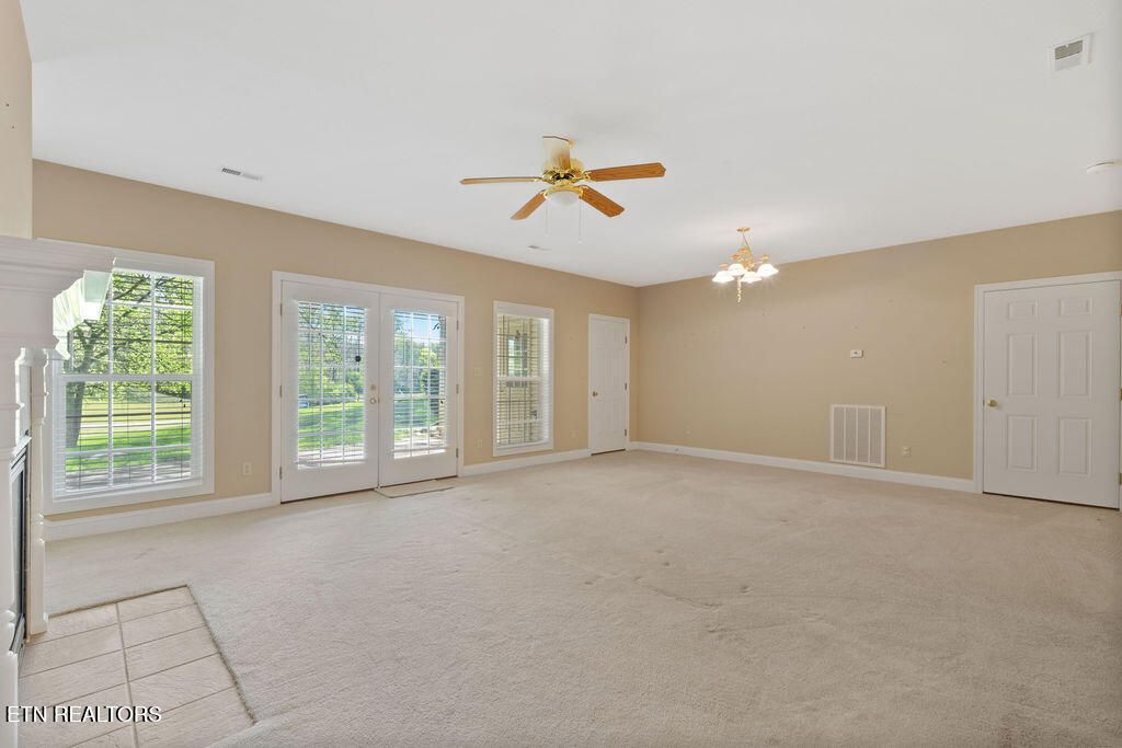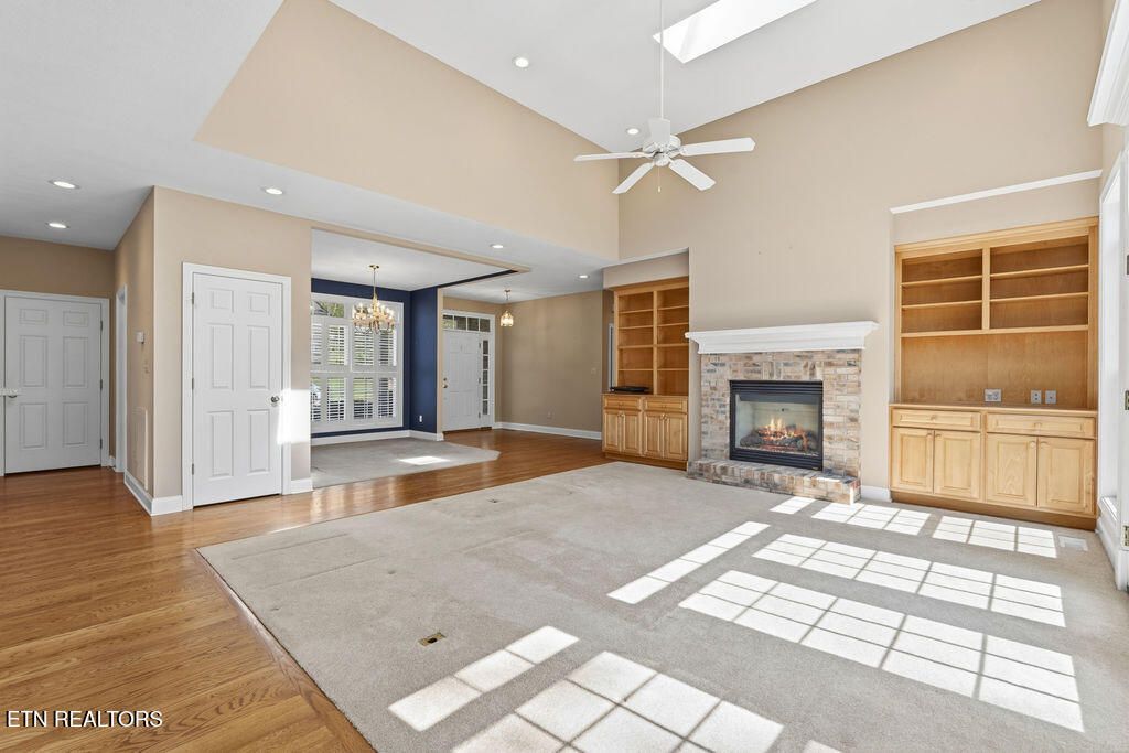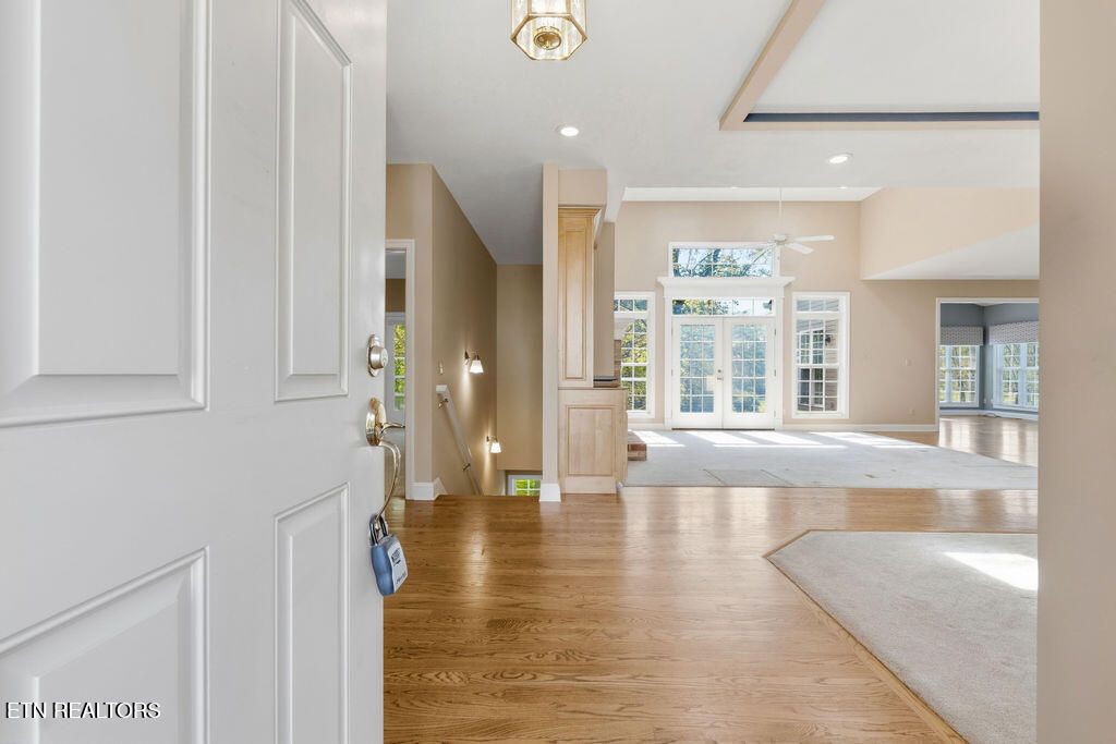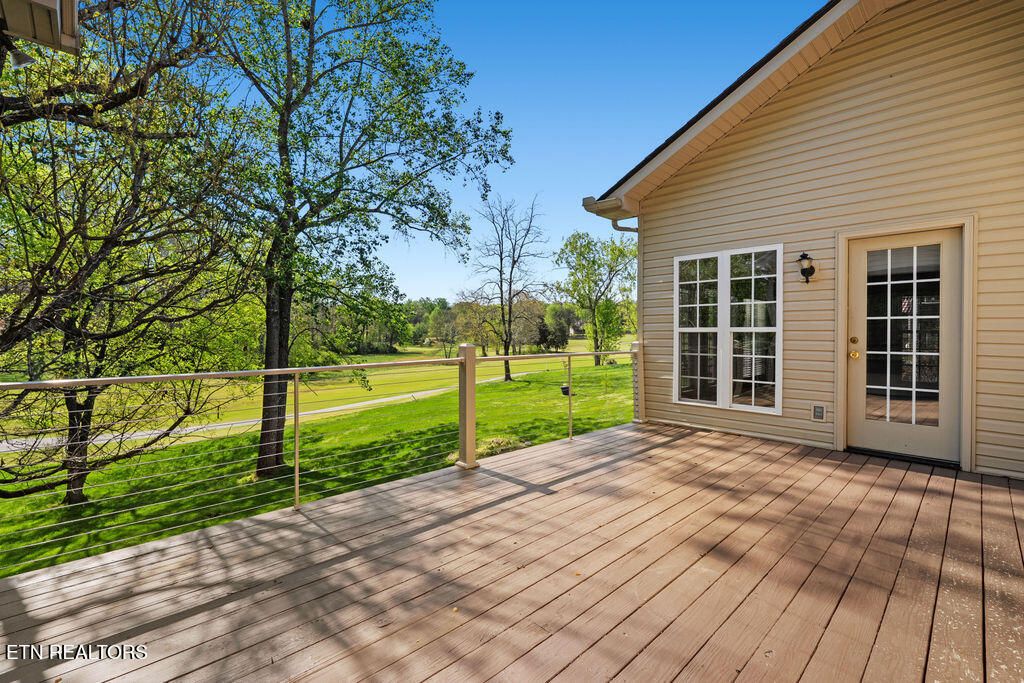 Golf front living at its best in Tellico Village! Ideally positioned on the #1 fairway of Toqua Golf Course, this home offers the perfect blend of location, livability, and opportunity to make it your own. The open concept main level is designed for both everyday comfort and entertaining, featuring a spacious kitchen, breakfast area, great room with vaulted ceilings, formal dining space, and a light-filled sunroom where you can relax and take in beautiful golf course views. The main floor primary suite enjoys peaceful fairway views and includes an attached bath and walk-in closet. Also on the main level are a convenient guest half bath, laundry room, and an oversized 2-car garage with ample space for vehicles and a golf cart--all easily accessed by a flat driveway. The walk-out lower level expands your living space with two additional bedrooms, a full bath, and a large rec room with sliding glass doors leading to a covered patio and backyard. You'll also find expansive storage and a dedicated workshop with direct outdoor access, perfect for hobbies or projects. Major updates include a new roof (2025) and HVAC replaced in 2024, giving peace of mind for years to come. Bring your personal design vision and unlock the full potential of this incredible golf front property--opportunities like this on Toqua's #1 fairway don't come often!