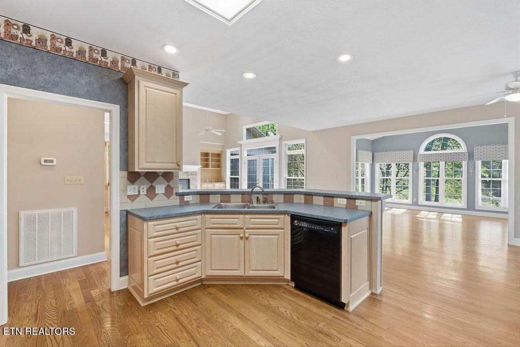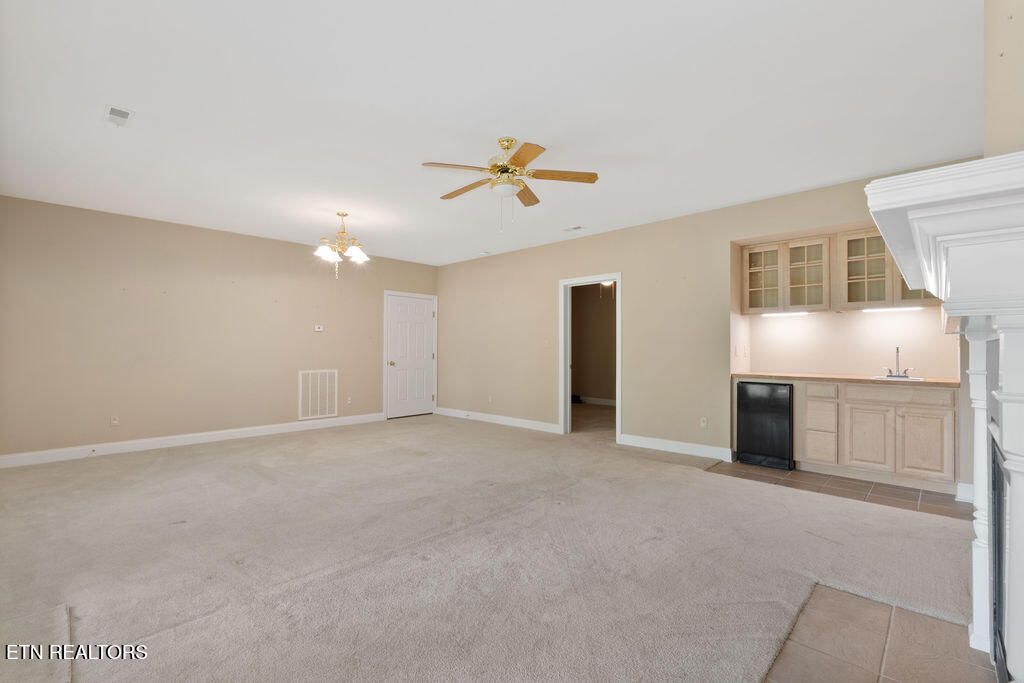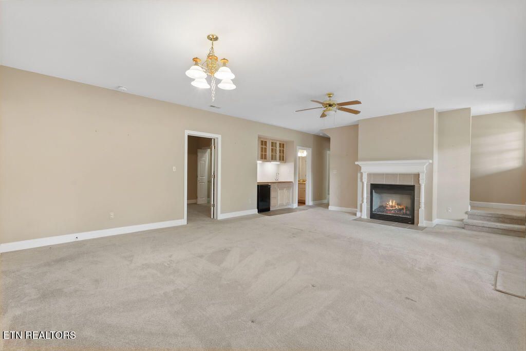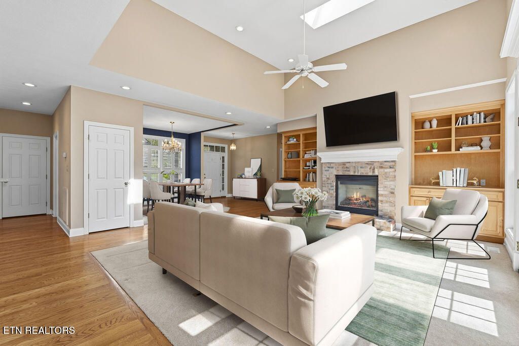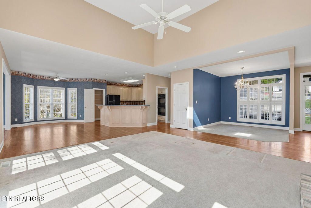 Golf front living at its best in Tellico Village! Ideally positioned on the #1 fairway of Toqua Golf Course, this home offers the perfect blend of location, livability, and opportunity to make it your own. The open concept main level is designed for both everyday comfort and entertaining, featuring a spacious kitchen, breakfast area, great room with vaulted ceilings, formal dining space, and a light-filled sunroom where you can relax and take in beautiful golf course views. The main floor primary suite enjoys peaceful fairway views and includes an attached bath and walk-in closet. Also on the main level are a convenient guest half bath, laundry room, and an oversized 2-car garage with ample space for vehicles and a golf cart--all easily accessed by a flat driveway. The walk-out lower level expands your living space with two additional bedrooms, a full bath, and a large rec room with sliding glass doors leading to a covered patio and backyard. You'll also find expansive storage and a dedicated workshop with direct outdoor access, perfect for hobbies or projects. Major updates include a new roof (2025) and HVAC replaced in 2024, giving peace of mind for years to come. Bring your personal design vision and unlock the full potential of this incredible golf front property--opportunities like this on Toqua's #1 fairway don't come often!