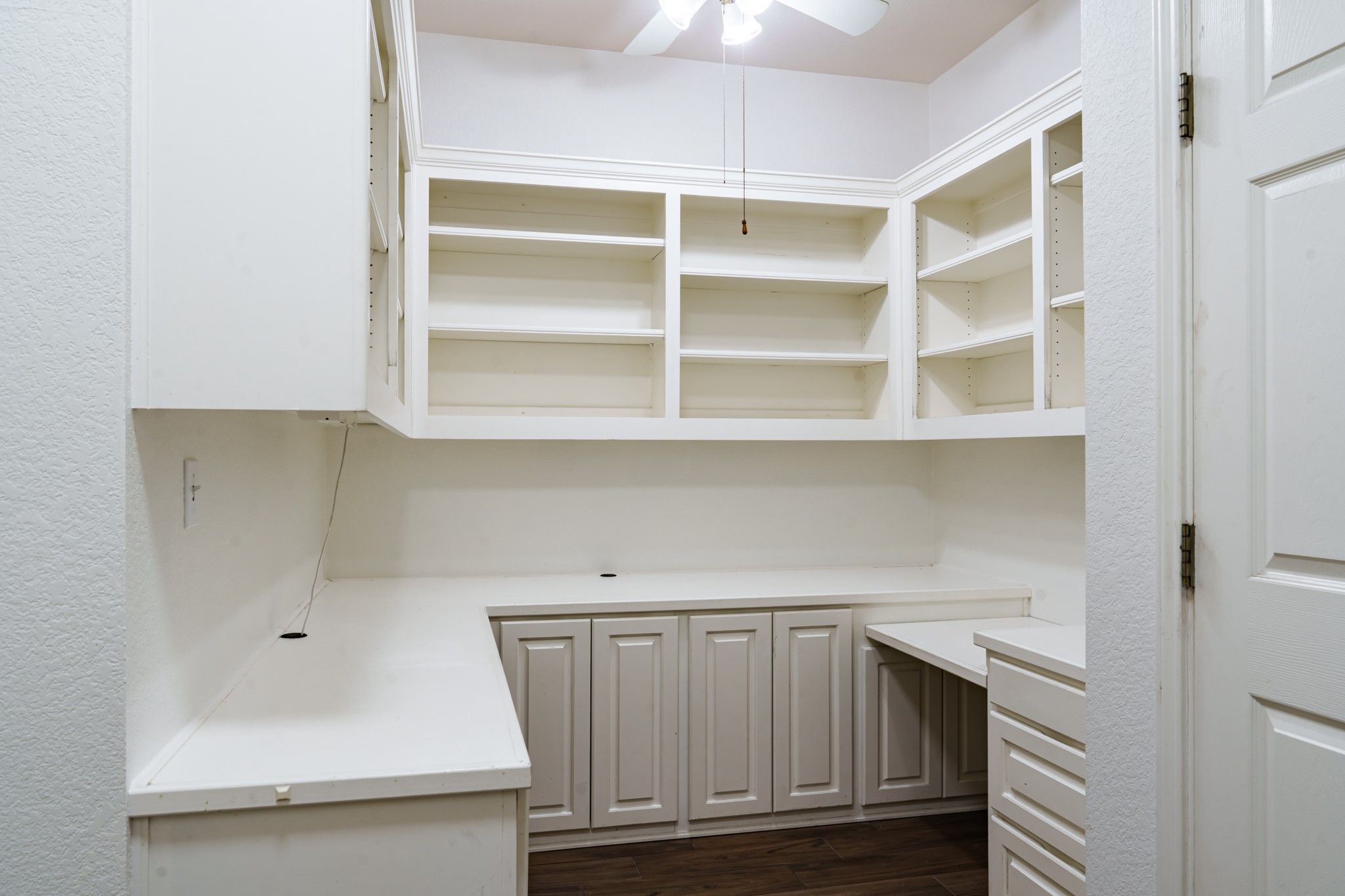 - Built-in Features, Ceiling Fan(s), Crown Molding, Separate/Formal Dining Room, Double Vanity, Granite Counters, Kitchen Island, Multiple Dining Areas, Main Level Primary, Open Floorplan, Pantry, Recessed Lighting, Study, Walk-In Closet(s), High Speed Internet