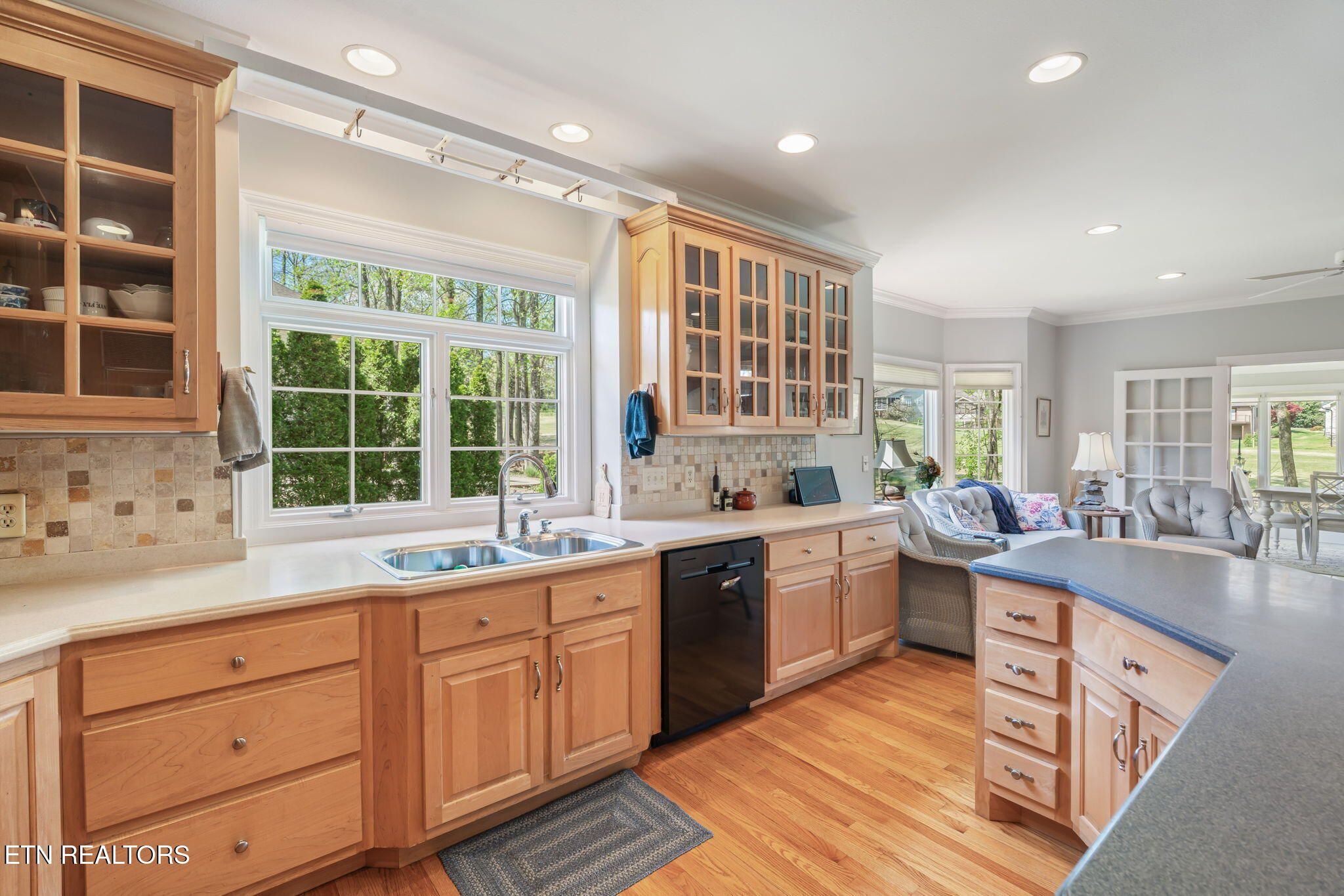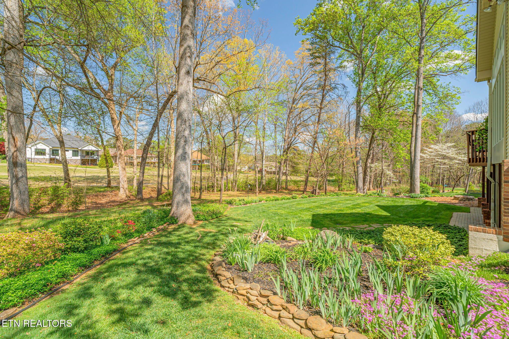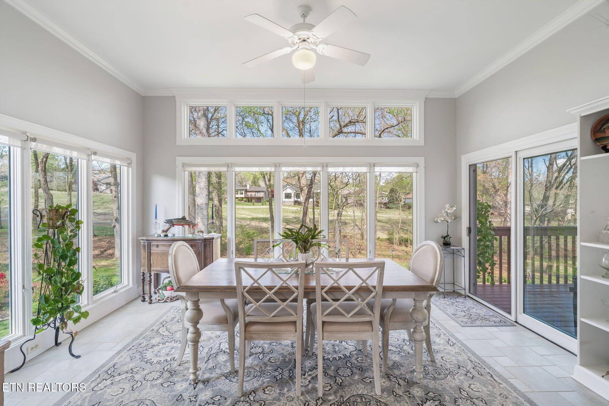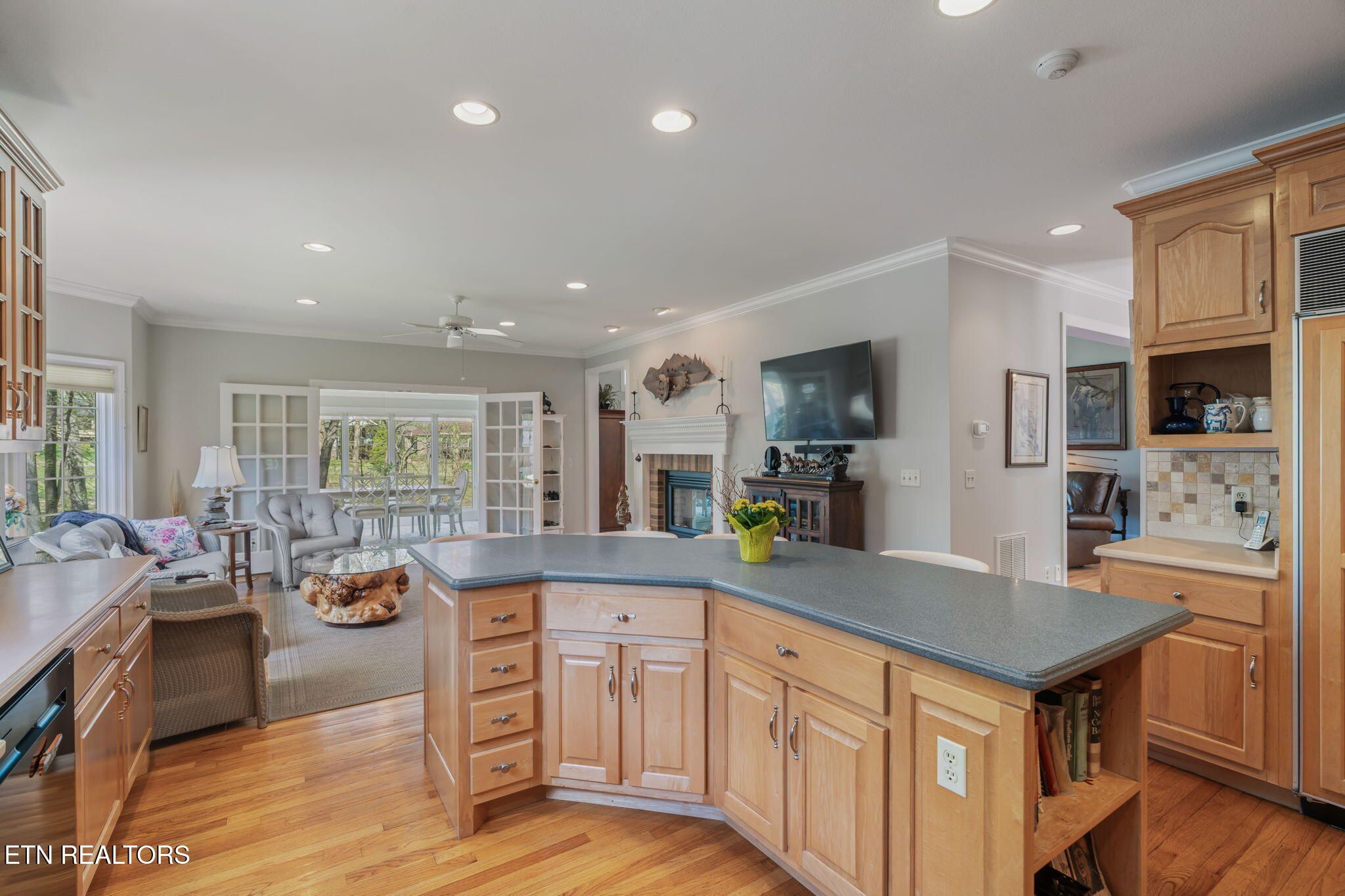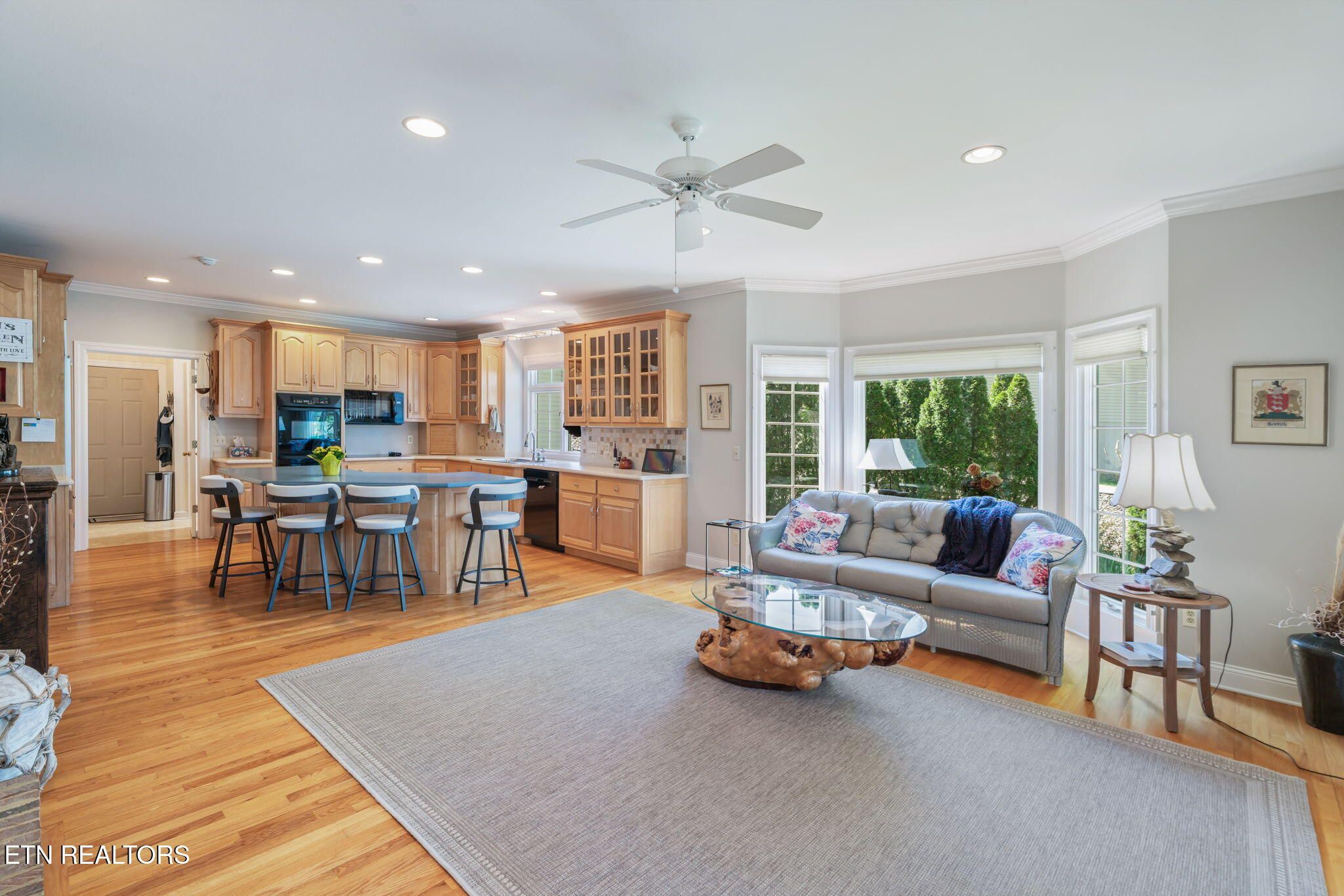 Tucked gracefully along the 11th fairway, this custom golf-front 4-bedroom, 3.5-bath residence offers a rare blend of serenity, privacy, and refined luxury. Framed by a natural wooded buffer, the home enjoys tranquil golf course views while maintaining a peaceful, park-like setting enhanced by beautiful professional landscaping--an idyllic retreat designed for rest and relaxation. Inside, soaring eleven-foot ceilings, elegant crown molding, and rich hardwood floors create an atmosphere of understated sophistication. Expansive windows with transoms invite in soft natural light, while new blinds throughout add both style and comfort. A striking double-sided gas fireplace anchors both the living room and an expansive keeping room, perfect for unwinding after a day on the course. The gourmet kitchen is thoughtfully appointed for both everyday living and entertaining, featuring double ovens, a sleek glass cooktop, a Sub-Zero refrigerator, and a generous island that invites conversation. Seamlessly connected to the keeping room, the space easily accommodates a grand dining table for memorable evenings with friends and fellow golf enthusiasts. A four-season sunroom provides a peaceful retreat with captivating views of the manicured fairway and surrounding gardens, opening onto a spacious deck ideal for morning coffee or sunset relaxation. The main-level primary suite is a private sanctuary, complete with direct deck access, serene golf views, a spacious walk-in closet, and a beautifully updated luxury shower. An additional en-suite bedroom, along with a stylish guest powder room, ensures comfort and convenience for visitors. The lower level extends the home's welcoming ambiance, offering a generous family room with porch access, two well-appointed guest bedrooms, a full bath, and dedicated spaces for hobbies, including a workshop and golf cart storage. Thoughtful storage solutions are found throughout, including a custom-built closet system and a large mechanical room with built-in shelving. Practical luxury continues with an oversized two-car garage, a rain gutter leaf filtration system, and a roof recently treated with Roof Maxx to extend its life by an additional five years. The home has been meticulously maintained, including ongoing annual pest service contracts for added peace of mind. Modern comforts and upgrades abound, including Pella windows and doors, a security system, radon mitigation, dual water heaters, a seven-zone irrigation system, and a dual-fuel, three-zone HVAC system with electronic filtration. An Aqua Clear water filtration system further enhances everyday living, while an outdoor fire pit invites relaxed evenings under the stars. This exceptional property is more than a home--it is a private retreat along the fairway, crafted for those who appreciate the rhythm of the game and the quiet luxury of refined living. Buyer to verify all information.