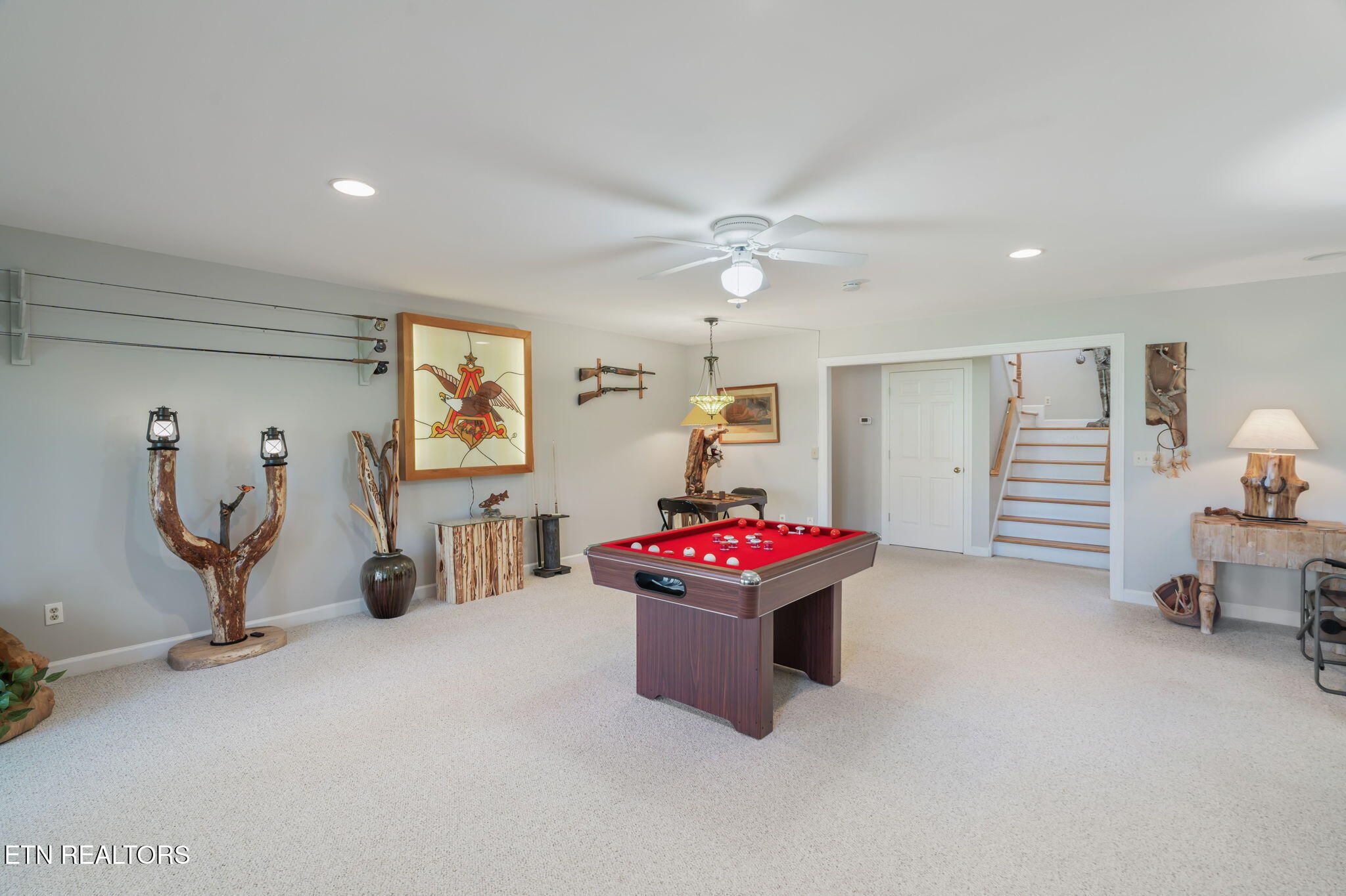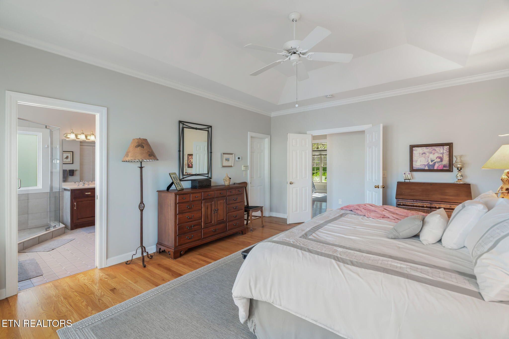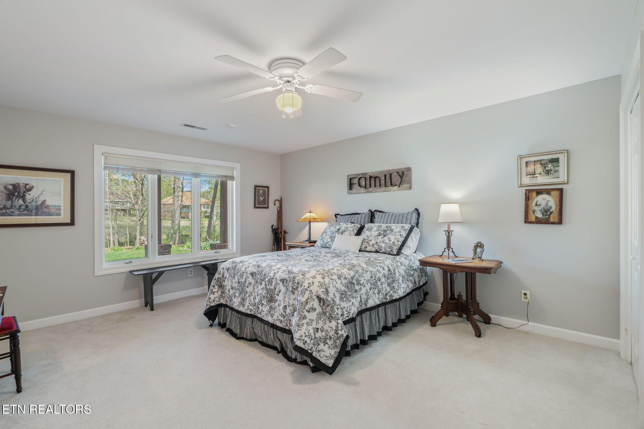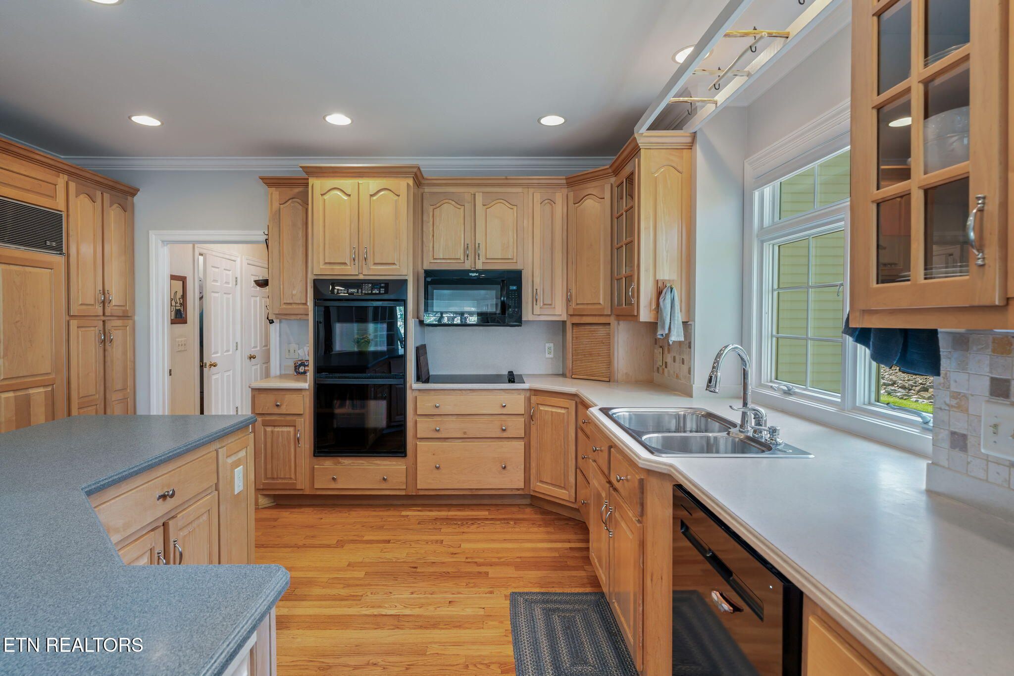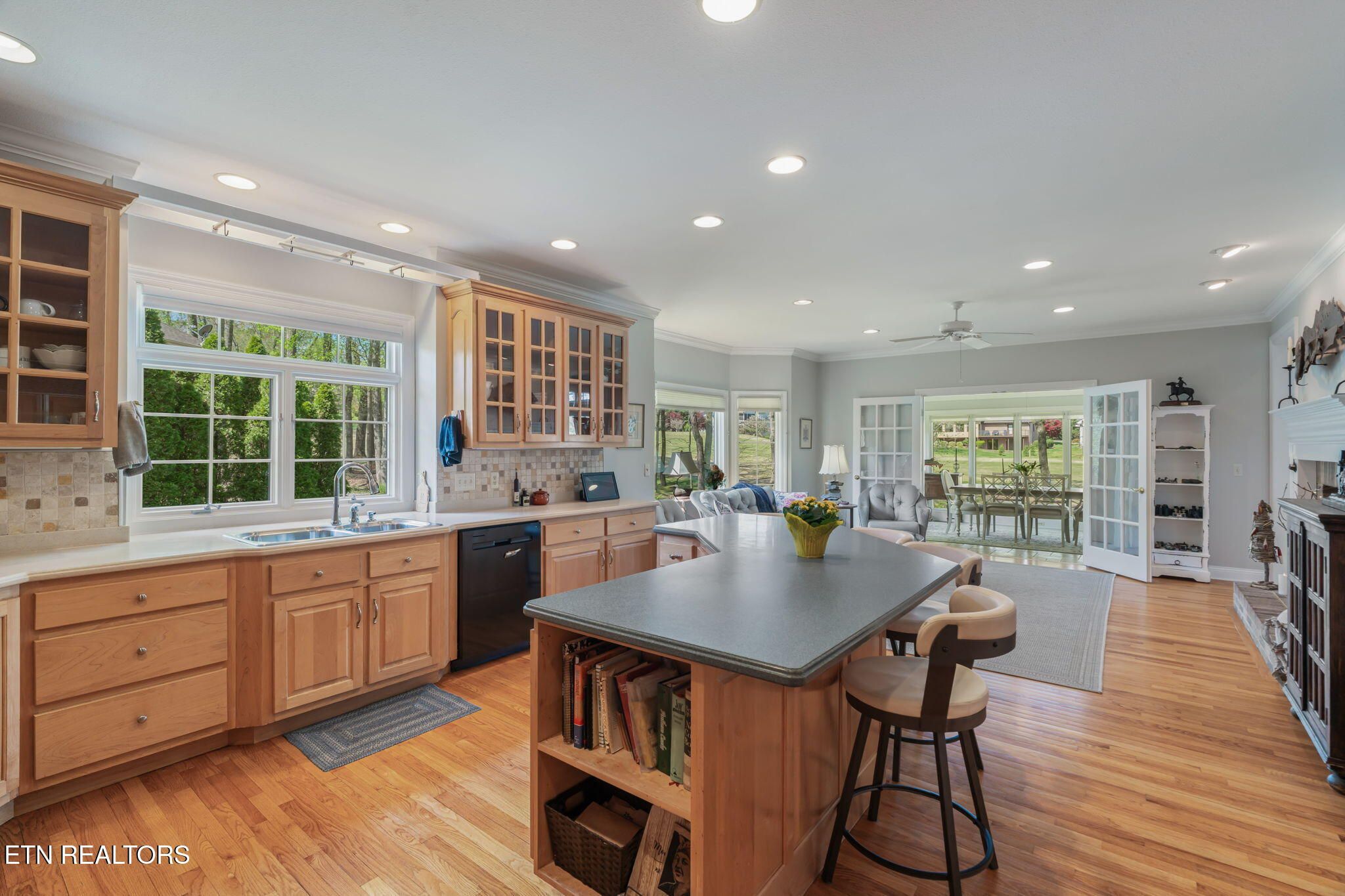 Tucked gracefully along the 11th fairway, this custom golf-front 4-bedroom, 3.5-bath residence offers a rare blend of serenity, privacy, and refined luxury. Framed by a natural wooded buffer, the home enjoys tranquil golf course views while maintaining a peaceful, park-like setting enhanced by beautiful professional landscaping--an idyllic retreat designed for rest and relaxation. Inside, soaring eleven-foot ceilings, elegant crown molding, and rich hardwood floors create an atmosphere of understated sophistication. Expansive windows with transoms invite in soft natural light, while new blinds throughout add both style and comfort. A striking double-sided gas fireplace anchors both the living room and an expansive keeping room, perfect for unwinding after a day on the course. The gourmet kitchen is thoughtfully appointed for both everyday living and entertaining, featuring double ovens, a sleek glass cooktop, a Sub-Zero refrigerator, and a generous island that invites conversation. Seamlessly connected to the keeping room, the space easily accommodates a grand dining table for memorable evenings with friends and fellow golf enthusiasts. A four-season sunroom provides a peaceful retreat with captivating views of the manicured fairway and surrounding gardens, opening onto a spacious deck ideal for morning coffee or sunset relaxation. The main-level primary suite is a private sanctuary, complete with direct deck access, serene golf views, a spacious walk-in closet, and a beautifully updated luxury shower. An additional en-suite bedroom, along with a stylish guest powder room, ensures comfort and convenience for visitors. The lower level extends the home's welcoming ambiance, offering a generous family room with porch access, two well-appointed guest bedrooms, a full bath, and dedicated spaces for hobbies, including a workshop and golf cart storage. Thoughtful storage solutions are found throughout, including a custom-built closet system and a large mechanical room with built-in shelving. Practical luxury continues with an oversized two-car garage, a rain gutter leaf filtration system, and a roof recently treated with Roof Maxx to extend its life by an additional five years. The home has been meticulously maintained, including ongoing annual pest service contracts for added peace of mind. Modern comforts and upgrades abound, including Pella windows and doors, a security system, radon mitigation, dual water heaters, a seven-zone irrigation system, and a dual-fuel, three-zone HVAC system with electronic filtration. An Aqua Clear water filtration system further enhances everyday living, while an outdoor fire pit invites relaxed evenings under the stars. This exceptional property is more than a home--it is a private retreat along the fairway, crafted for those who appreciate the rhythm of the game and the quiet luxury of refined living. Buyer to verify all information.