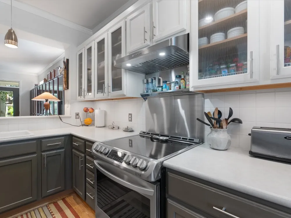 - Dishwasher, Electric Range, Disposal, Gas Water Heater, Plumbed For Ice Maker, Range Hood, Water Softener Owned, Self Cleaning Oven, Stainless Steel Appliance(s), Vented Exhaust Fan