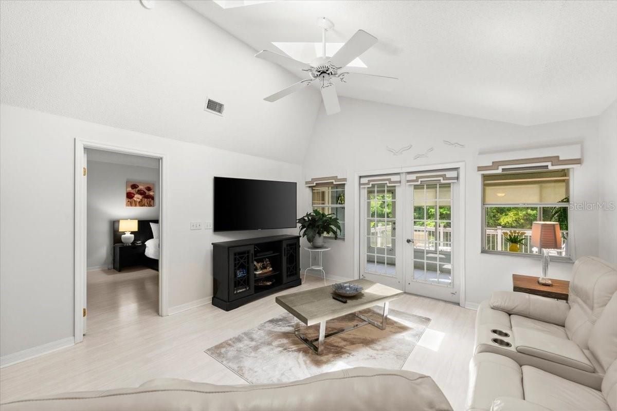 - Cathedral Ceiling(s), Ceiling Fan(s), Open Floorplan, Main Level Primary
