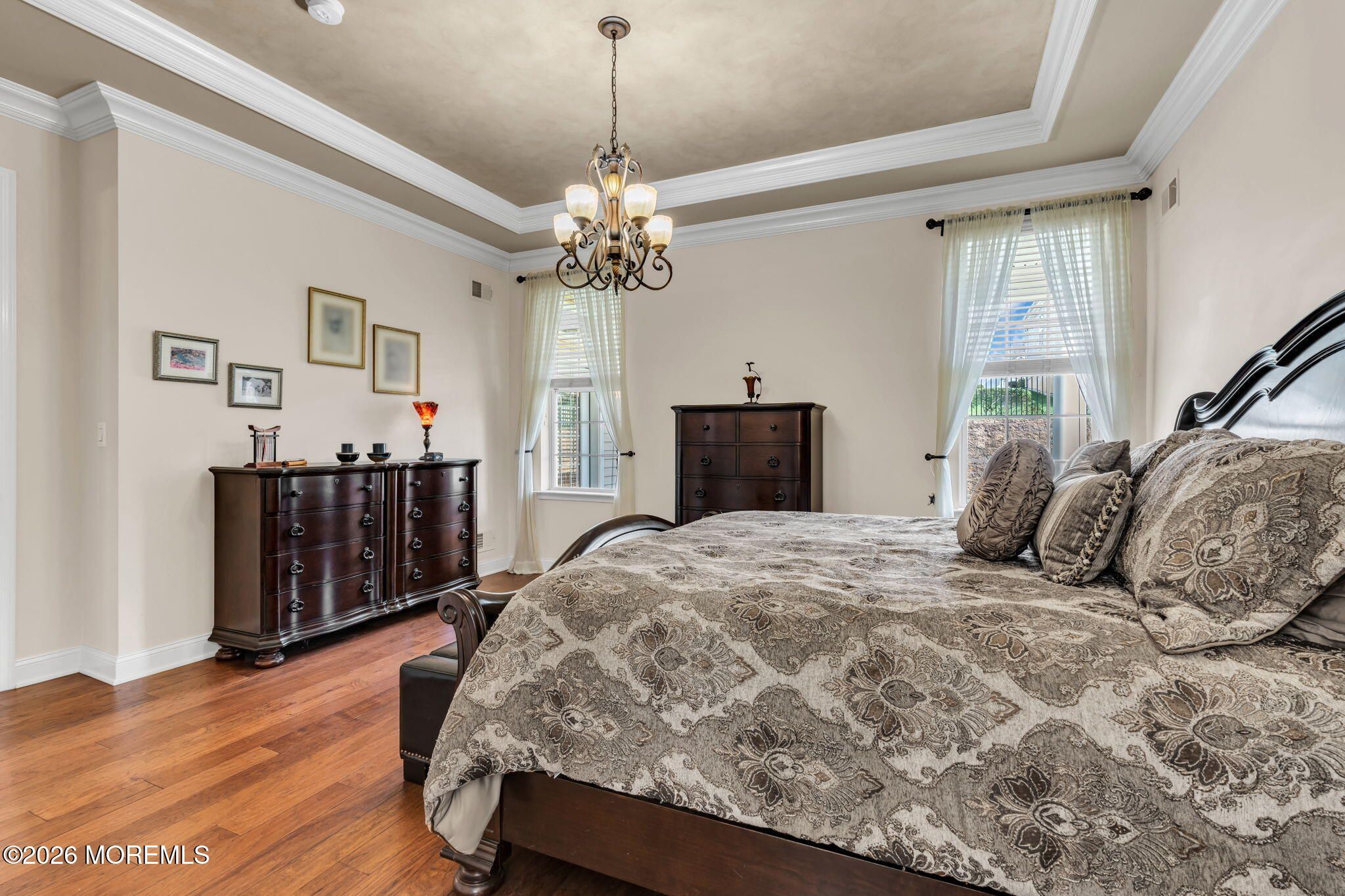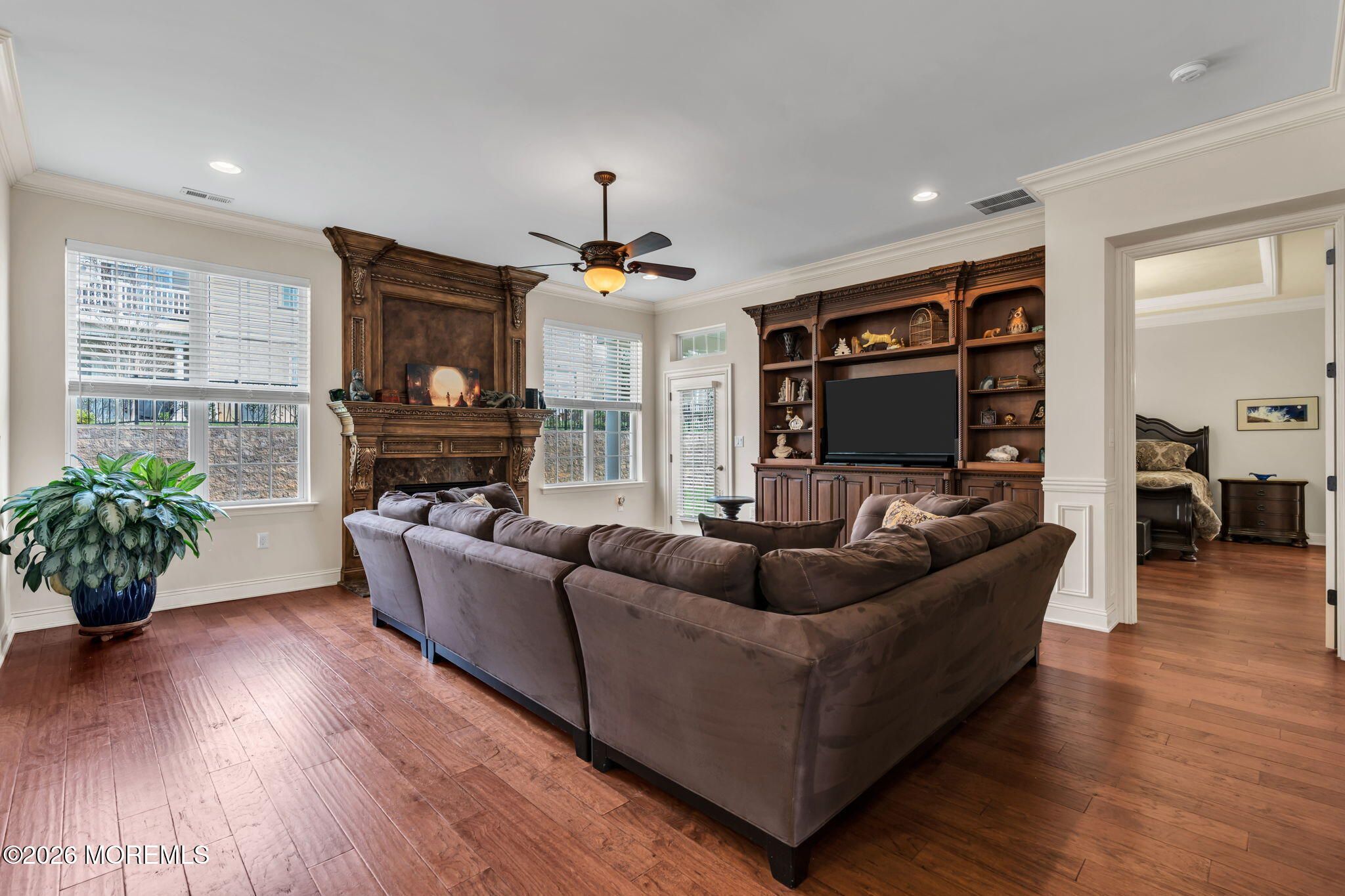 Regency @ Monroe's popular Bayhill model features elegant, custom trim work throughout, with its soaring coffered ceiling in the entry foyer, leaded glass front door, wood floors, full walk-up attic staircase, top-of-the-line center-island kitchen w/stainless steel range hood & appliances including wall-oven, large breakfast area w/slider to yard, great rm w/gas fireplace & french door to a covered patio, dining rm, library/den/opt'l 3rd bdrm, master bdrm w/walk-in closet. master bath w/tub & stall shower. Spacious attic storage above garage. Regency is central jersey's premier active adult community w/9-hole executive golf course, newly renovated clubhouse, indoor & outdoor pools, grill, spa/salon & so much more!