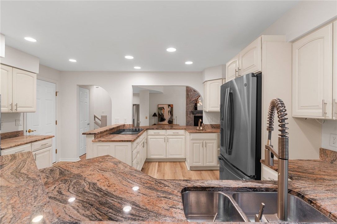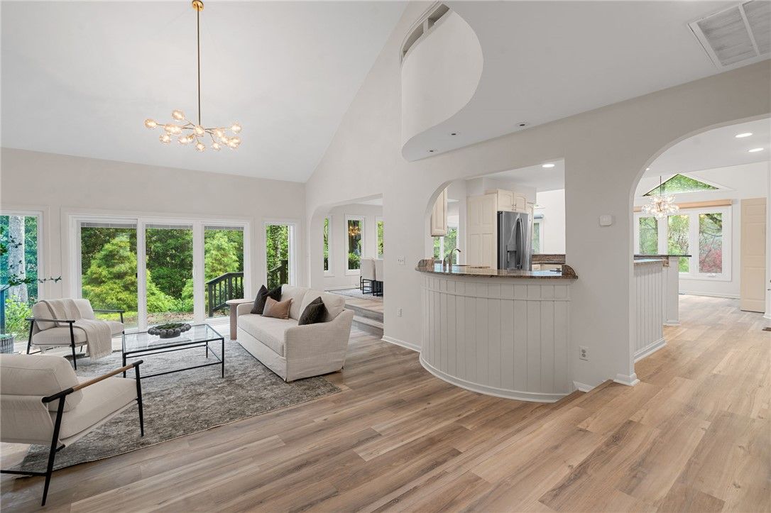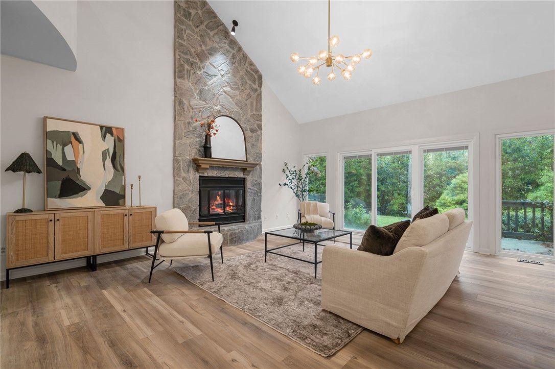 Stunning Architect-Designed Contemporary in Kingsmill! Experience luxury living in this beautifully renovated 4-bedroom, 2.5 bath masterpiece, showcasing modern design and exceptional curb appeal on nearly half an acre in a peaceful cul-de-sac with picturesque views of Halfway Creek. Enjoy full updates throughout, including new upgraded LVT flooring, fresh paint, & a new upgraded luxury lighting package that elevates every room. Step into a welcoming foyer leading to a spacious living room with a soaring cathedral ceiling & striking stone fireplace. The open-concept layout seamlessly connects to a gourmet kitchen featuring granite countertops and stainless steel appliances, a bright & airy family room with skylights, & an elegant formal dining room. Retreat to the primary suite boasting a custom walk-in closet, offering both style & functionality. This home is a rare find-luxury, comfort, & modern upgrades all wrapped into one breathtaking property.