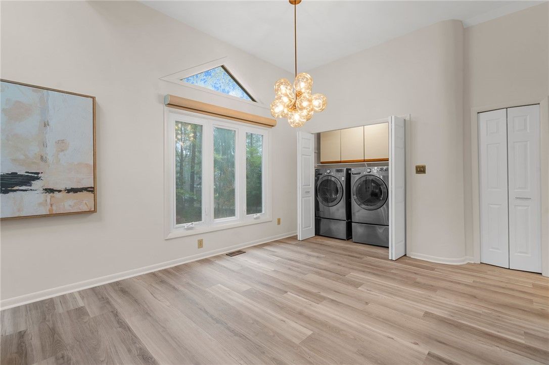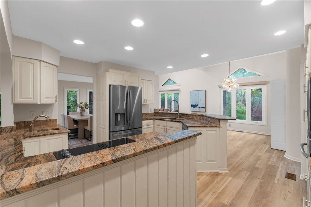 - Attic Access, Beamed Ceilings, Bookcases, Built-in Features, Ceiling Fan(s), Cathedral Ceiling(s), Dining Area, Separate/Formal Dining Room, Double Vanity, Eat-in Kitchen, Granite Counters, High Ceilings, Loft, Pantry, Pull Down Attic Stairs, Recessed Lighting, Walk-In Closet(s)